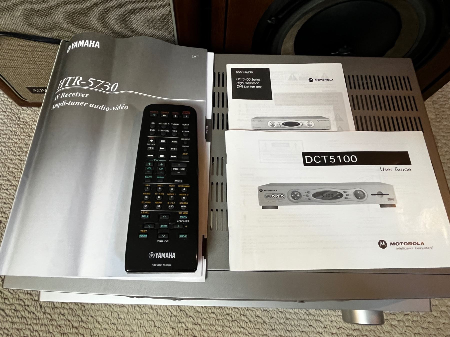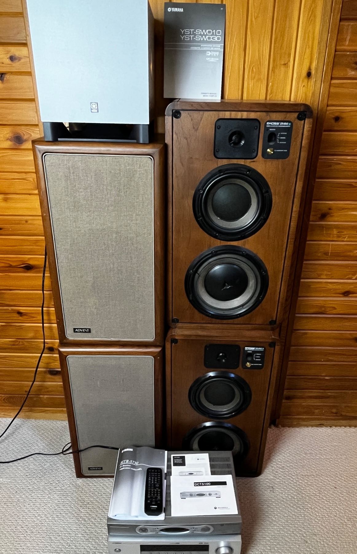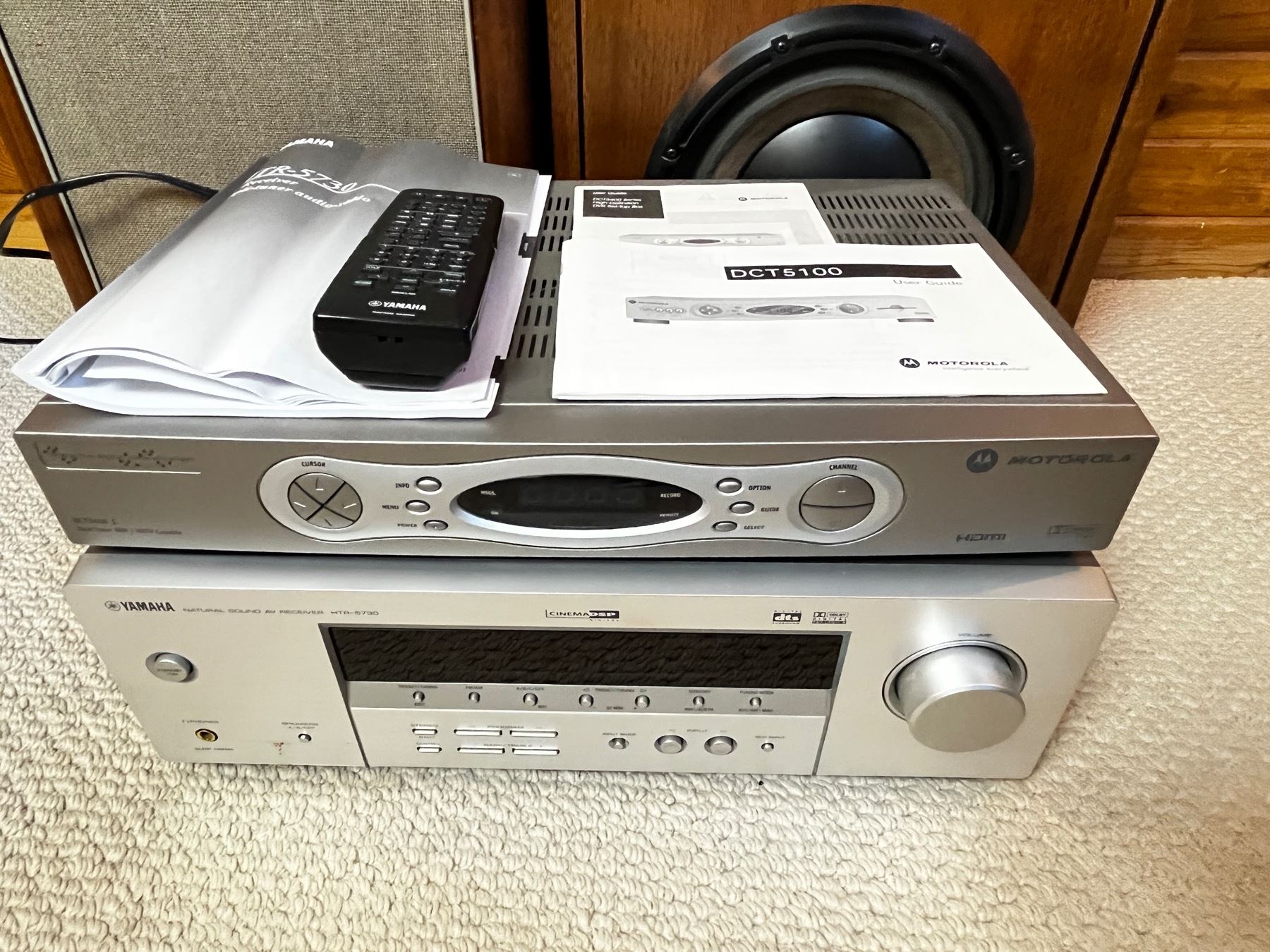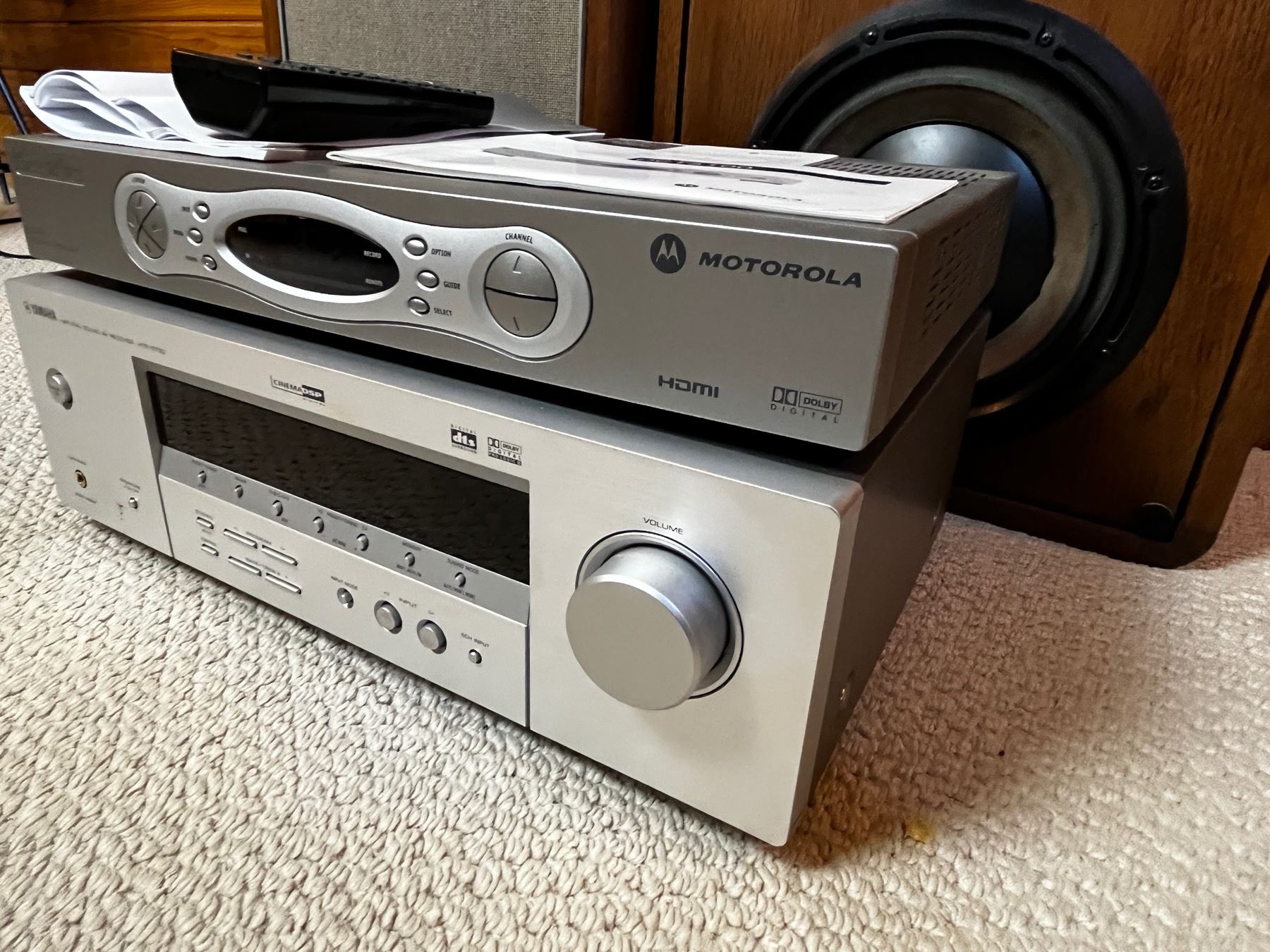Yamaha AV Receiver Ampli-tuner audio-video with remote works - Motorola Dual Tuner DVR/HDTV Capable unknown working condition. 2 - KOSS speakers and 2 ADVE\T Speakers - Yamaha Subwoofer System