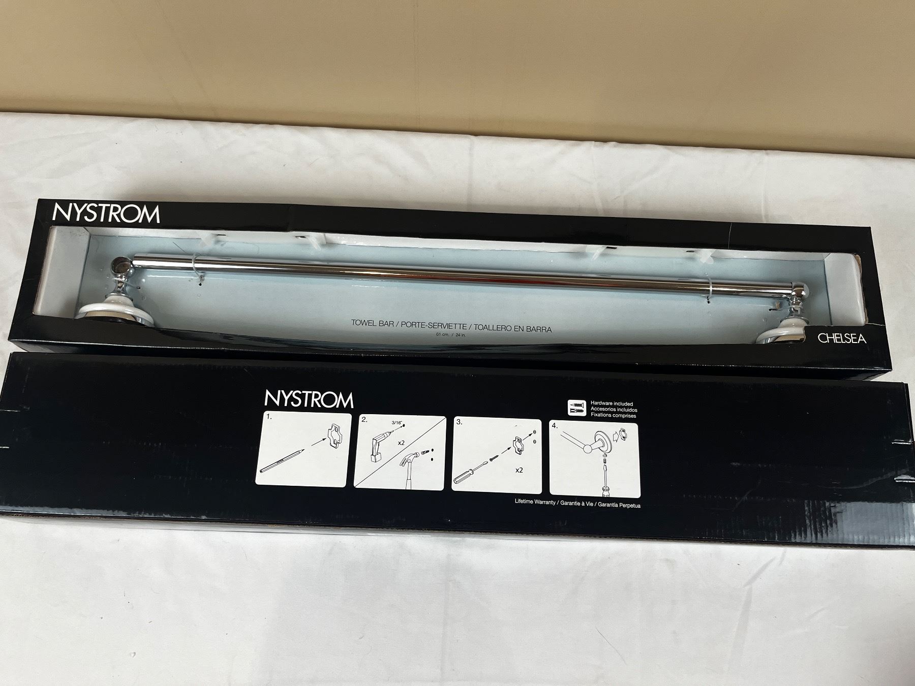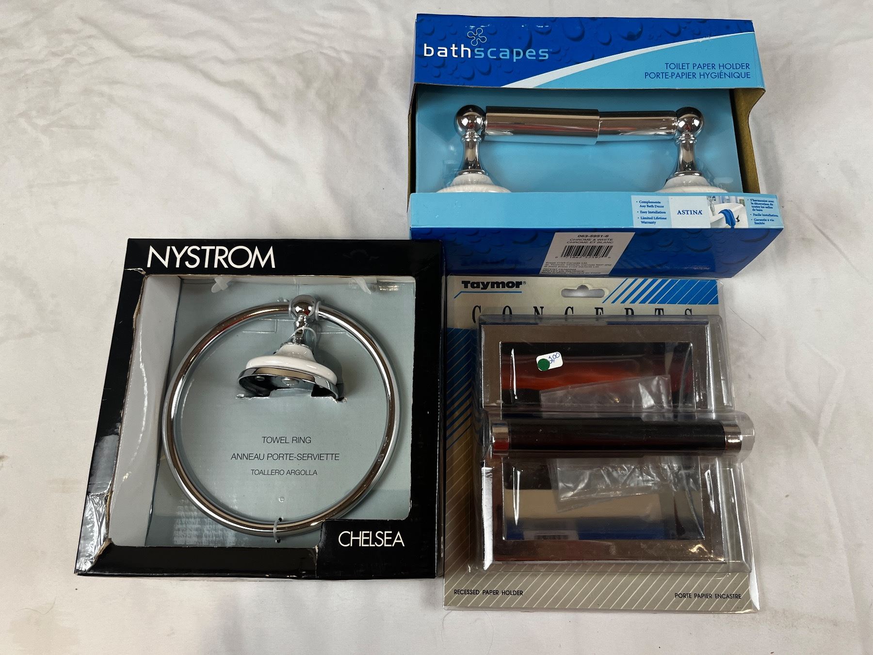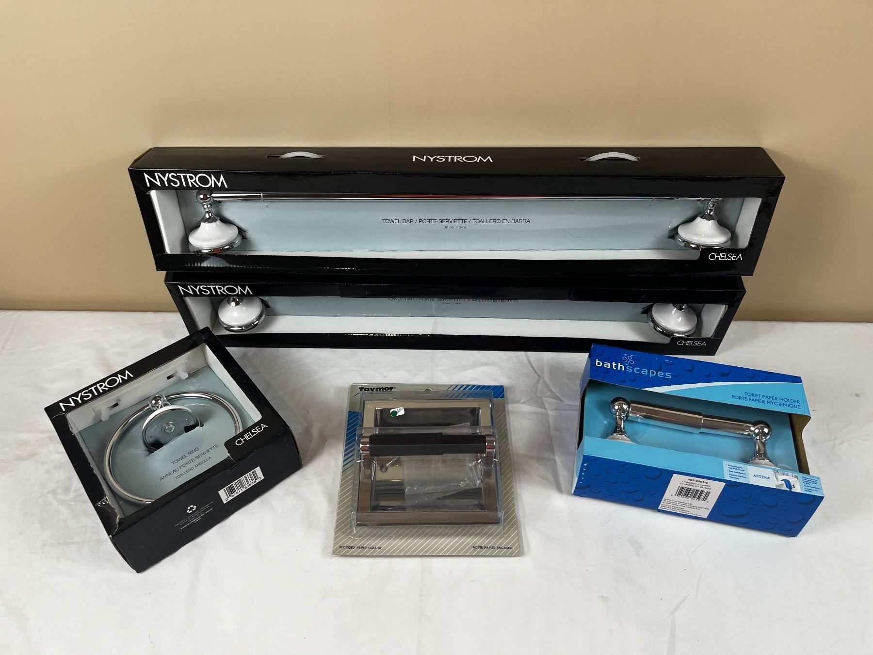 Includes 2 paper holders - towel ring - 2 towel bars