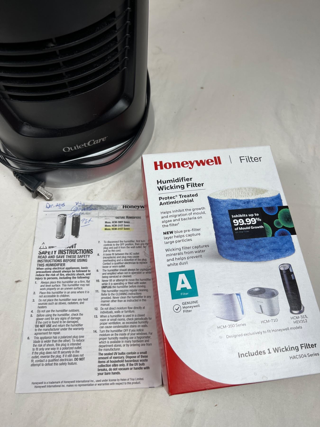 Model No. HCM-315T, Turns on, includes a new filter in an open box as well as a user manual