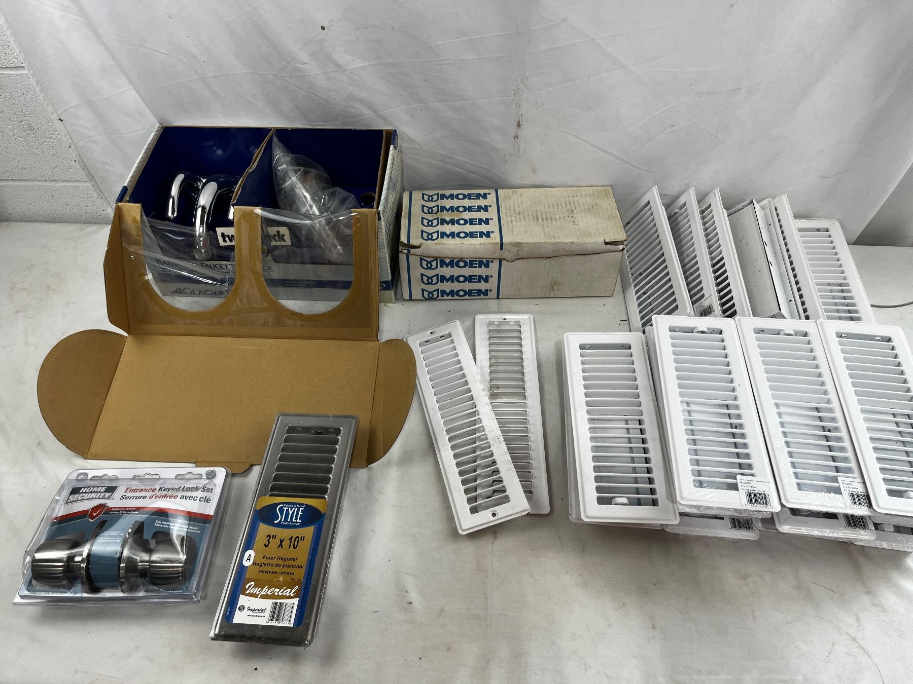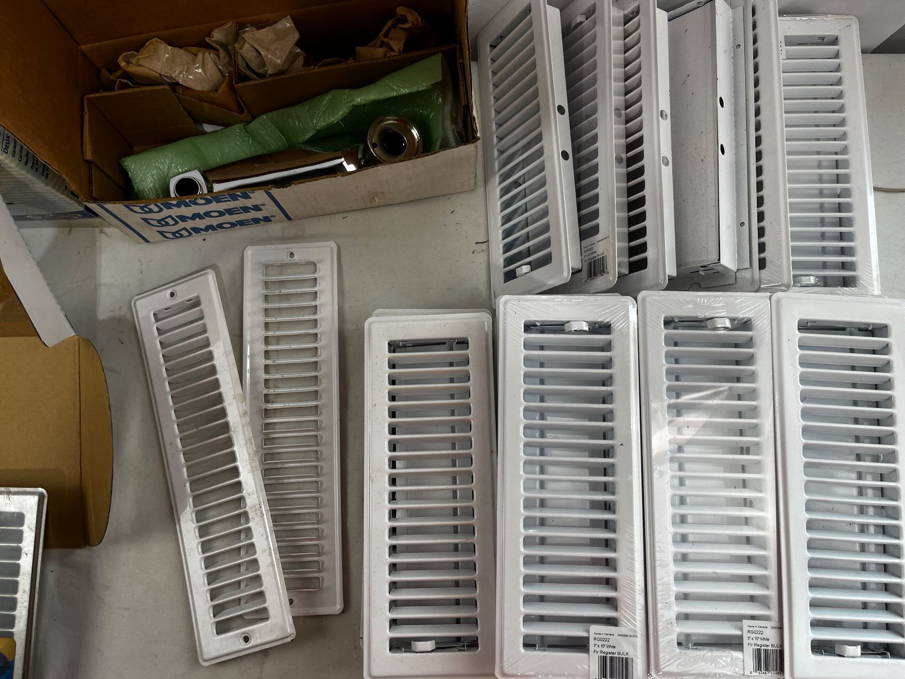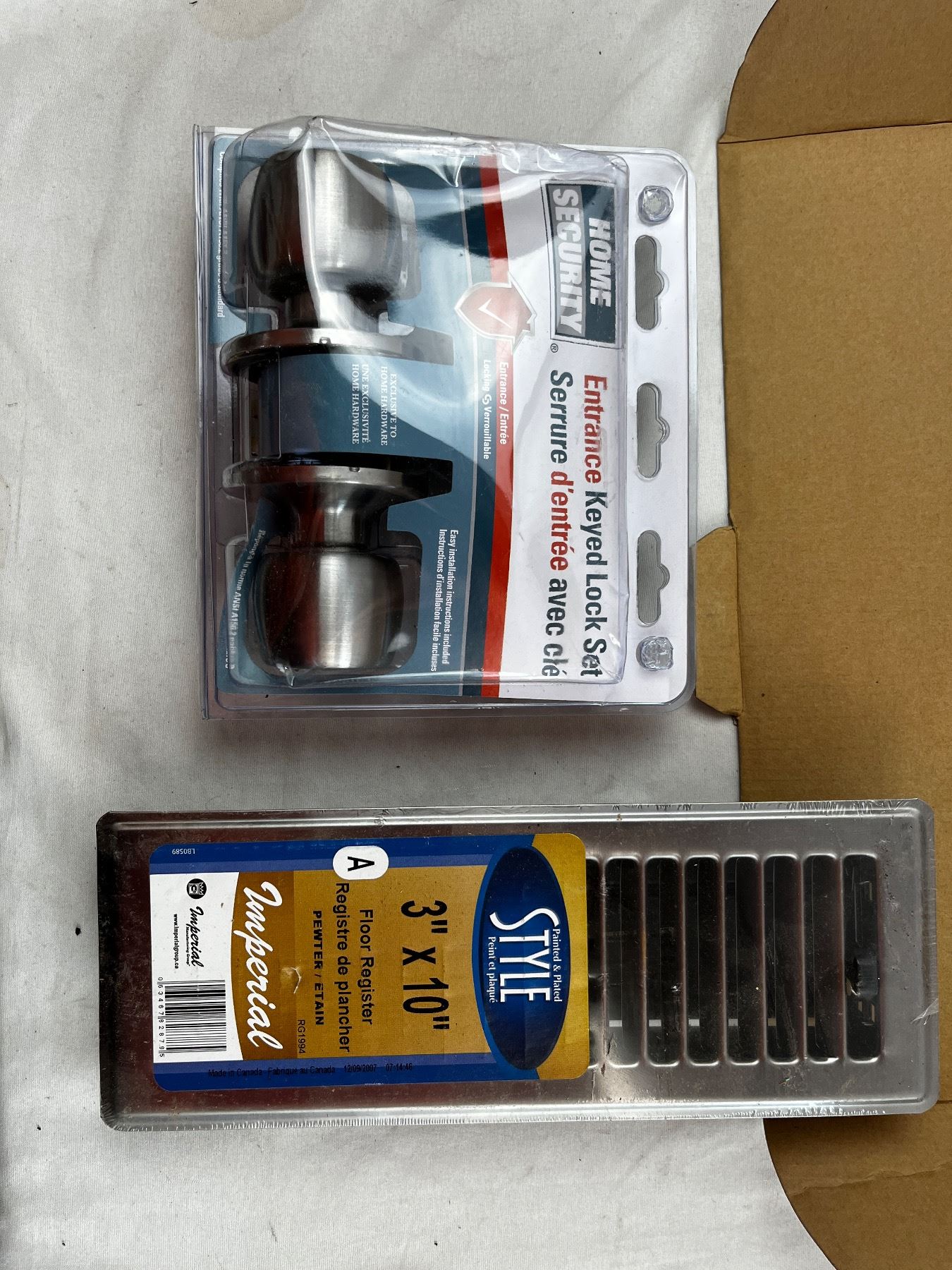 Including new bathroom faucet, entrance keye lock set, new and used vent covers, etc