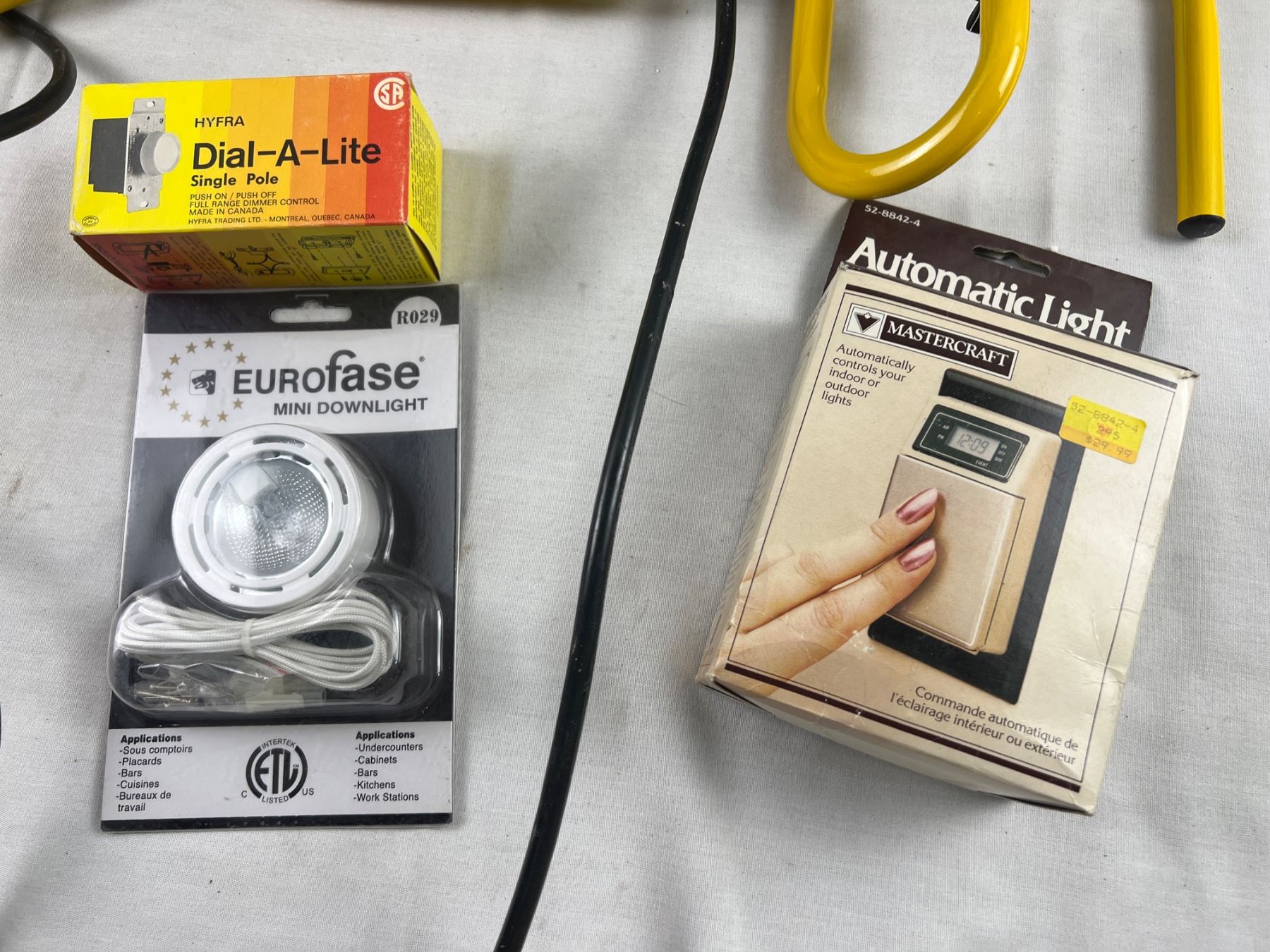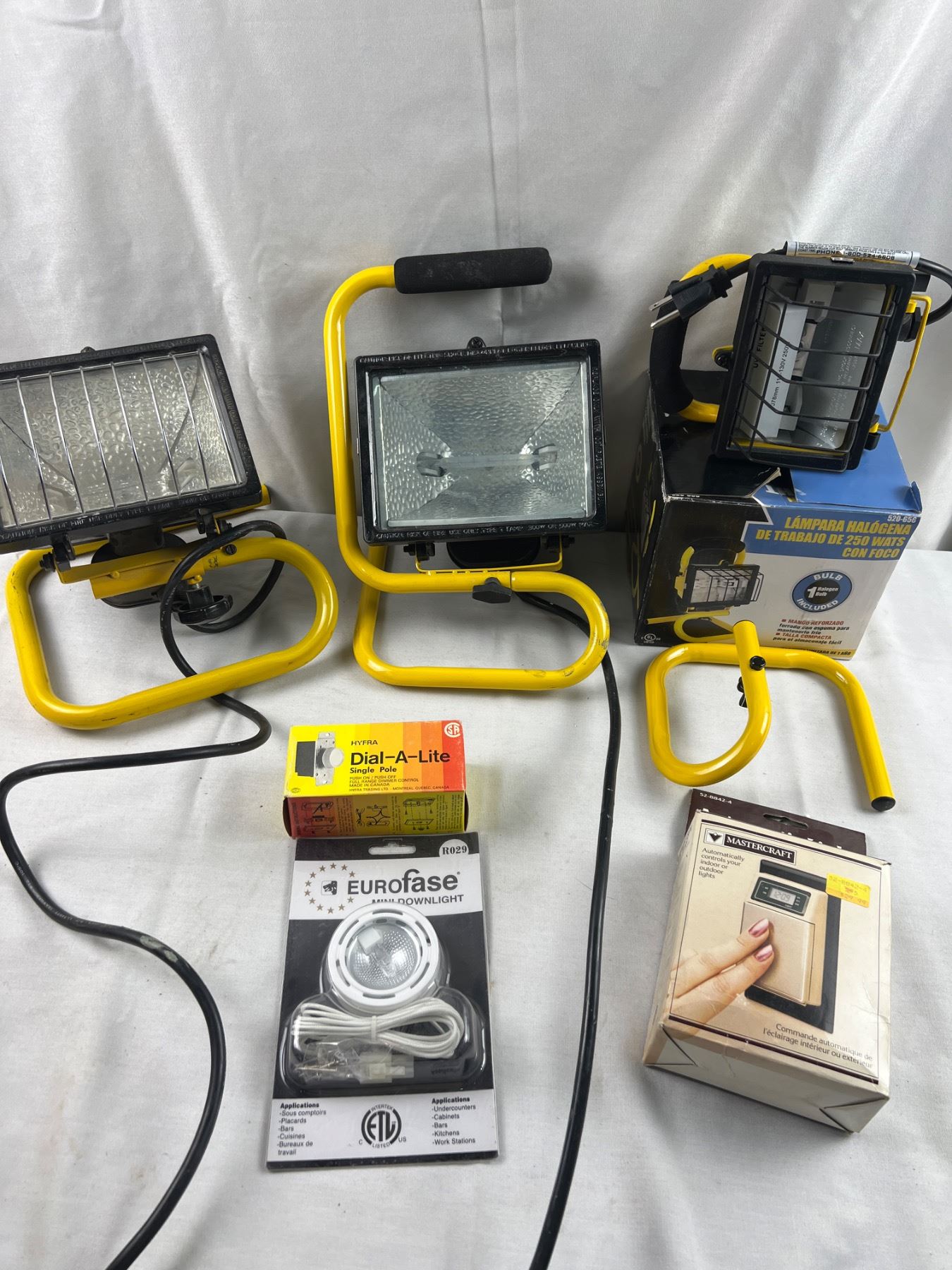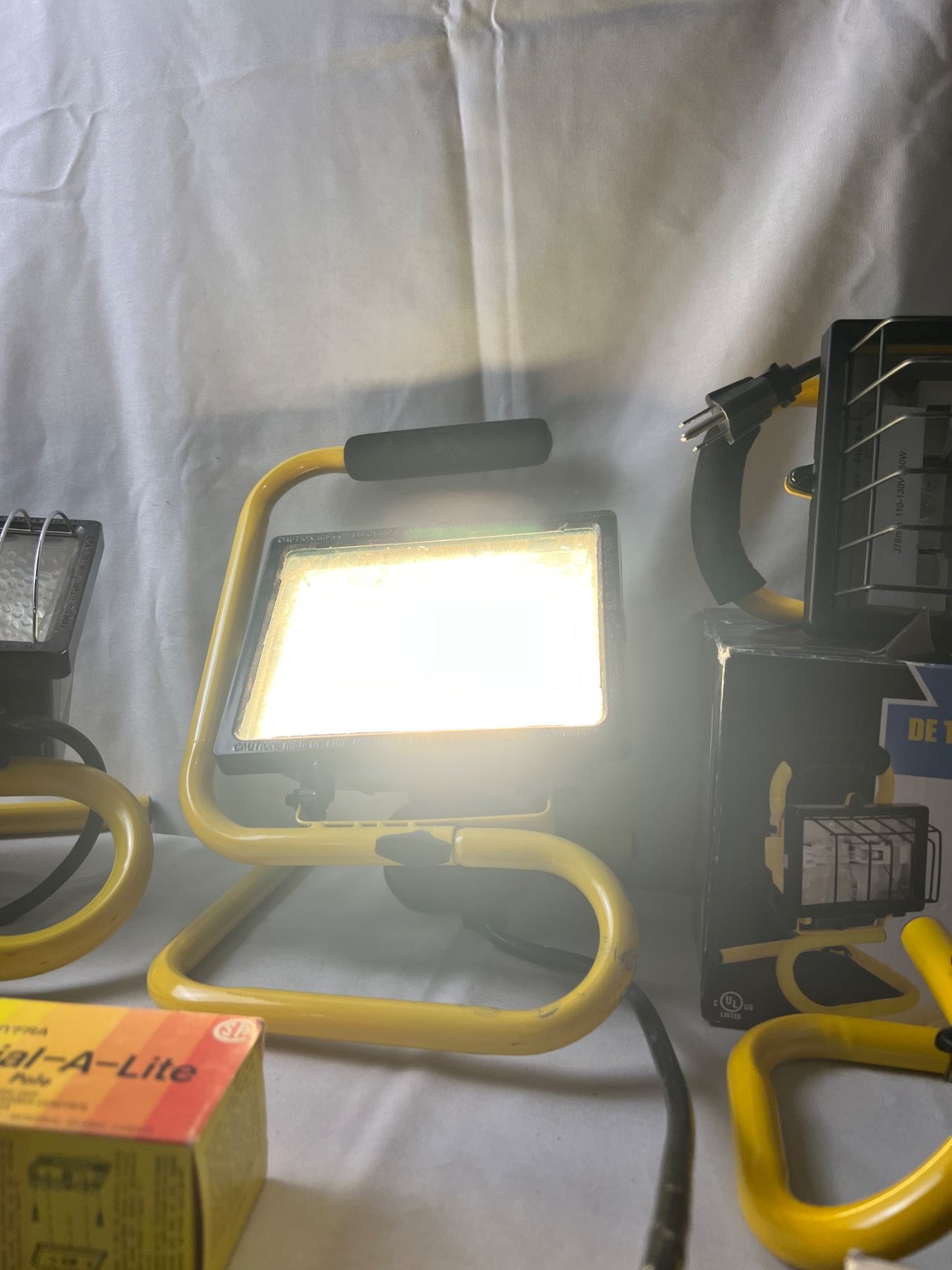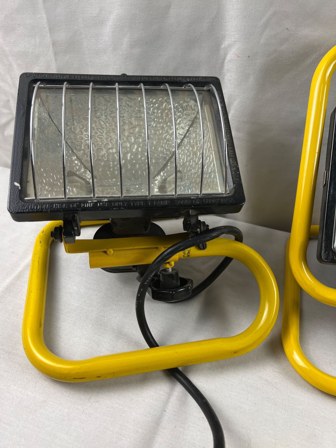 Two of the work lights are in working condition (7.5"H), 250 Watt Halogen Worklight (open box)