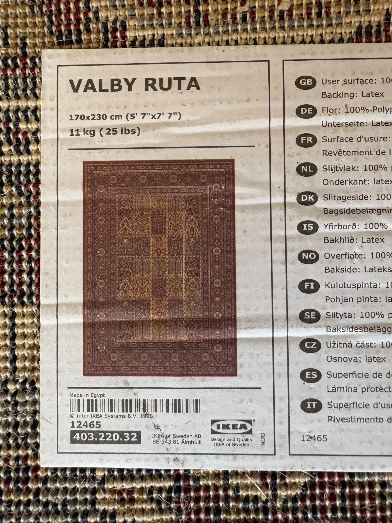 measurements 5 feet 7" w x 7 foot 7" l