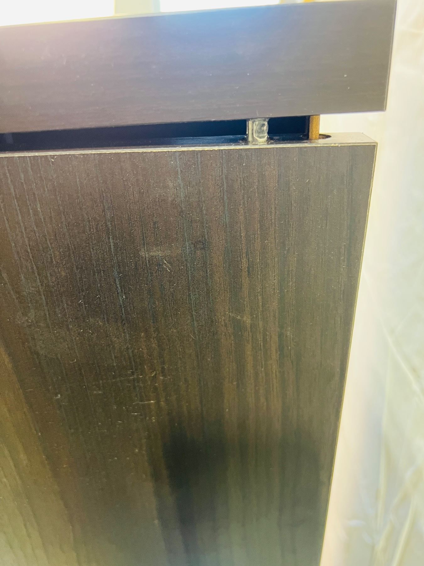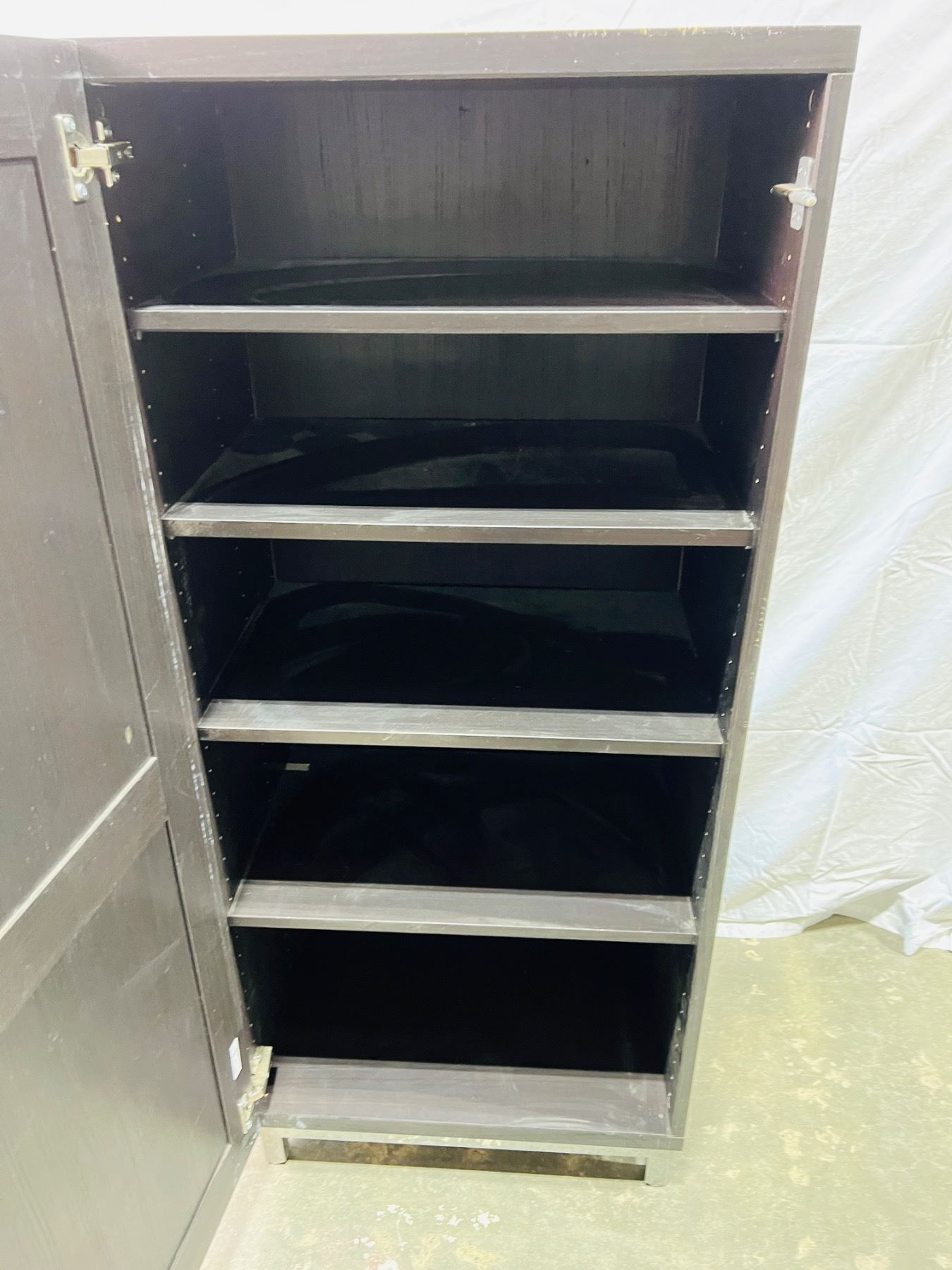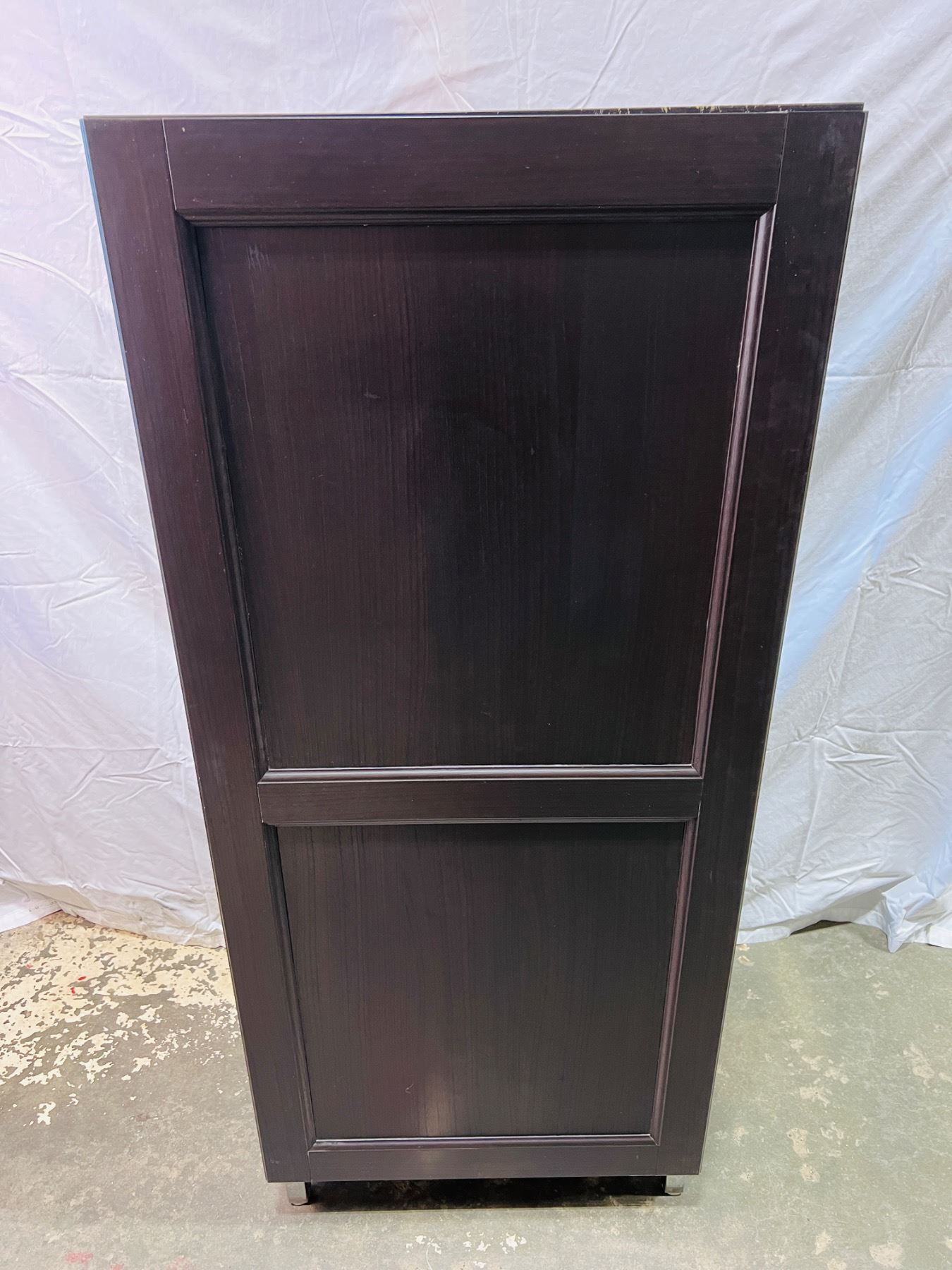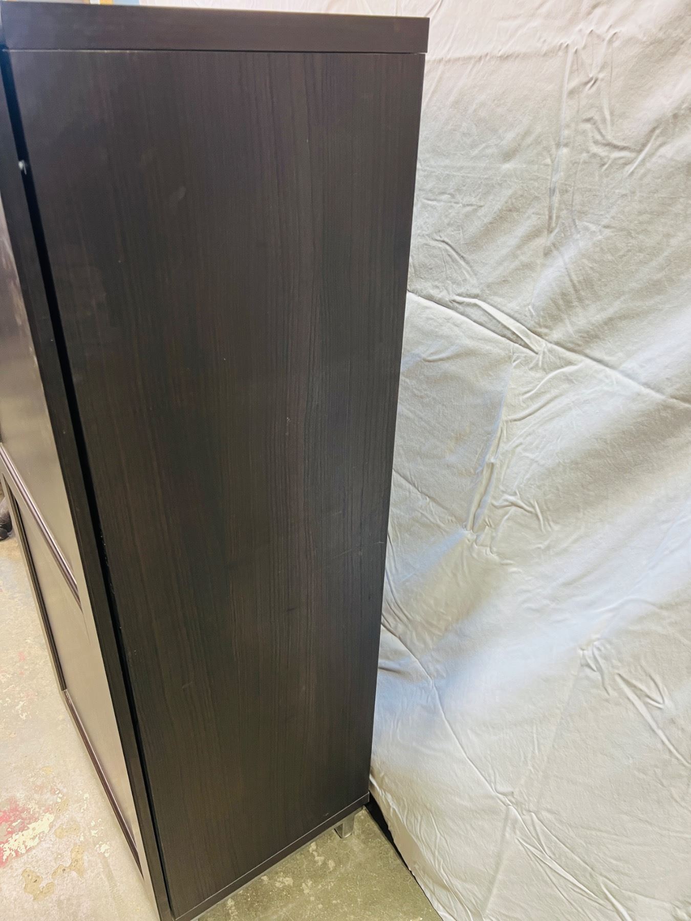 Has some scuffs and wear, top of the cabinet is loose at the back, measures 23"L x 16"W x 54"H