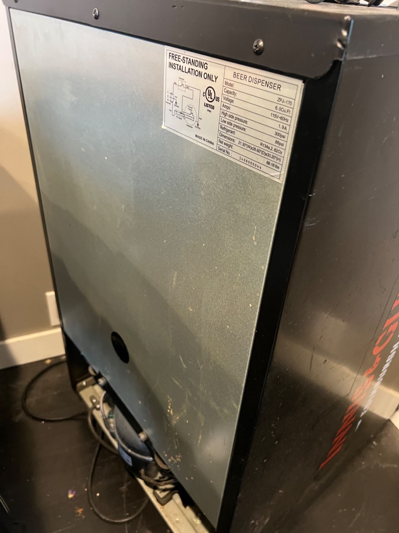 Model # ZPJ-170. Unknown if has full functionality. Stains on door and interior floor. Measures 36"H by 21"W by 25"D