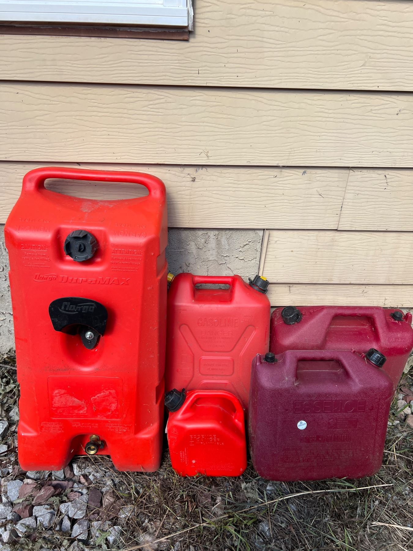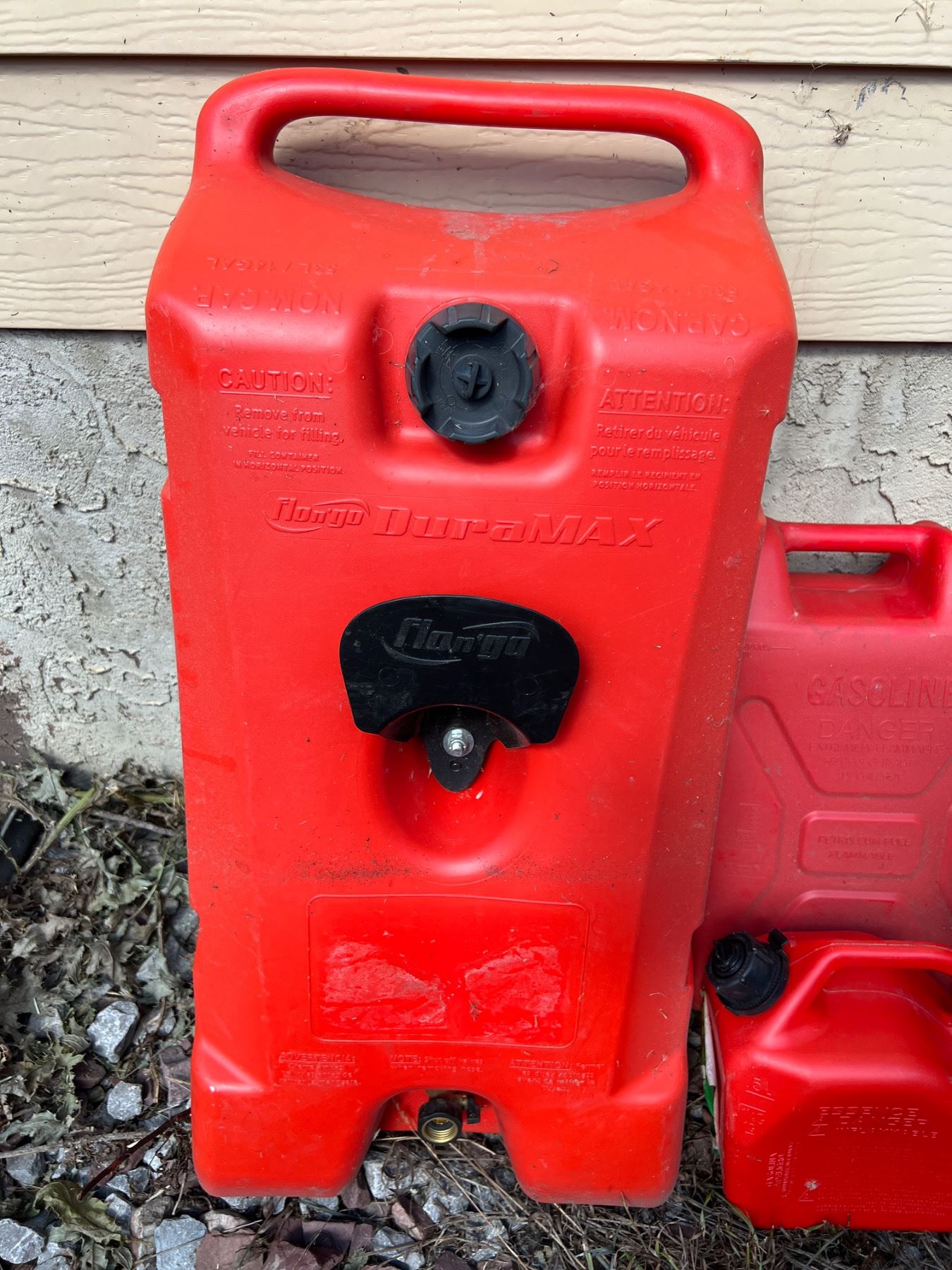 Includes a Flo n Go Duramax 52L rolling cart, smallest is 5L, all empty