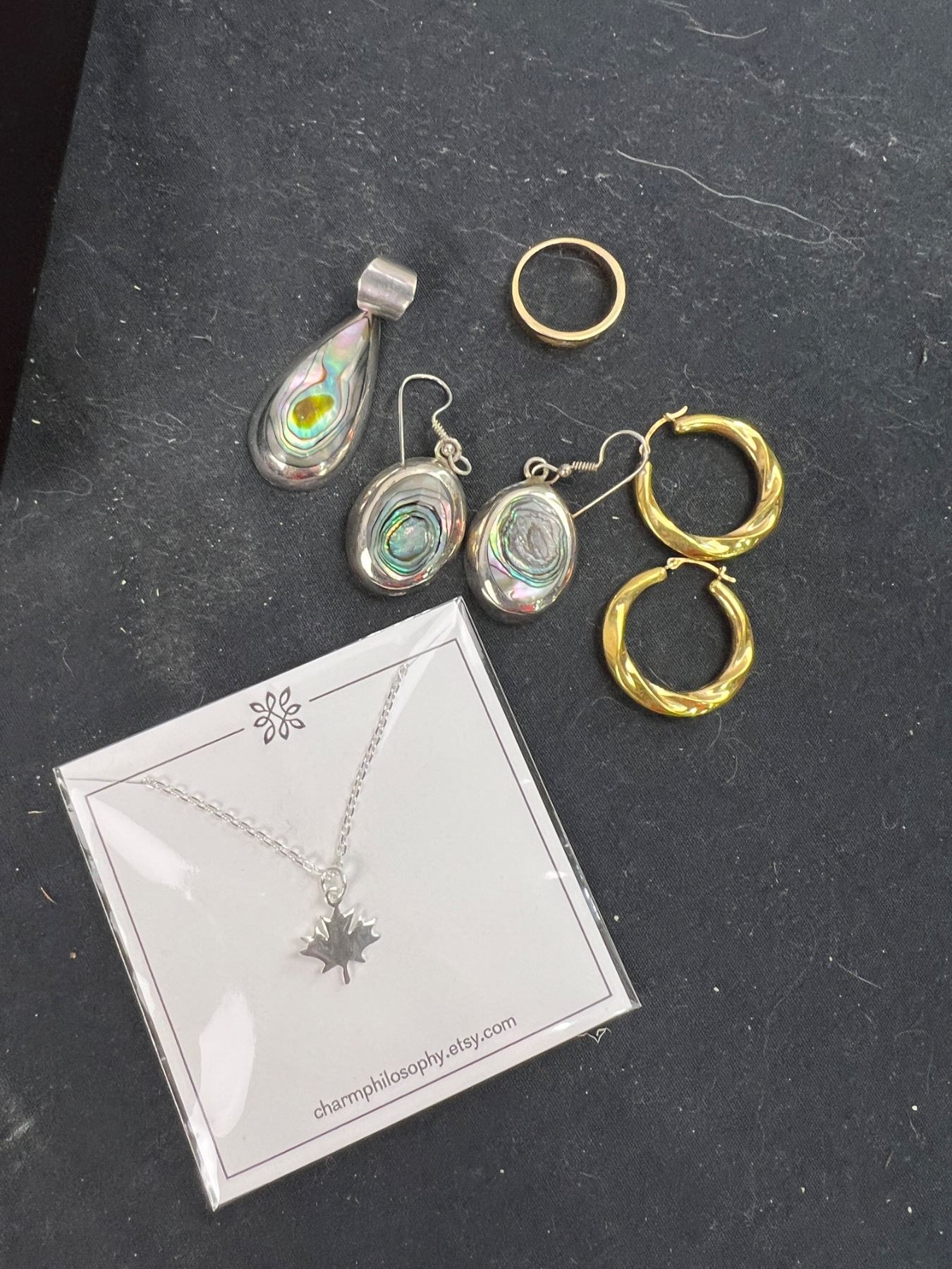 Includes, Charm Philosophy .925 stamped necklace, .925 stamped pendant and two earrings (7g total), and more