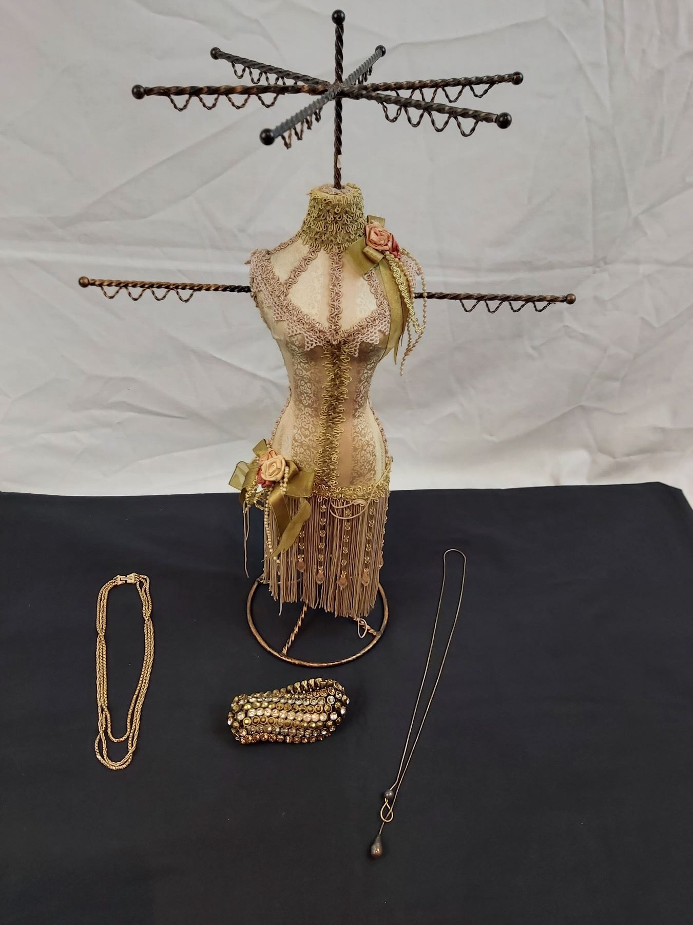 Includes 2 necklace's and one bracelet, Stand; 20"H x 14"W