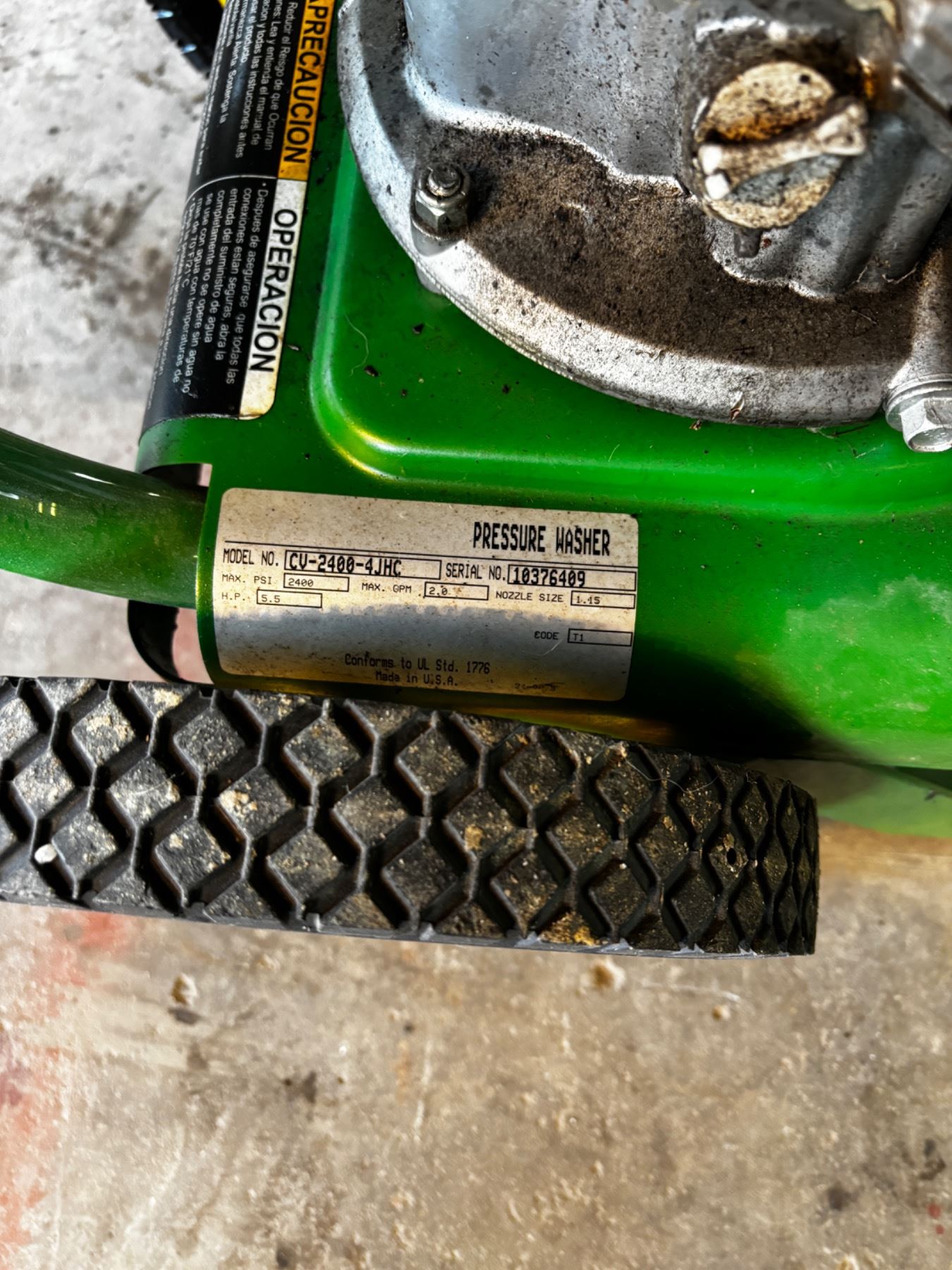 Not tested (needs fuel), 2400 psi, 5.5hp, Model No. CV-2400-4JHC