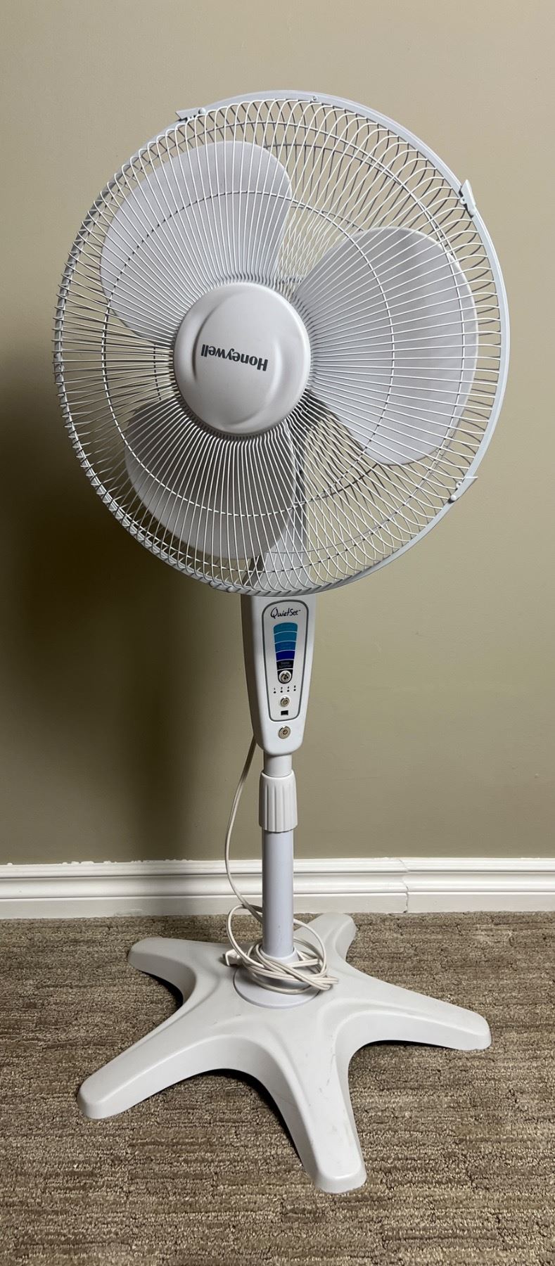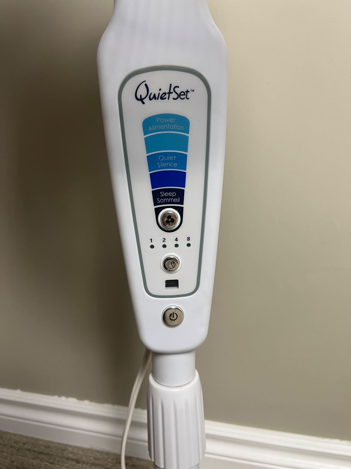 Powers on. Loose on base. Stands 42" tall