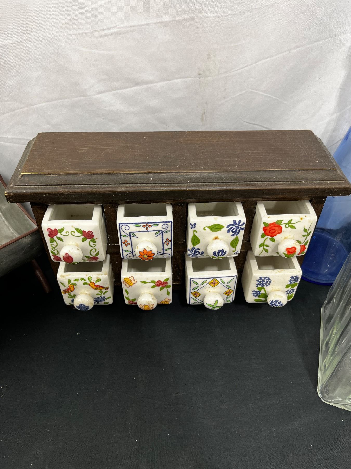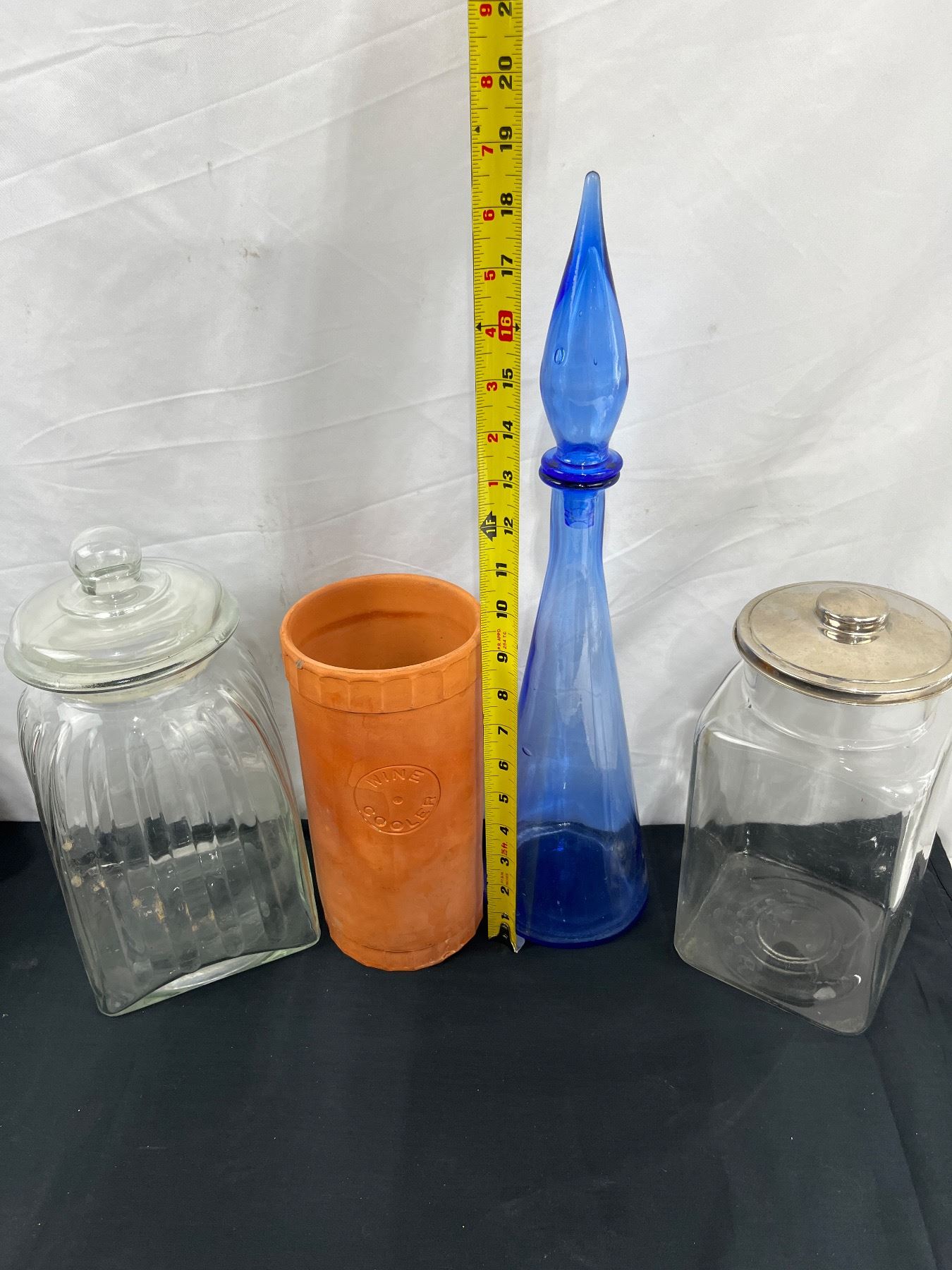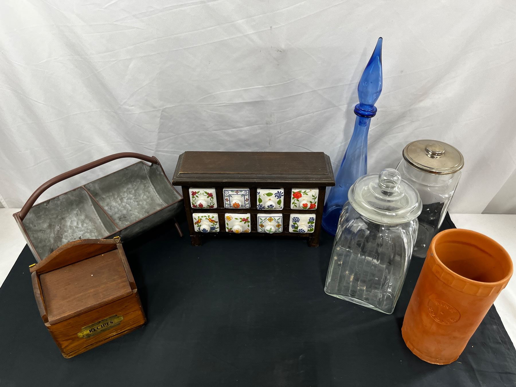 Includes, various jars, decanter, recipe box, storage bin etc.