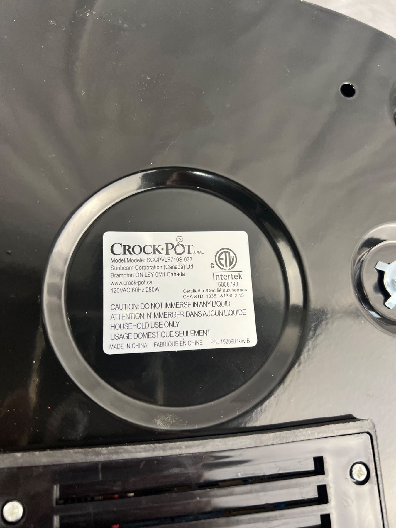 Crockpot Model SCCPVL710S-033