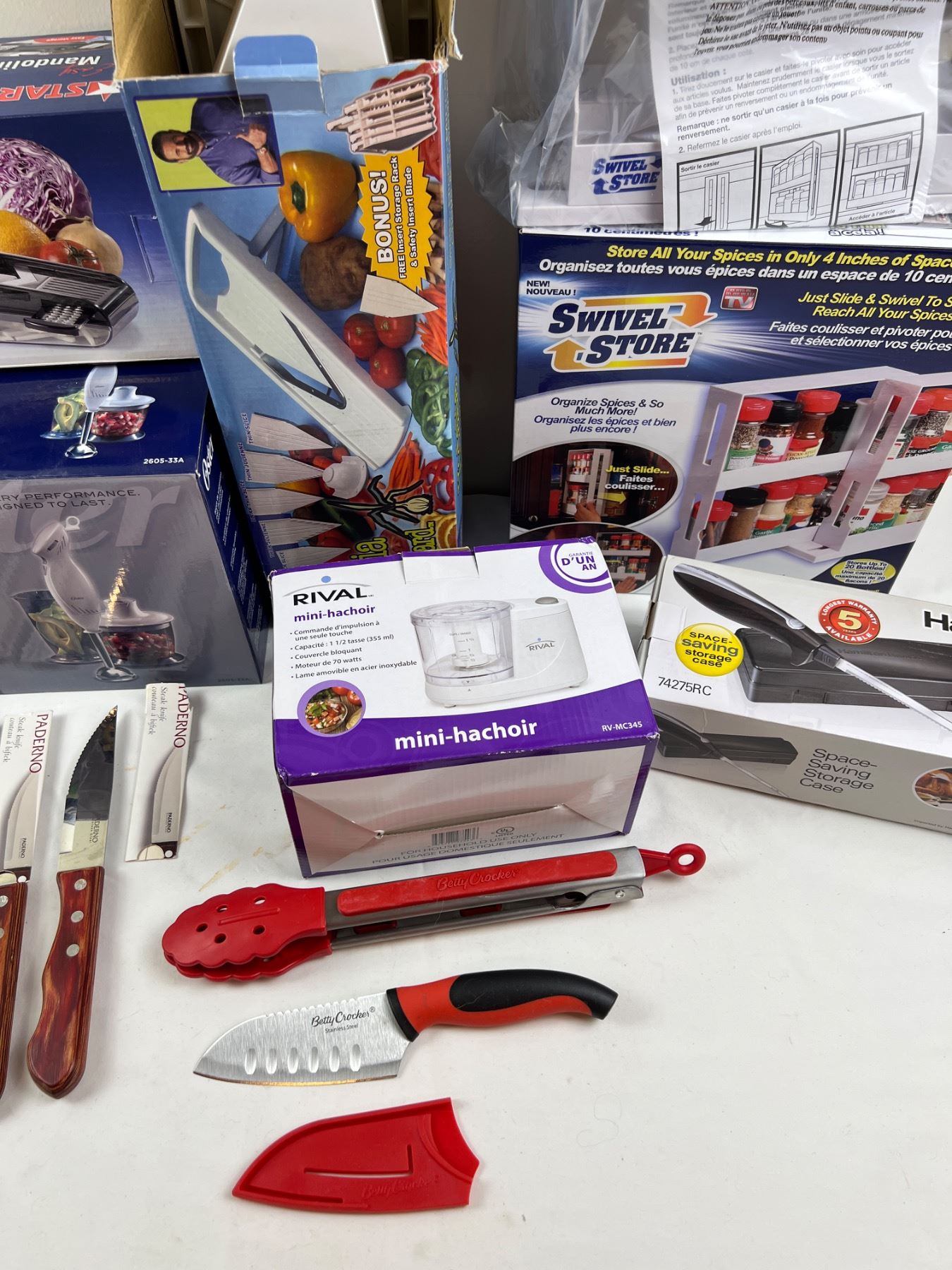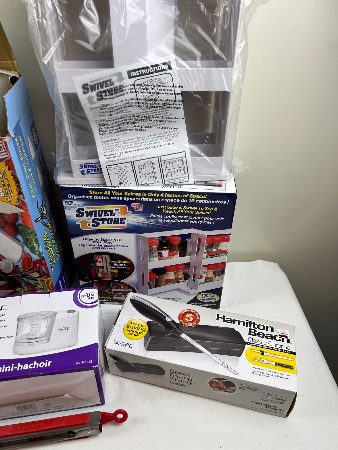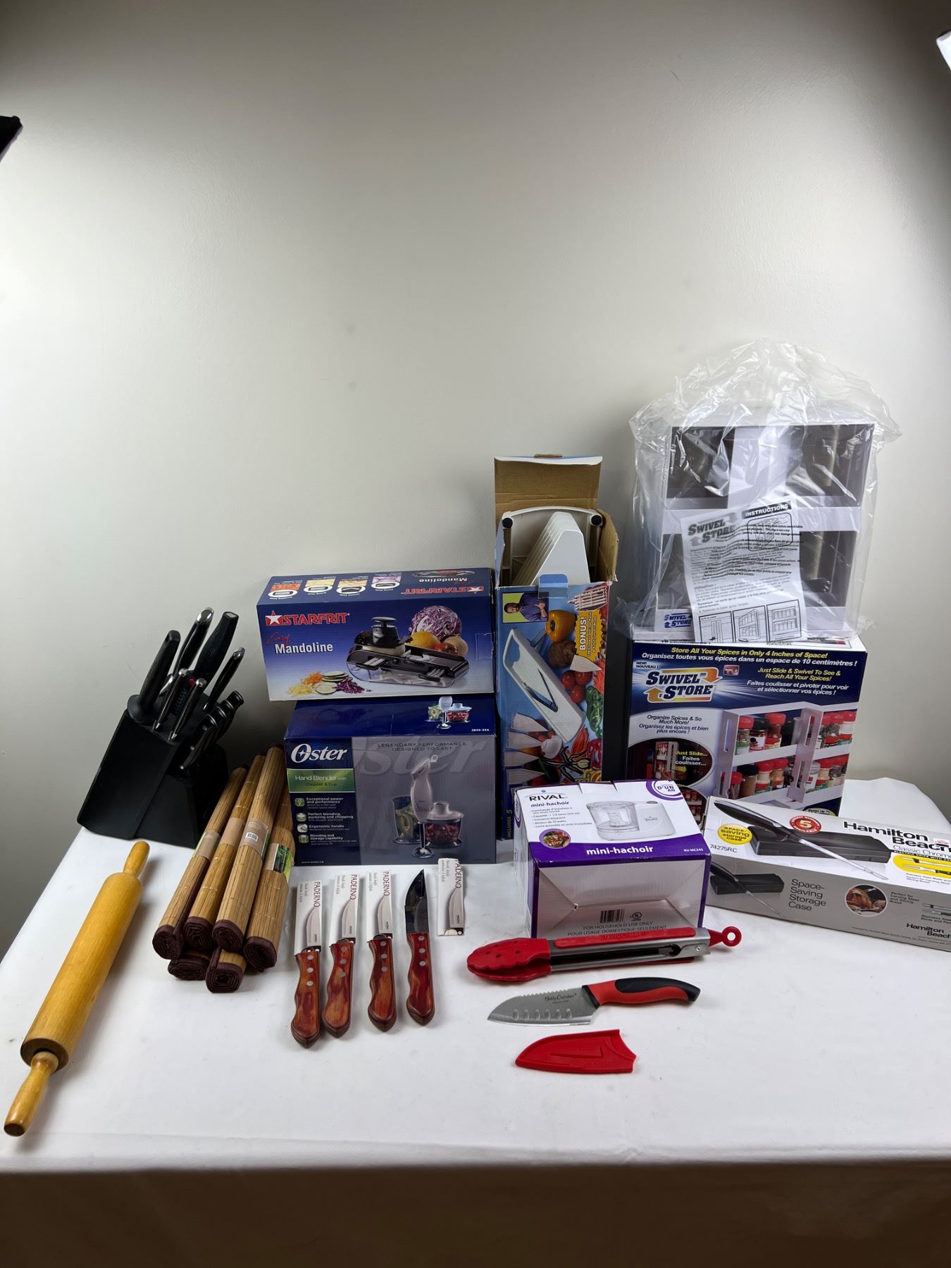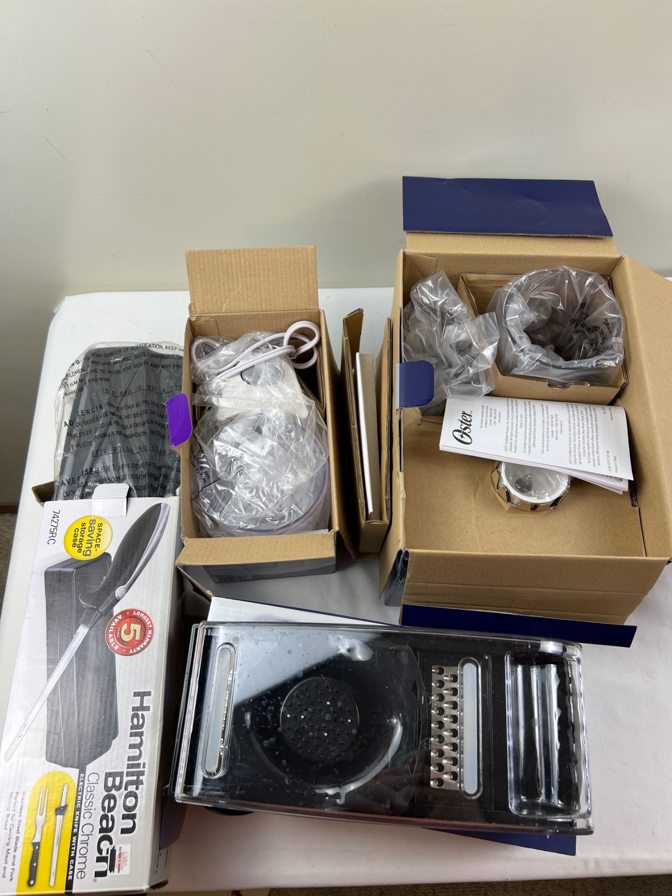 Includes, Oster Hand Blender, Hamilton Beach Electric Knife with Case, Swivel Store, and more,