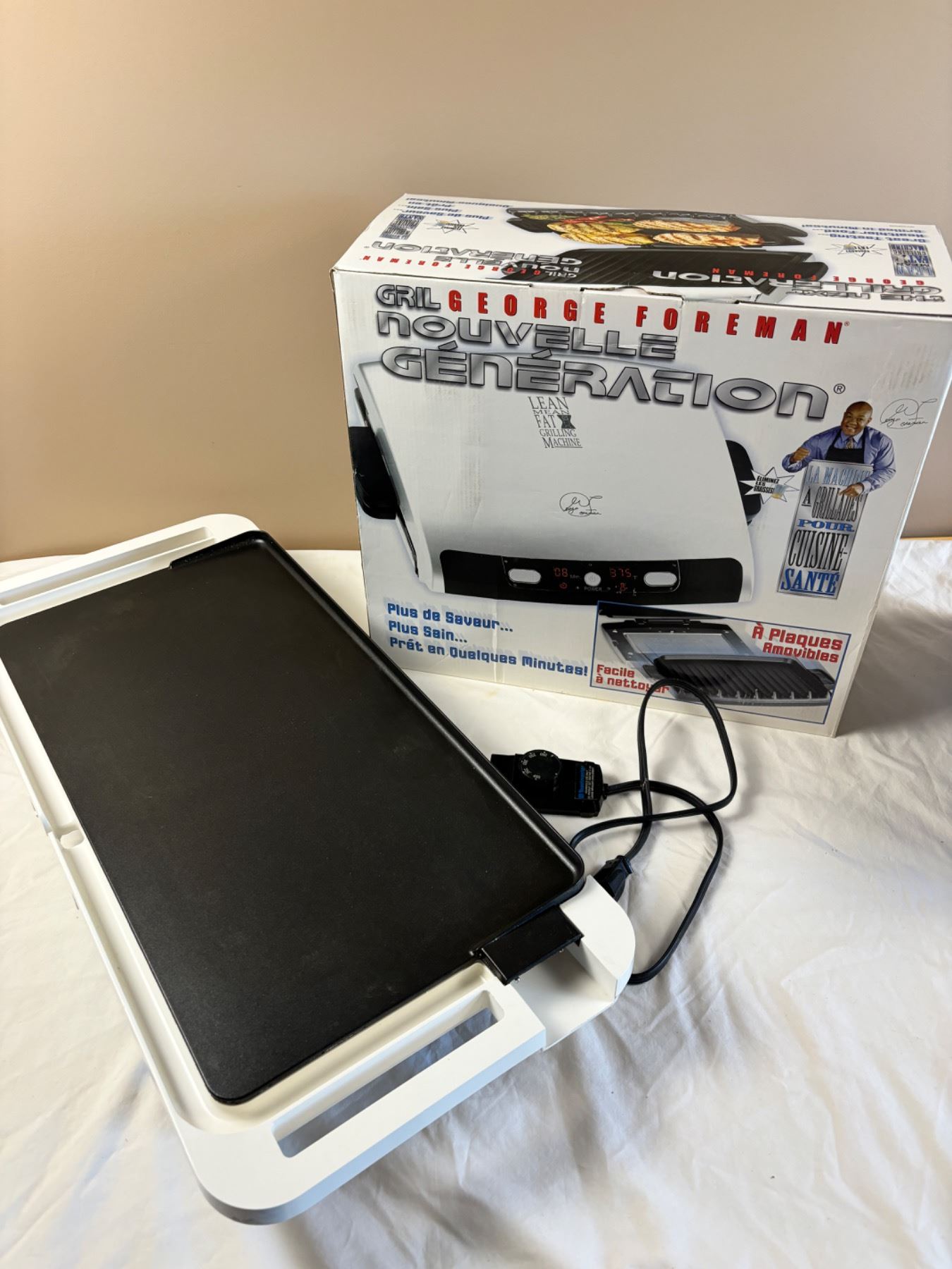 Includes, Large griddle (has power), Lean Mean Fat Grilling Machine new in open box