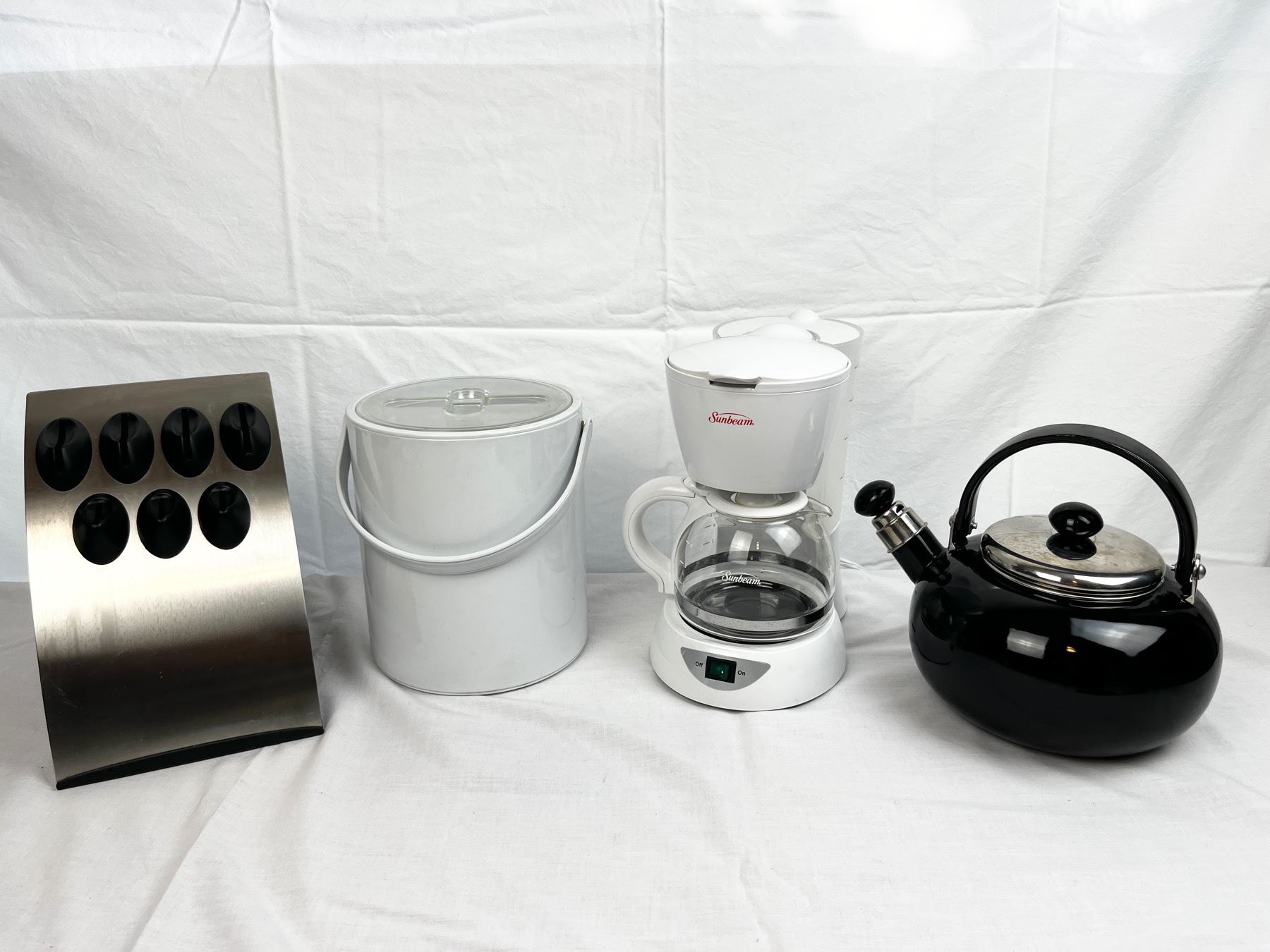 Includes assorted kitchen items including tea pot, coffee pot, ice bucket etc…