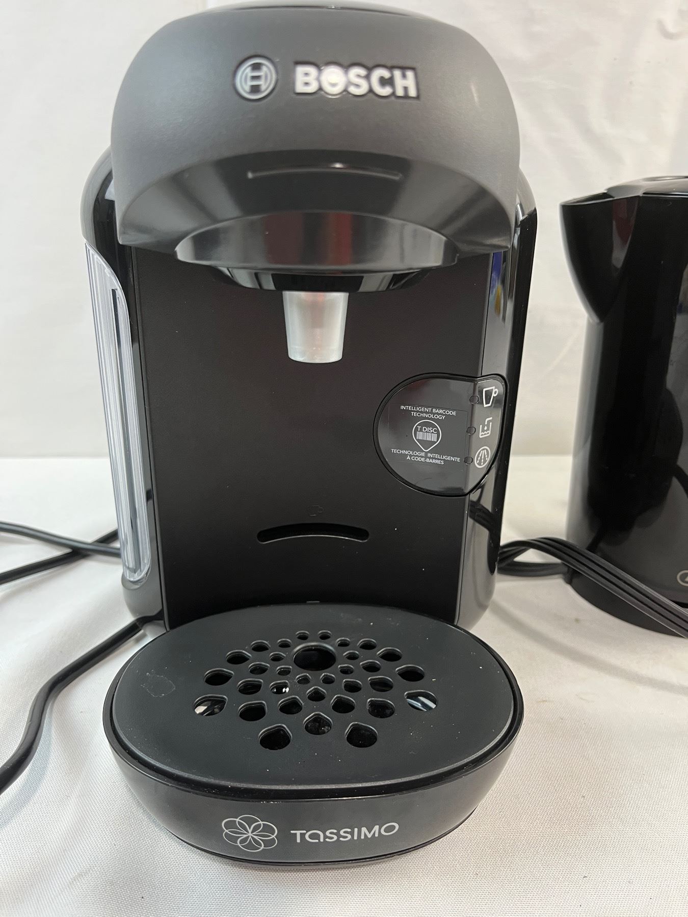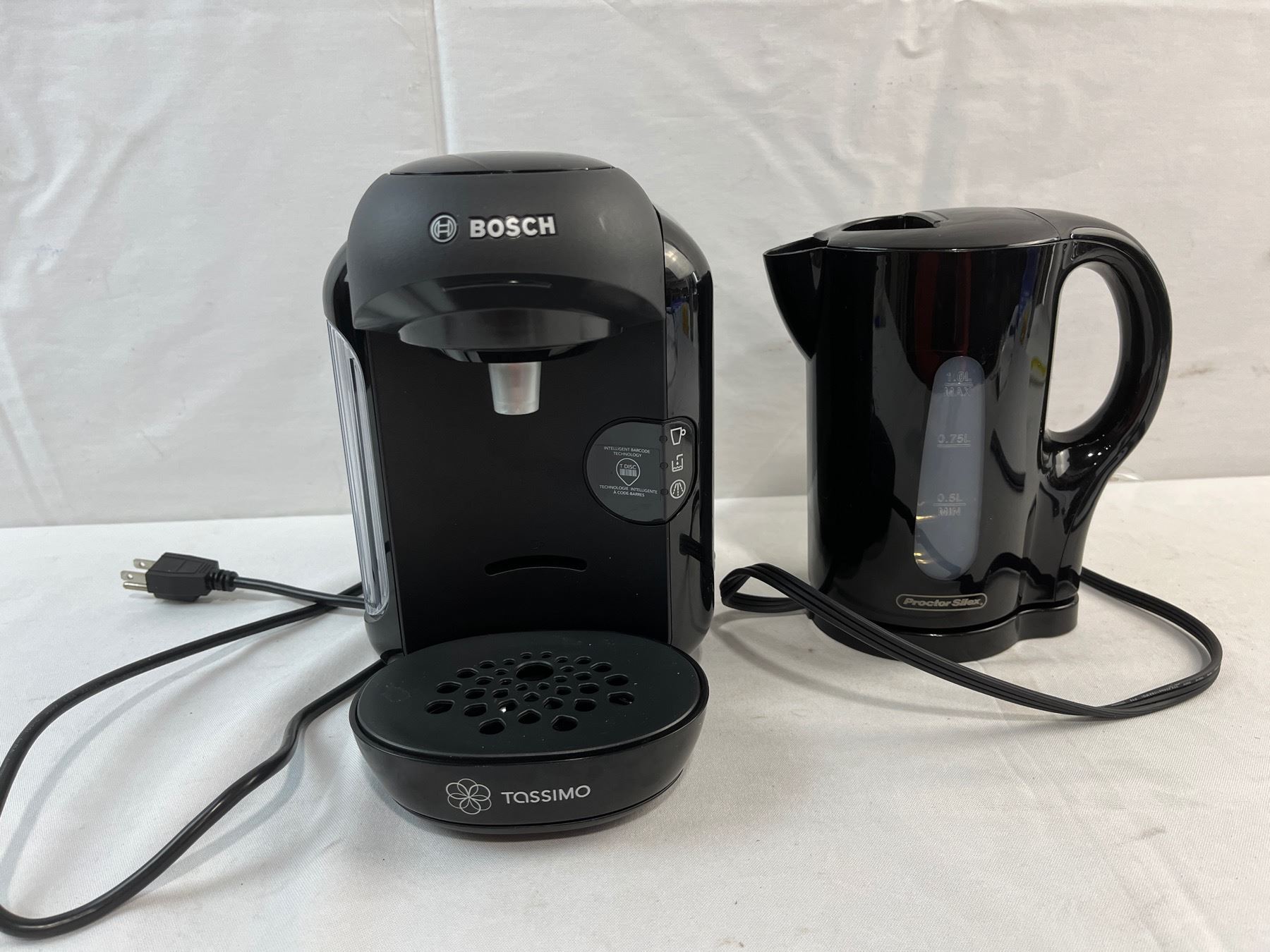 Bosch Tassimo with intelligent barcode technology and Proctor Silex Kettle, turns on, used