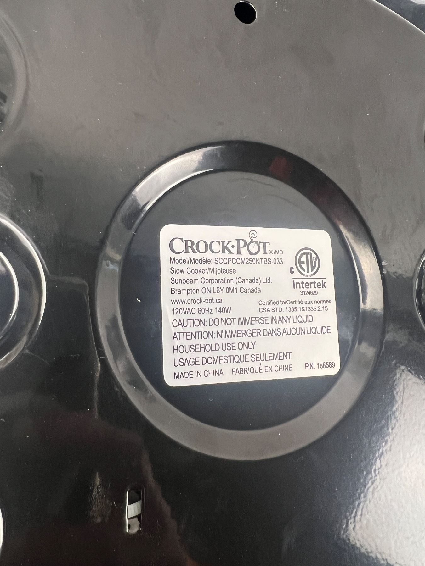 Crock Pot Model # SCCPCCM250NTBS-033 Turns On