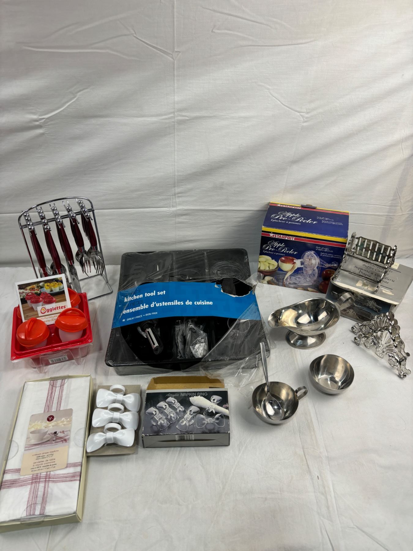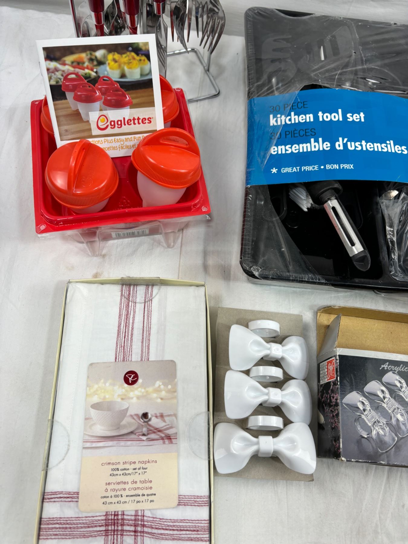 Includes egglettes, Napkin rings. cutlery, and more