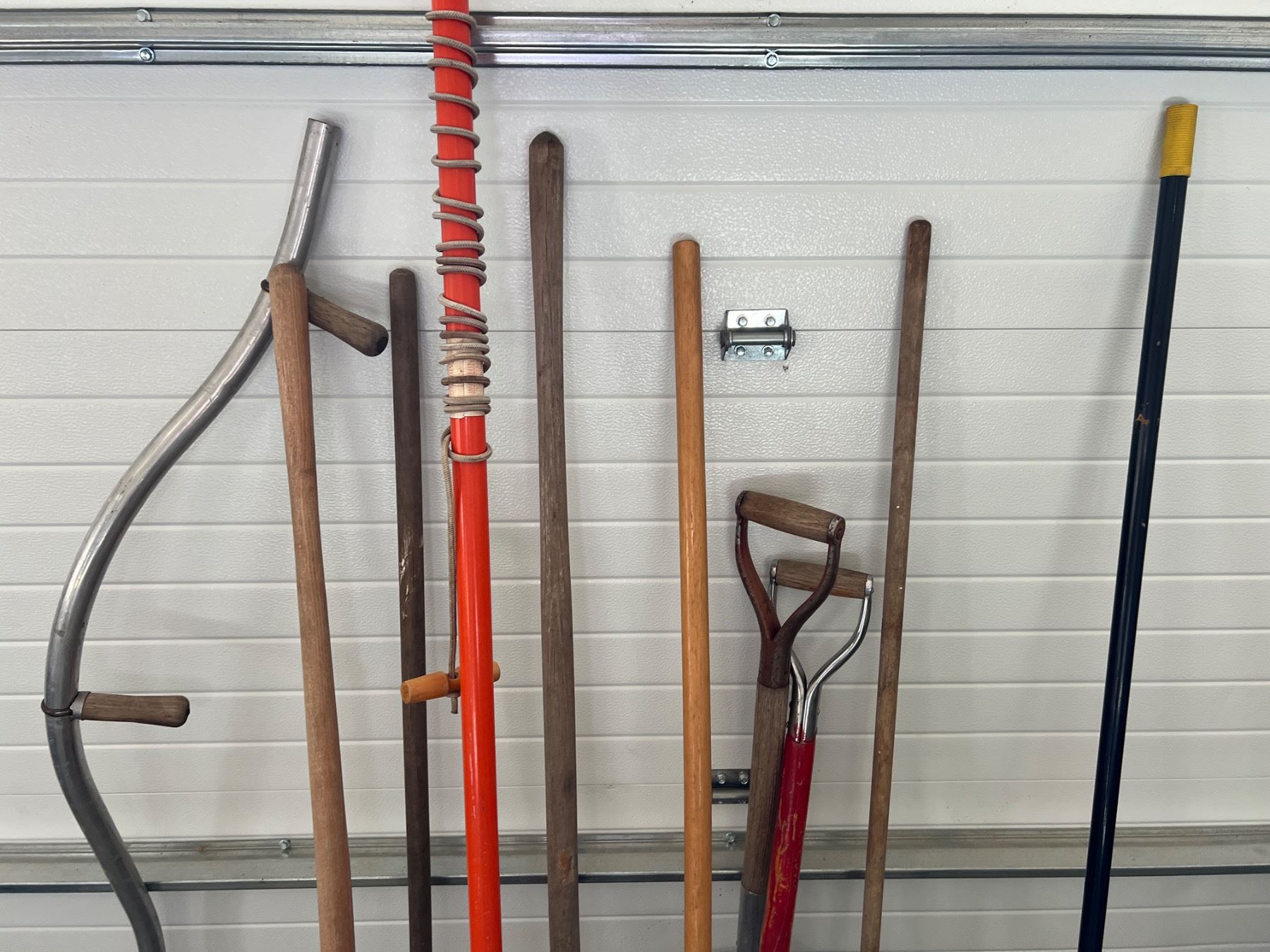 Includes a Toro Electric Super Blower (works), scythe, shovels, and more