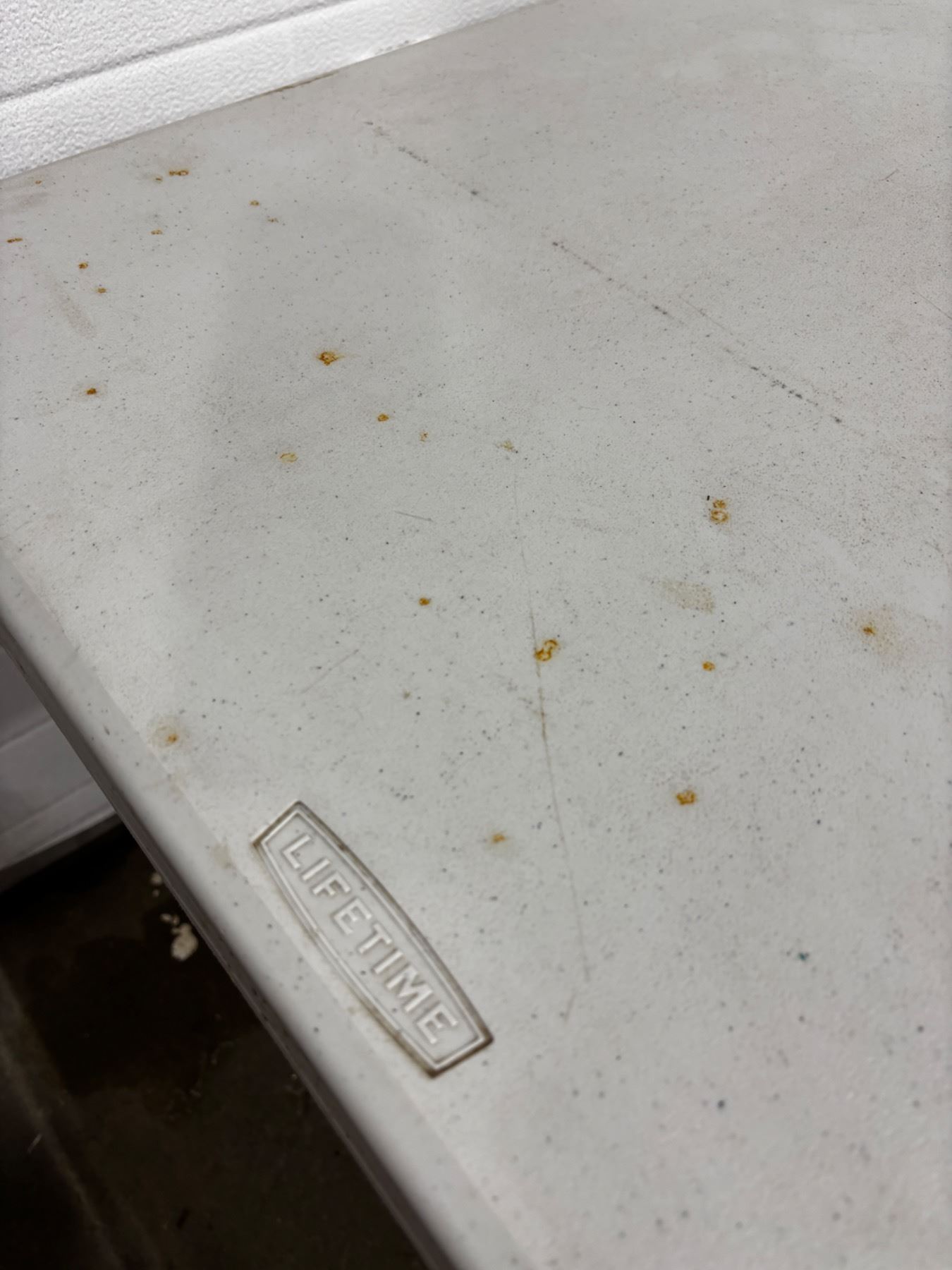 Tabletop has scratches and some stains, 6'L x 30"W x 29"H