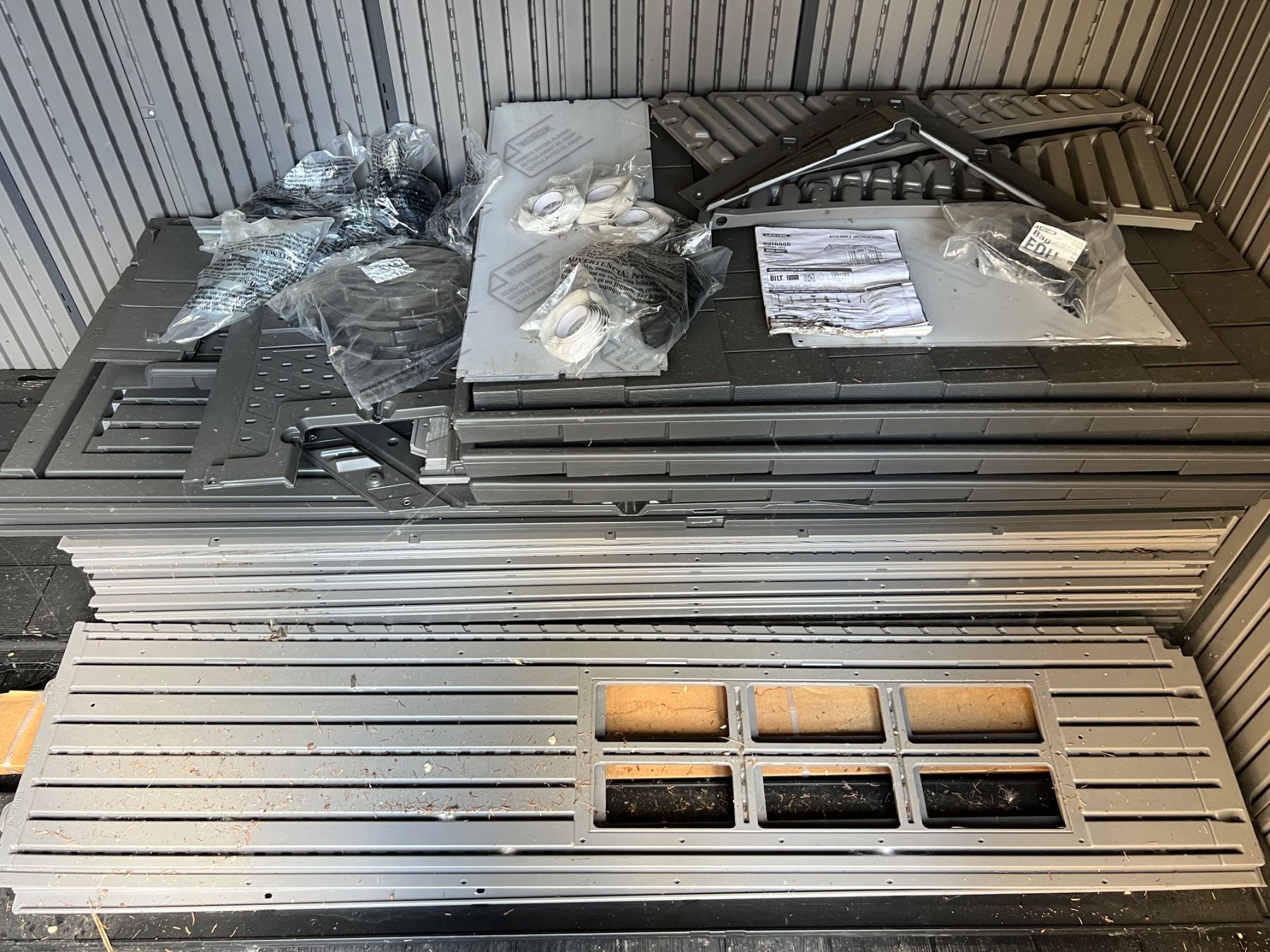Unassembled, cannot confirm that all of the pieces are accounted for, comes with manual
