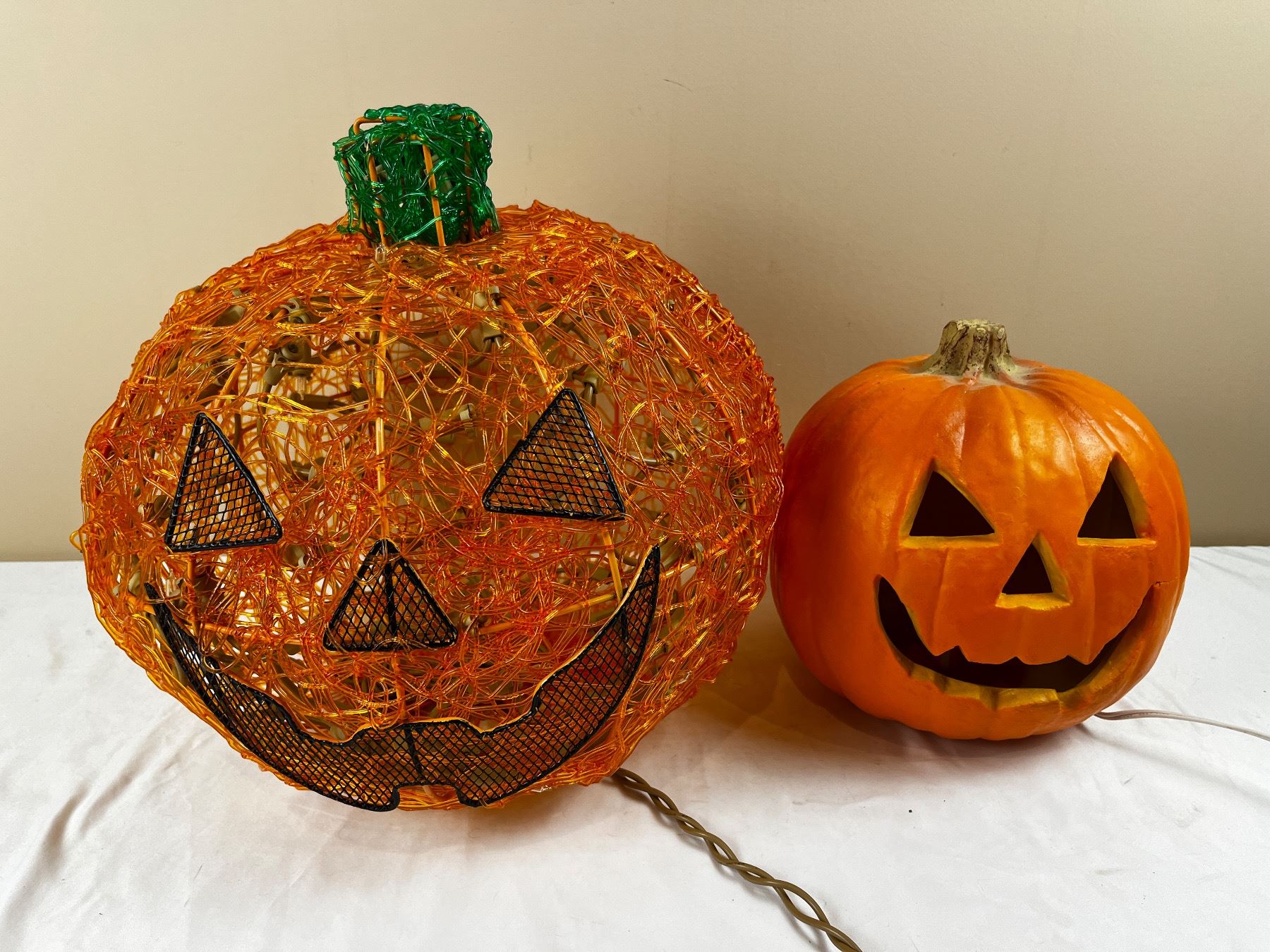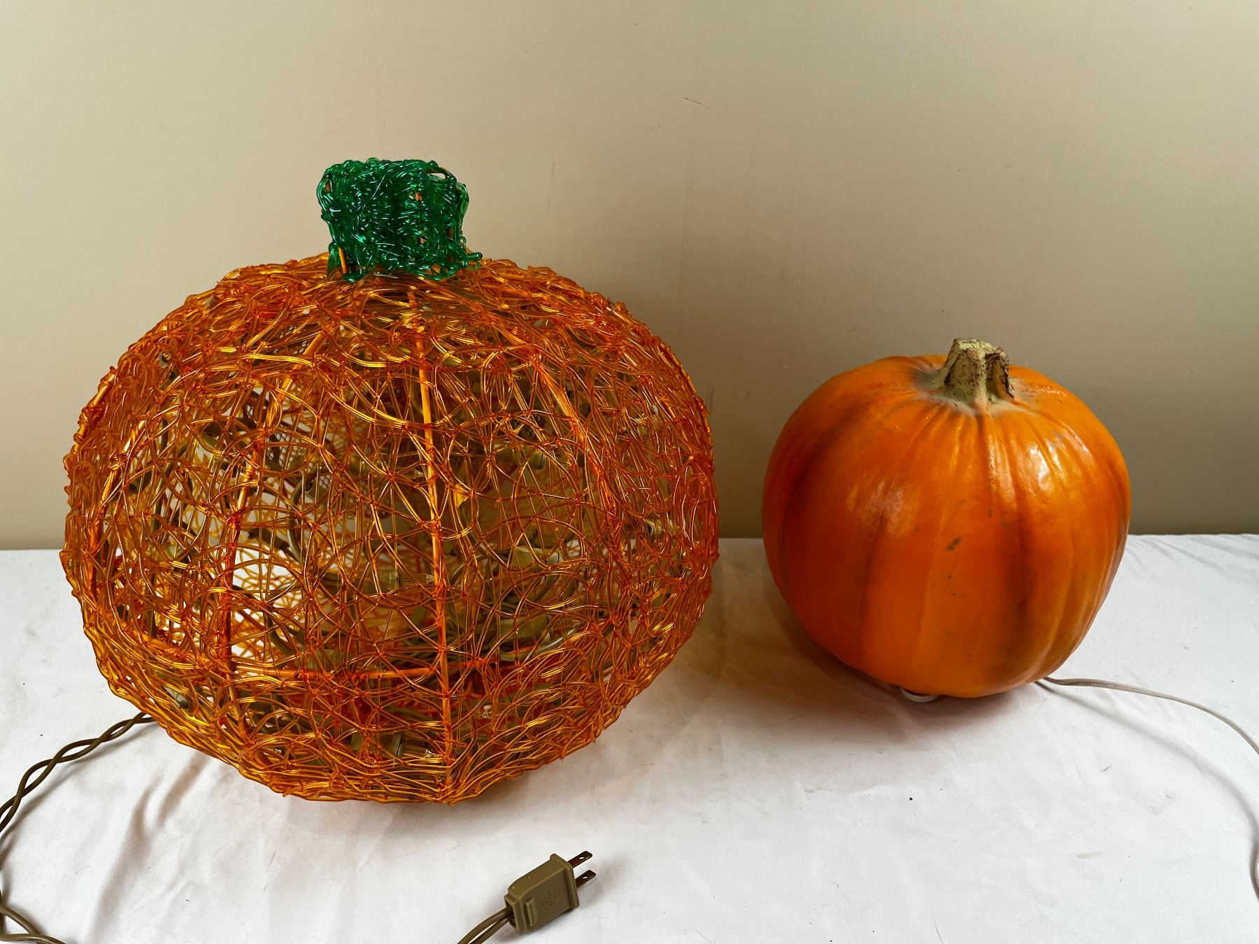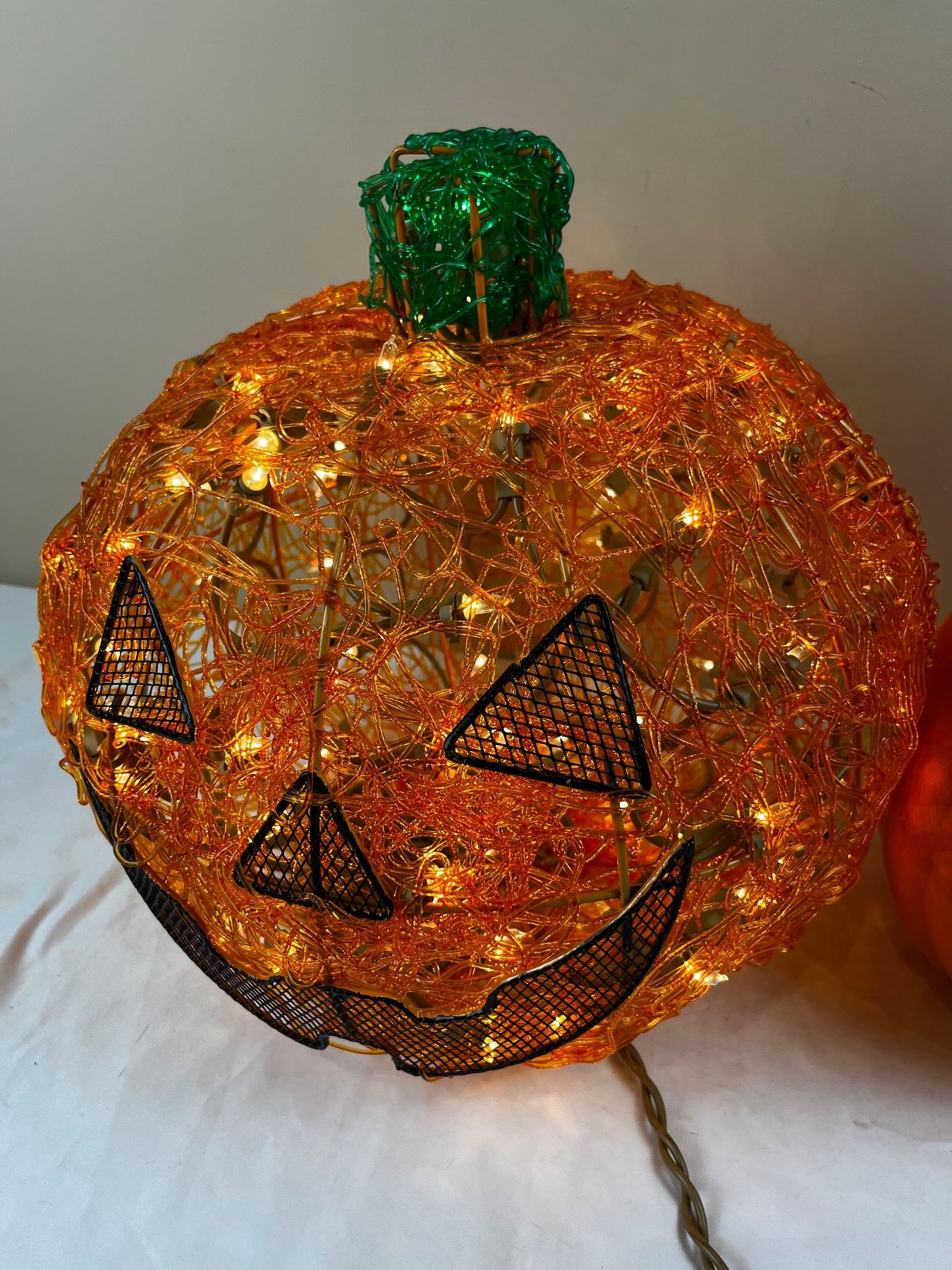 Plastic 9" wide x 10" tall - Wire 14" wide x 14" tall - both turn on