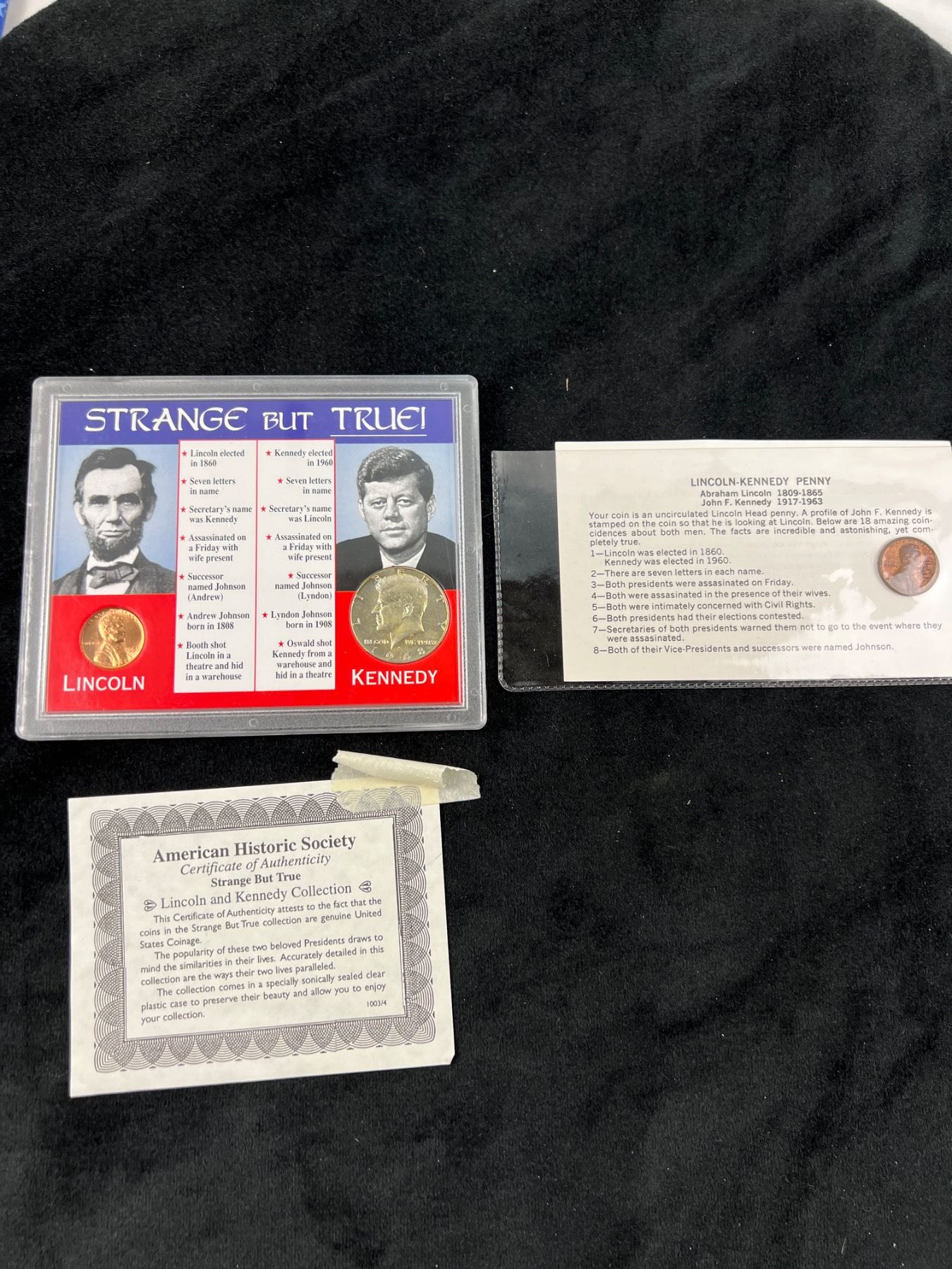 Includes Strange But True Set with Certificate of Authenticity & Lincoln-Kennedy Penny