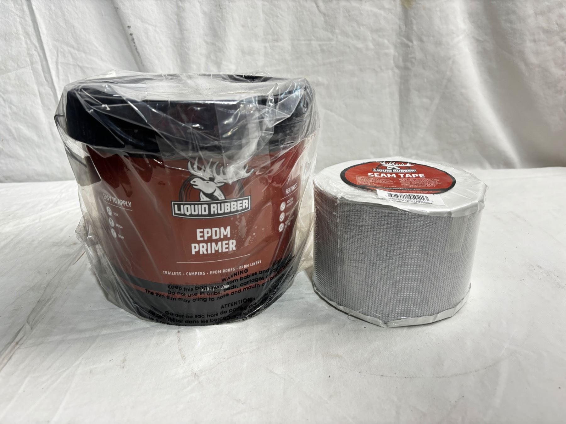 Includes, new 3.78L bucket of Epsom Primer in Clear, New roll of 4"x50' Seam Tape