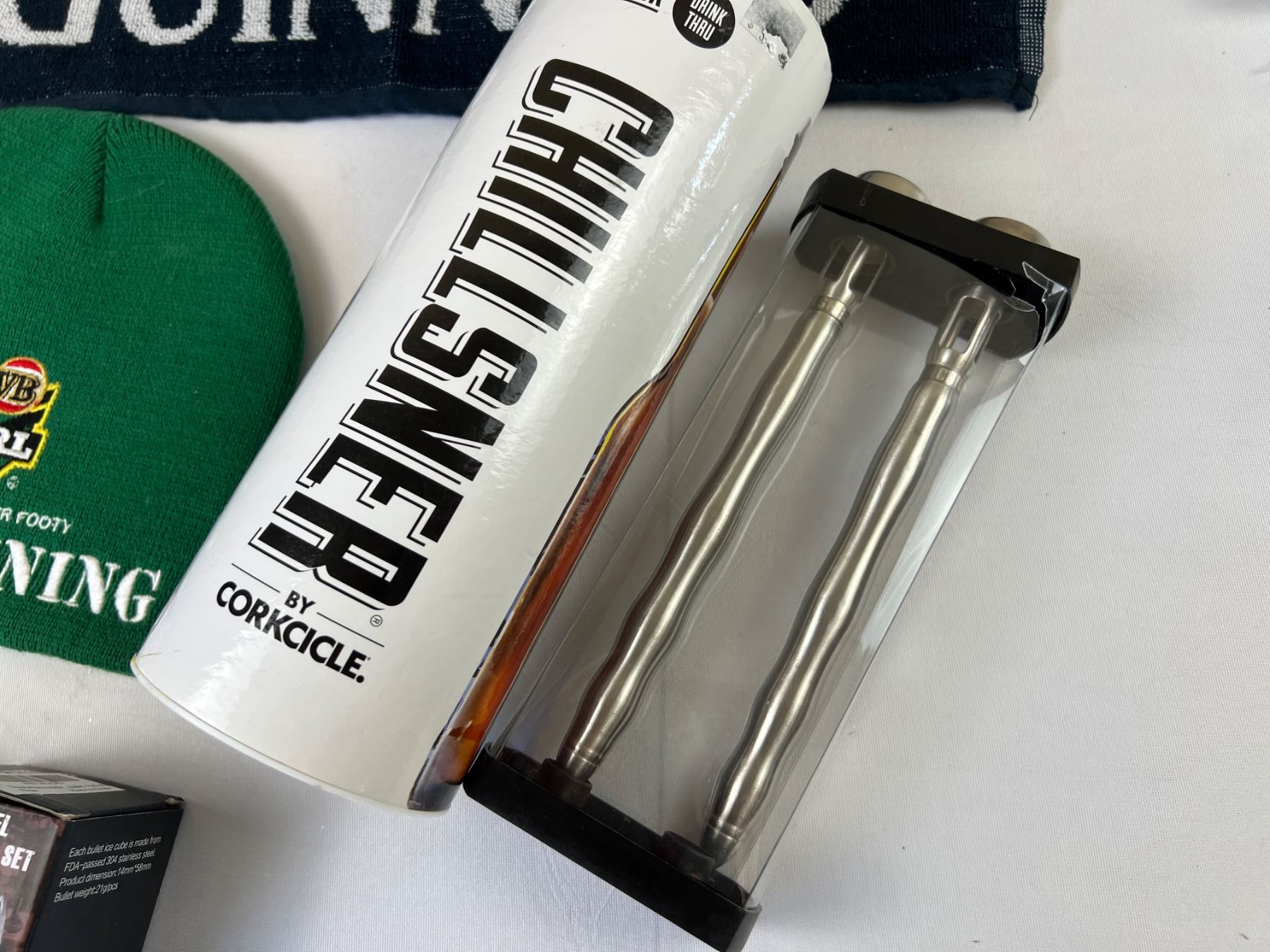 Includes Corksicle Chillsner, Stainless Steel Bullet Ice Cube Set, and more