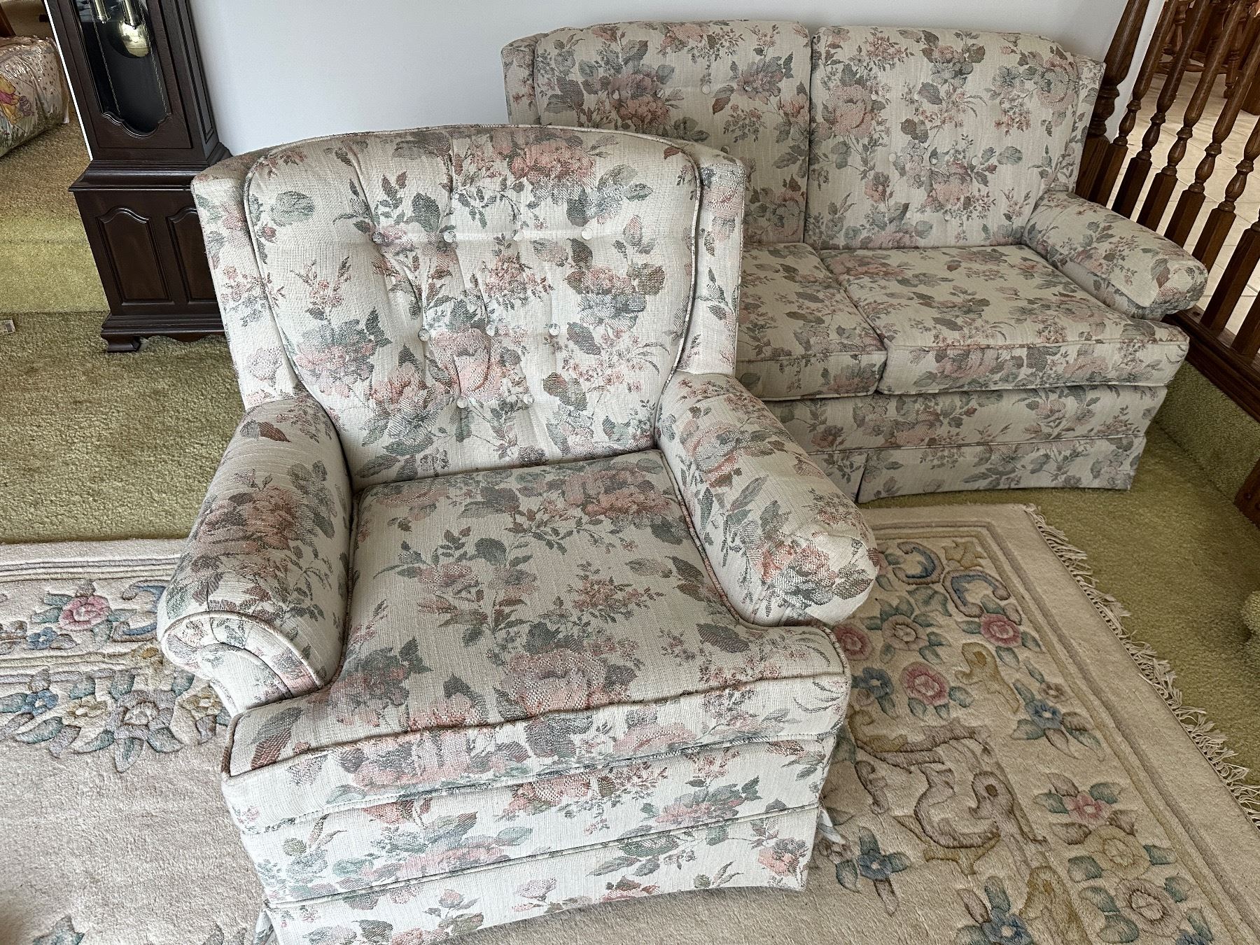 Includes couch, loveseat and chair - Lanark Furniture Corp - Couch 78" long x 34" deep - Loveseat 56" long x 34" deep - Couch 30" wide