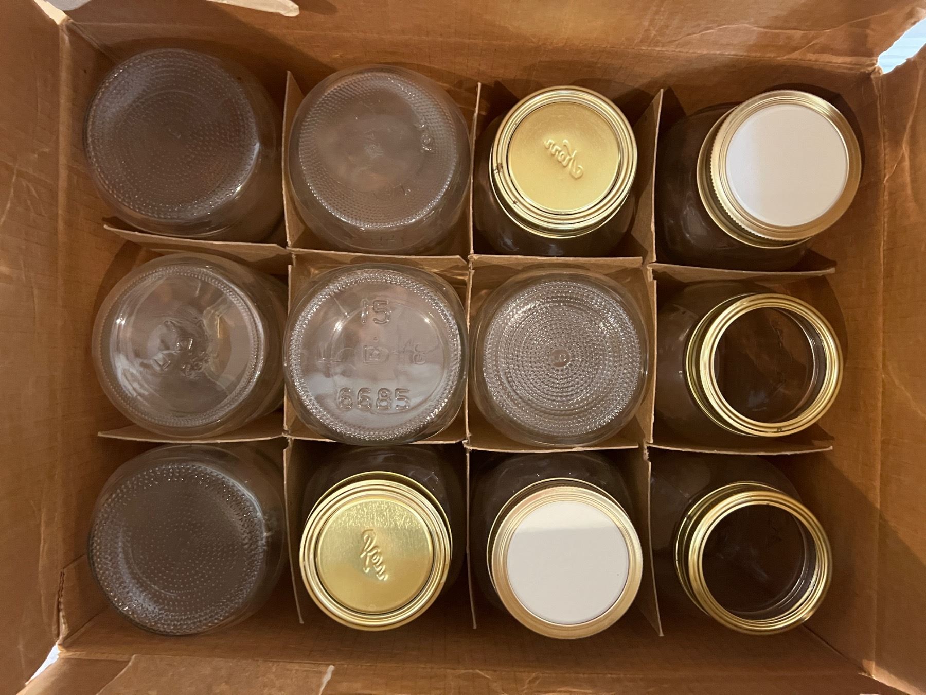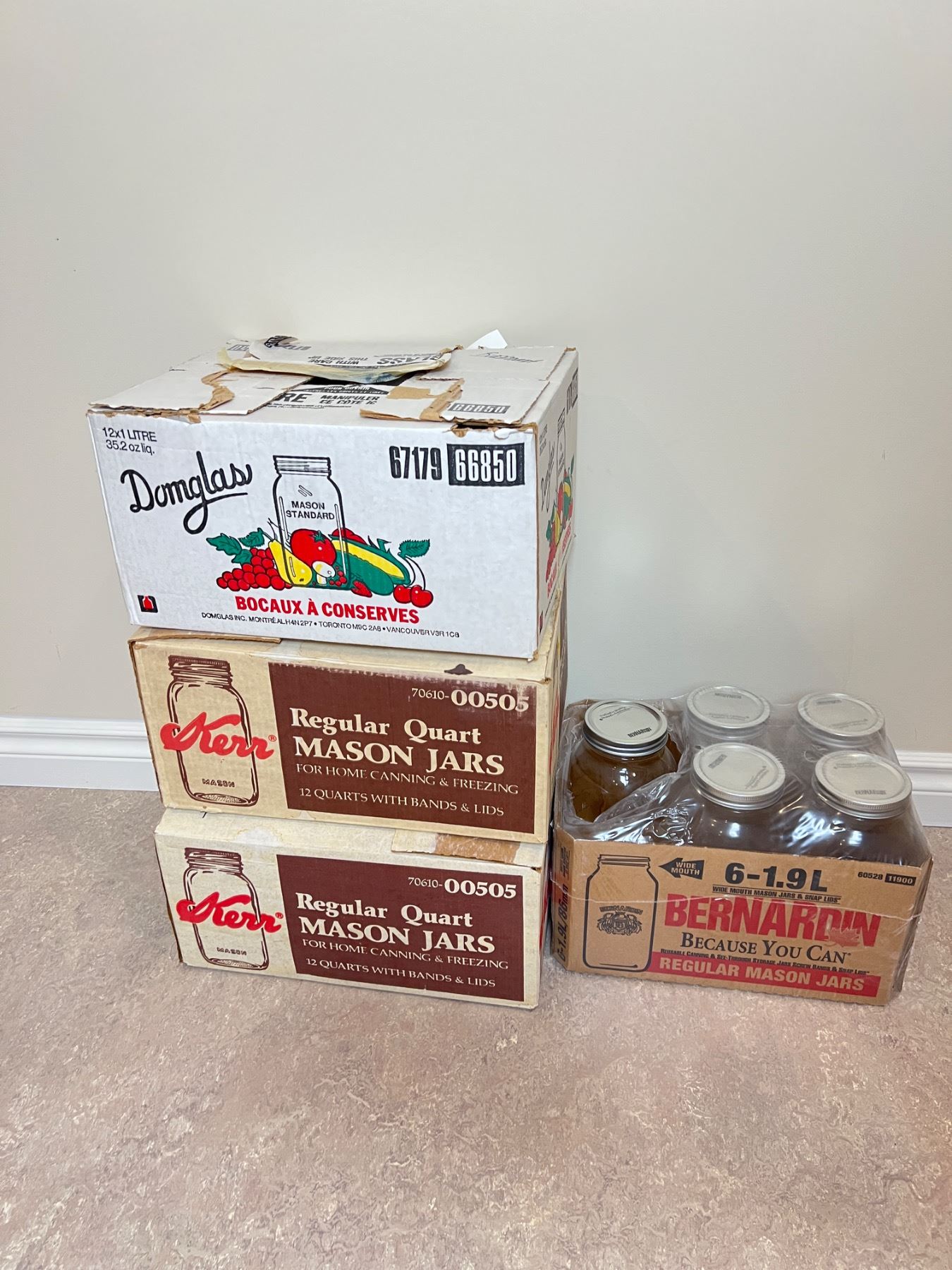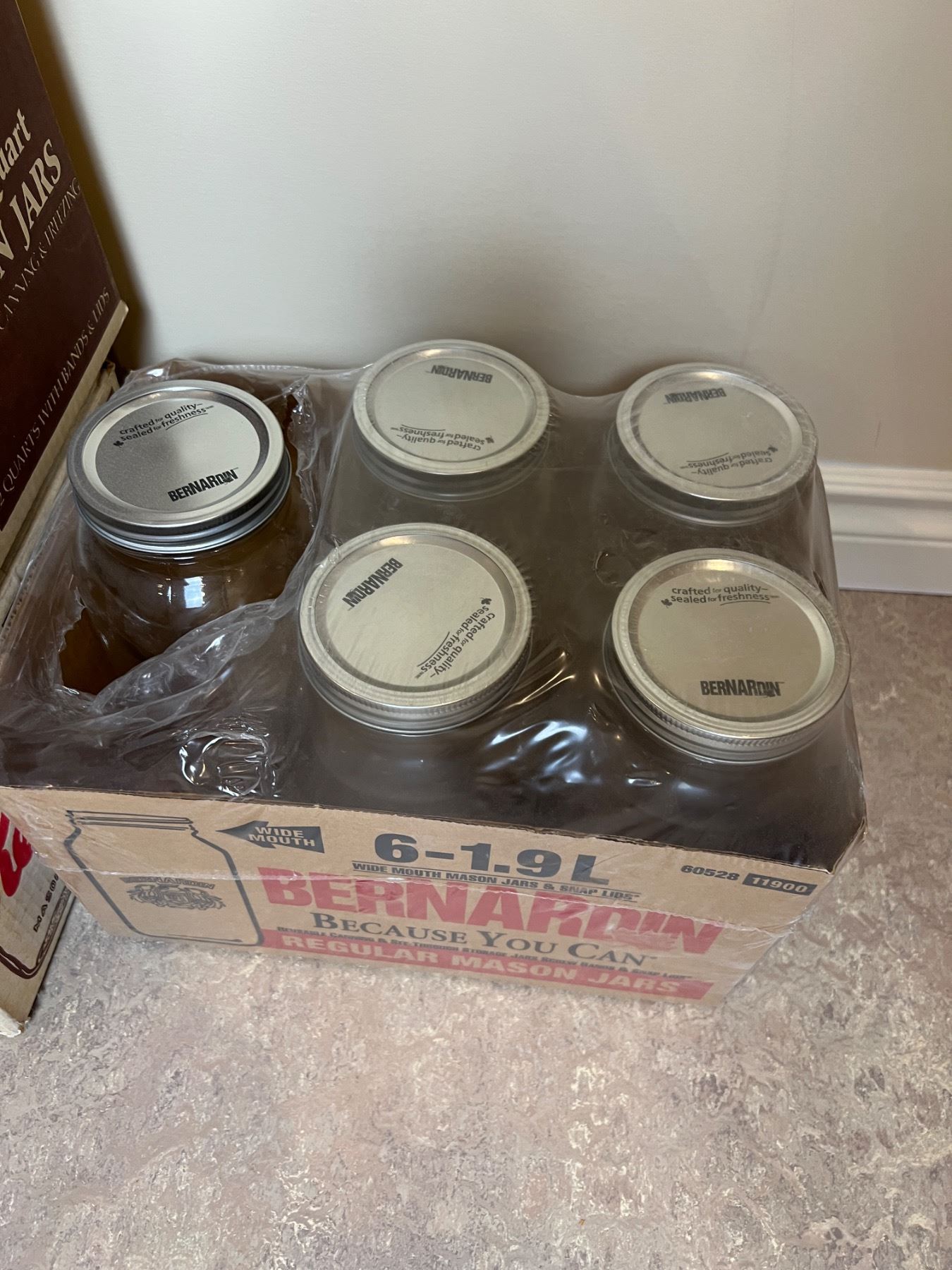 Includes four open boxes of new and used jars, 1-1.9L