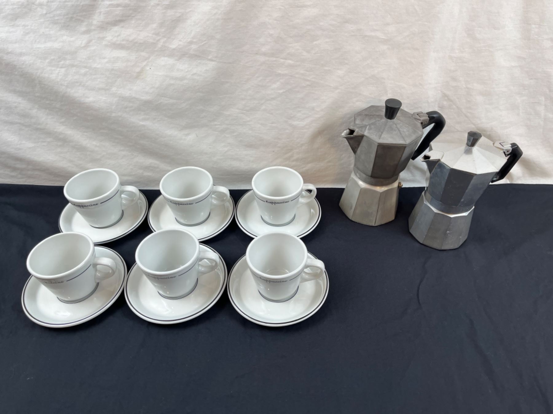 Includes 6 Coffee Cups & Saucers & 2 stove Top Coffee Pots