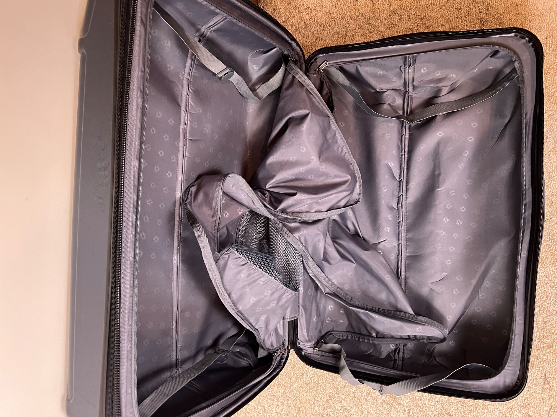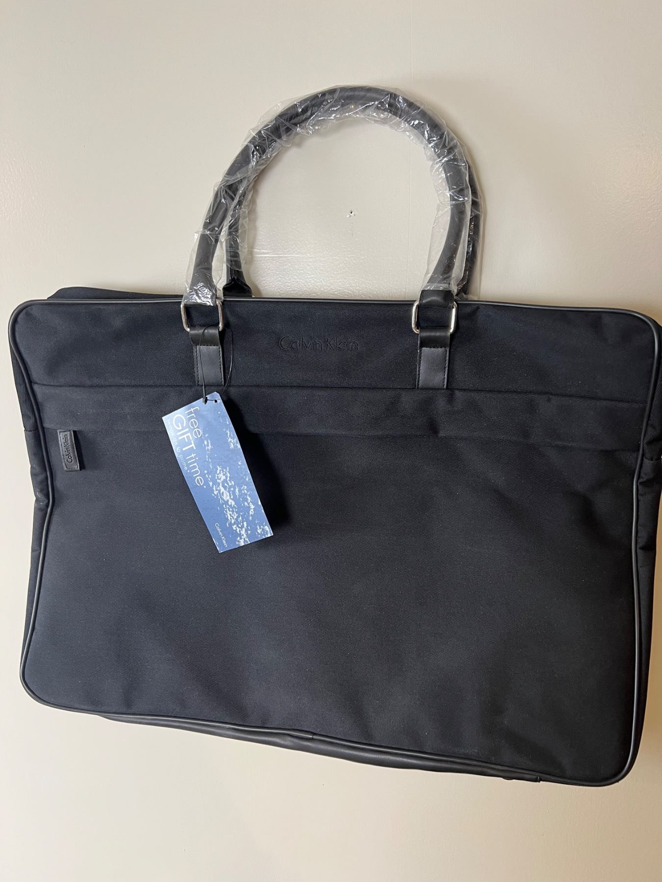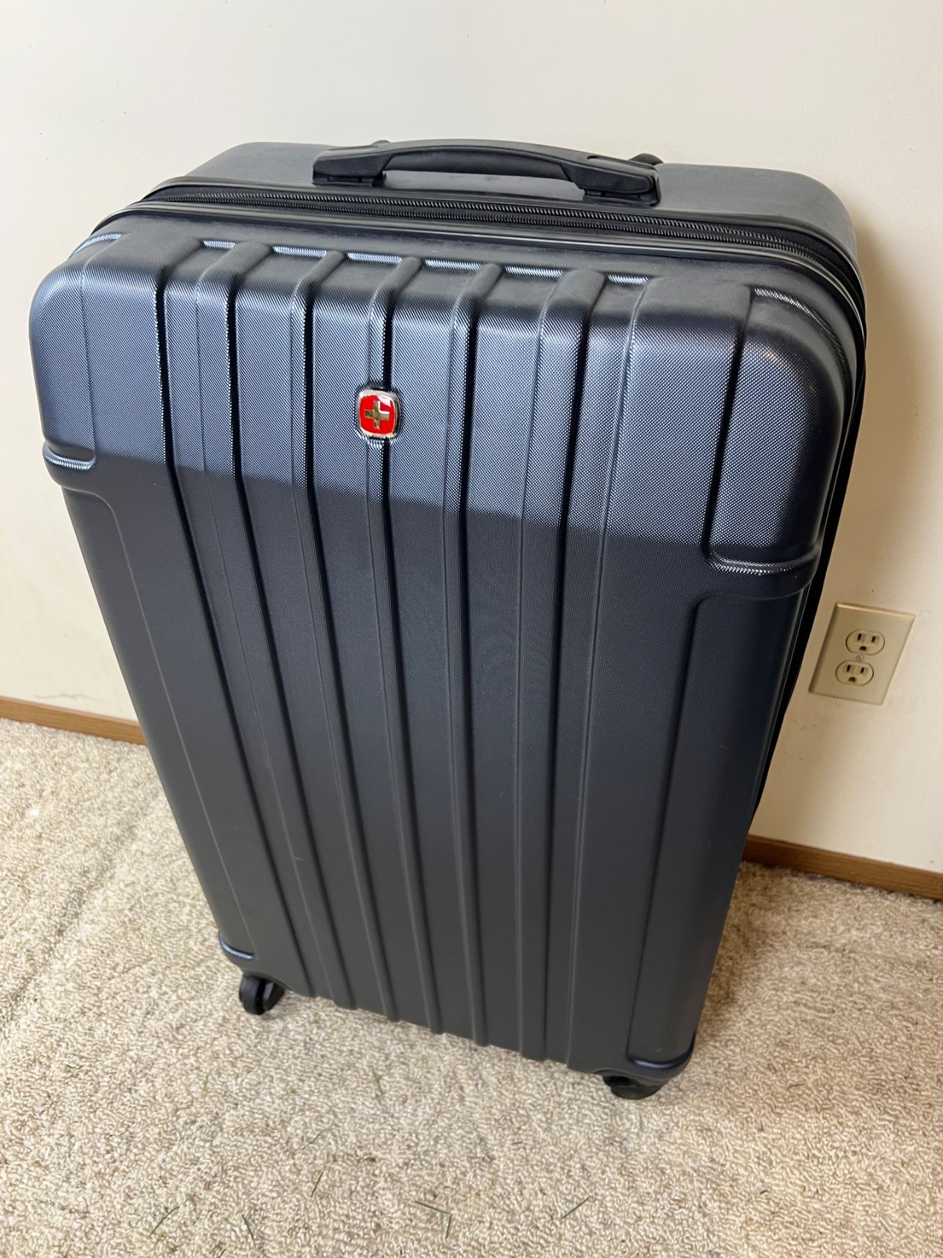 Includes a Swiss Gear Suit Case (30"H x 19"W x 12"D), Calvin Klein tote bag