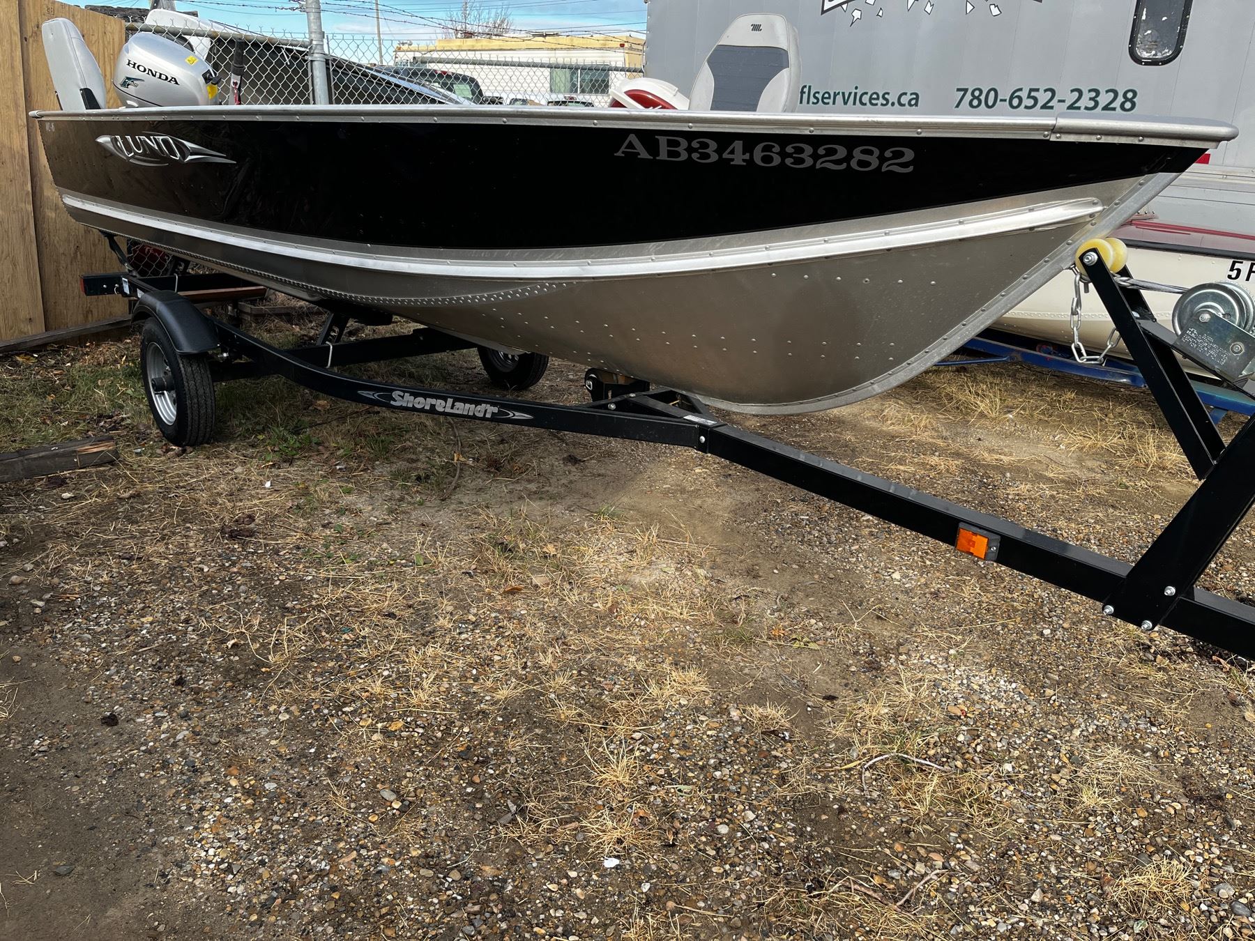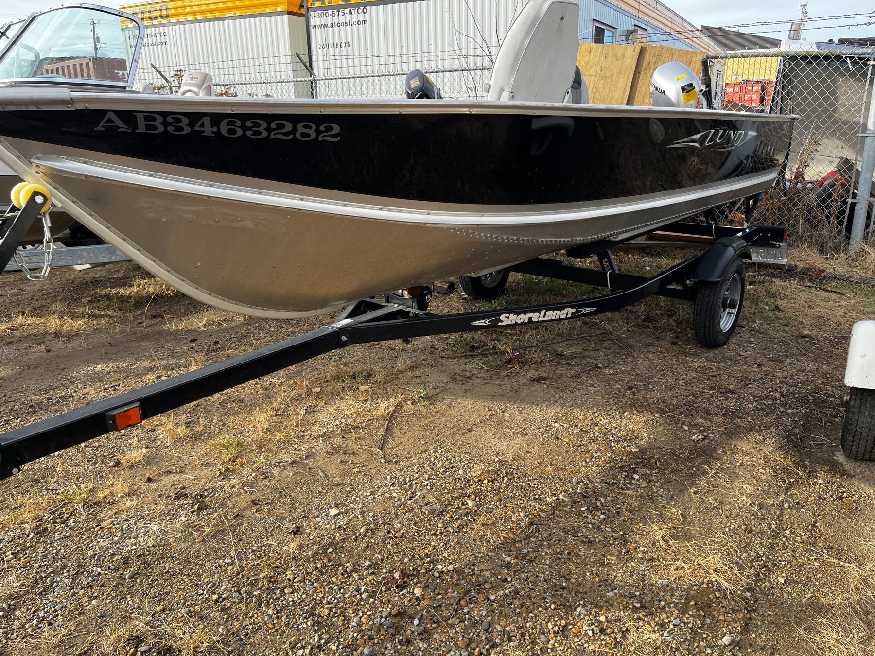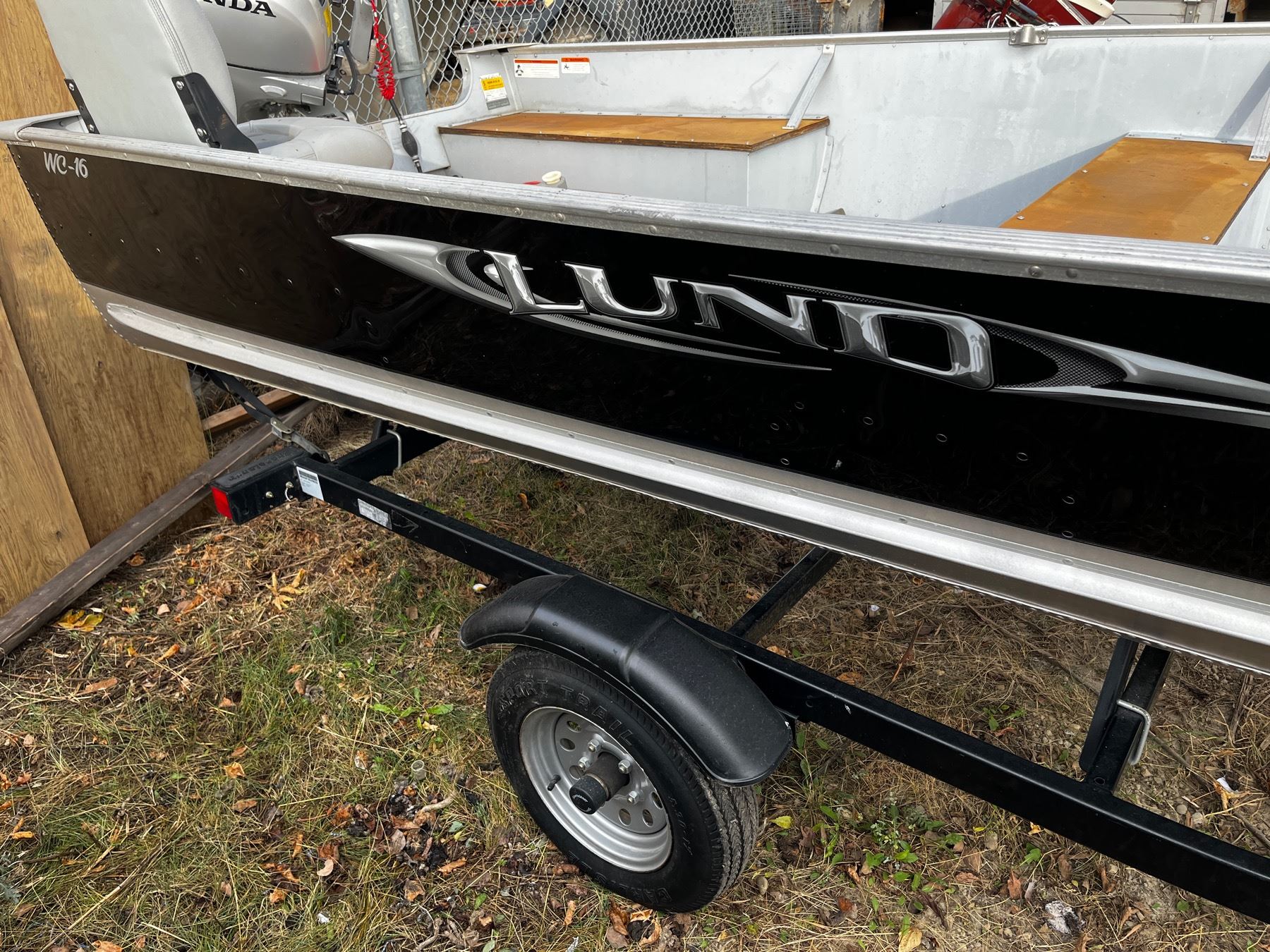 Lund WC 16 with Honda Four Stroke Motor - US-LBBEP598B010 - BF20D : 15kW, BF15D: 11kW and 2012 Shore Land'R Boat Trailer SLB 12/14 - trailer requires a 2" ball
