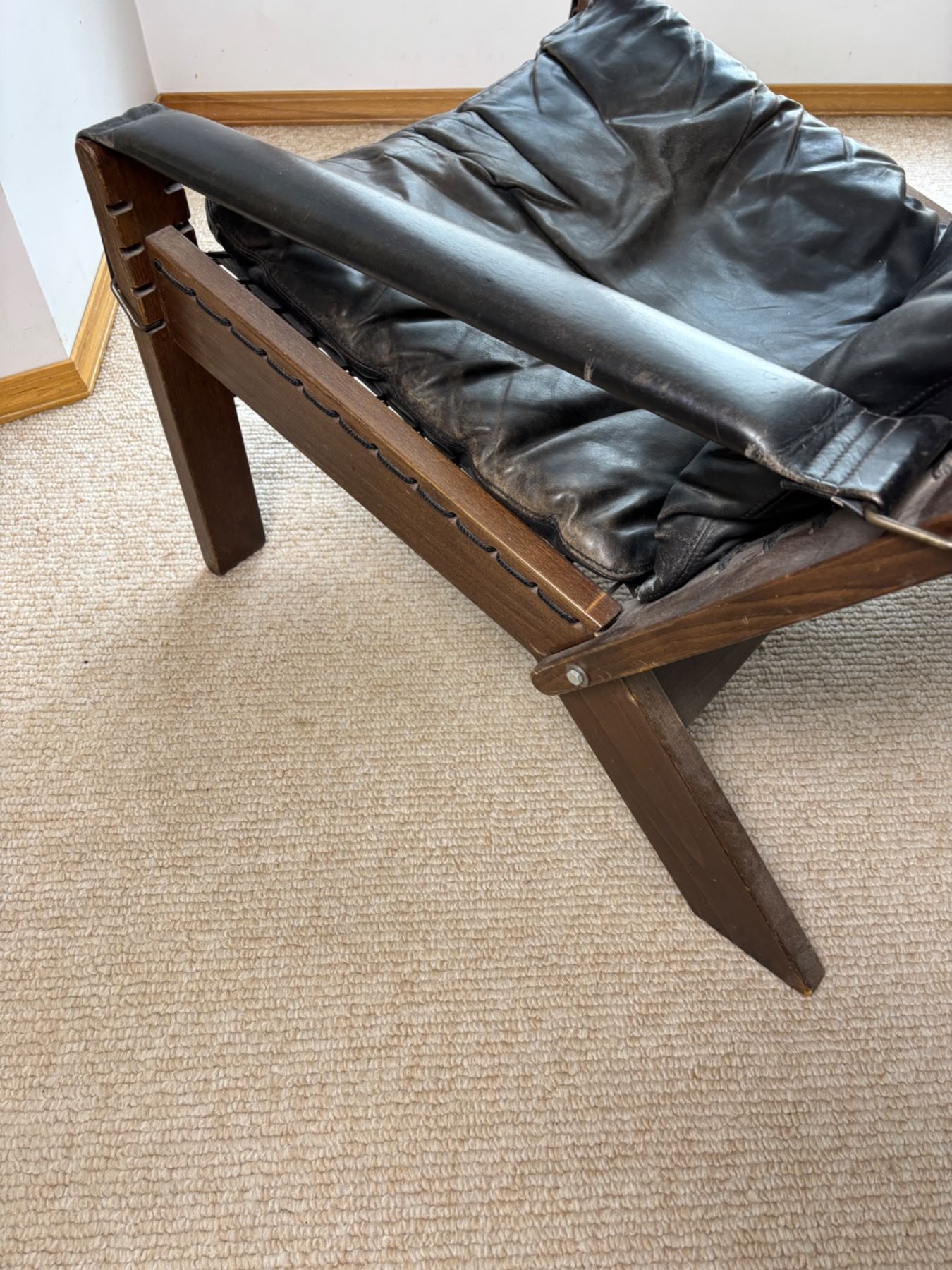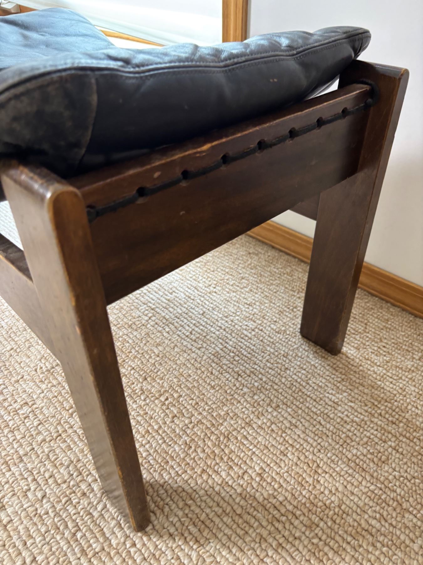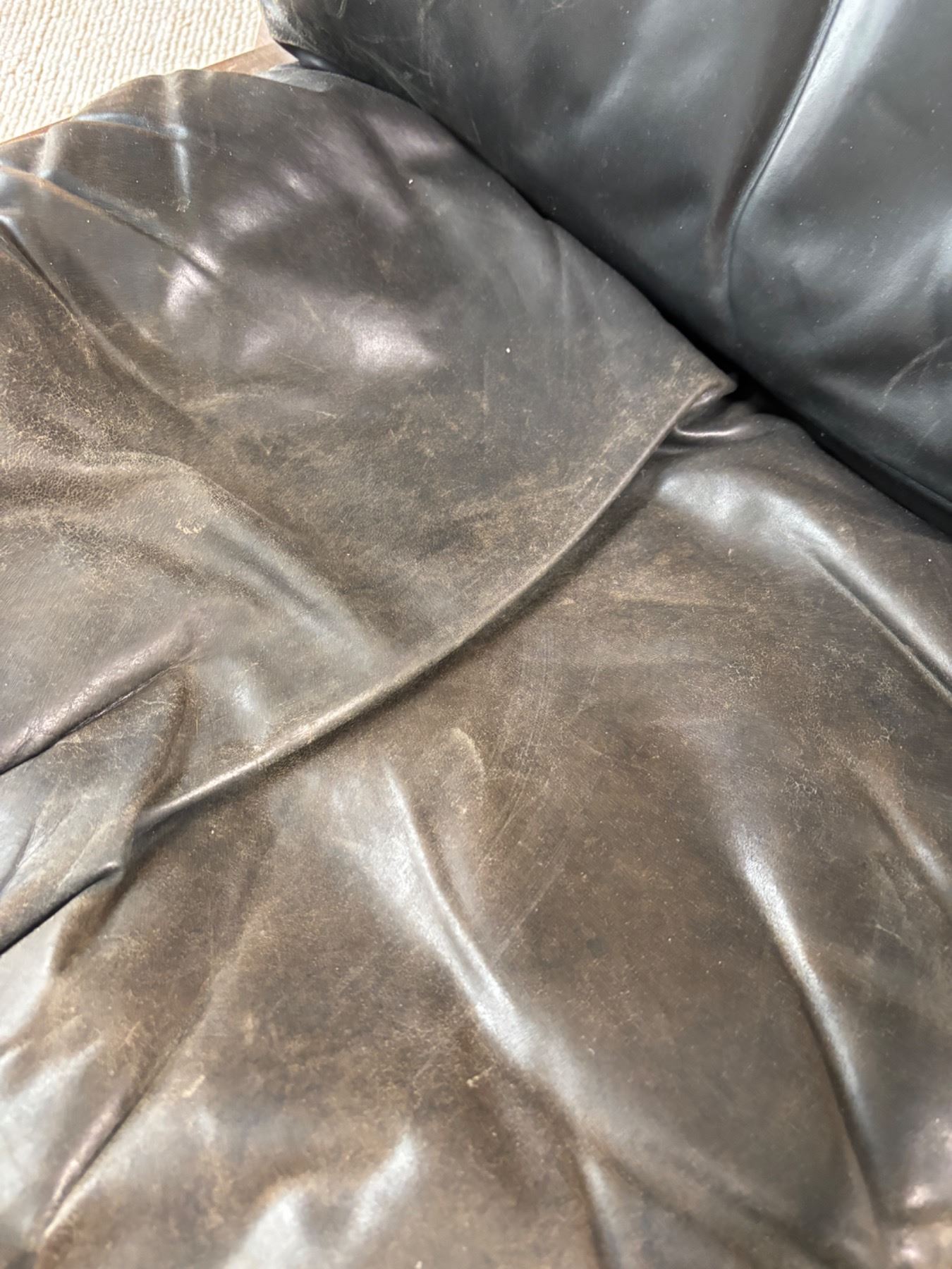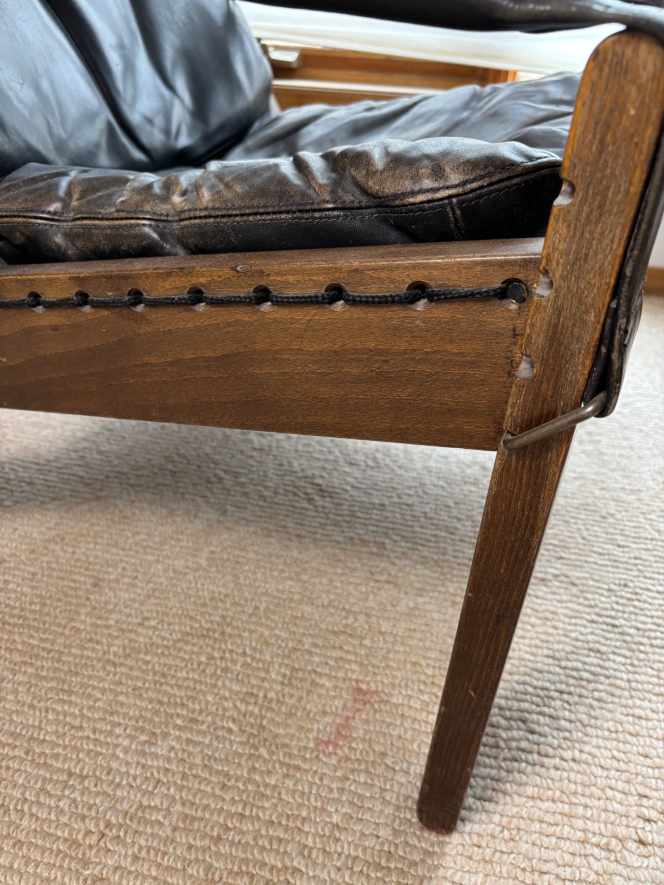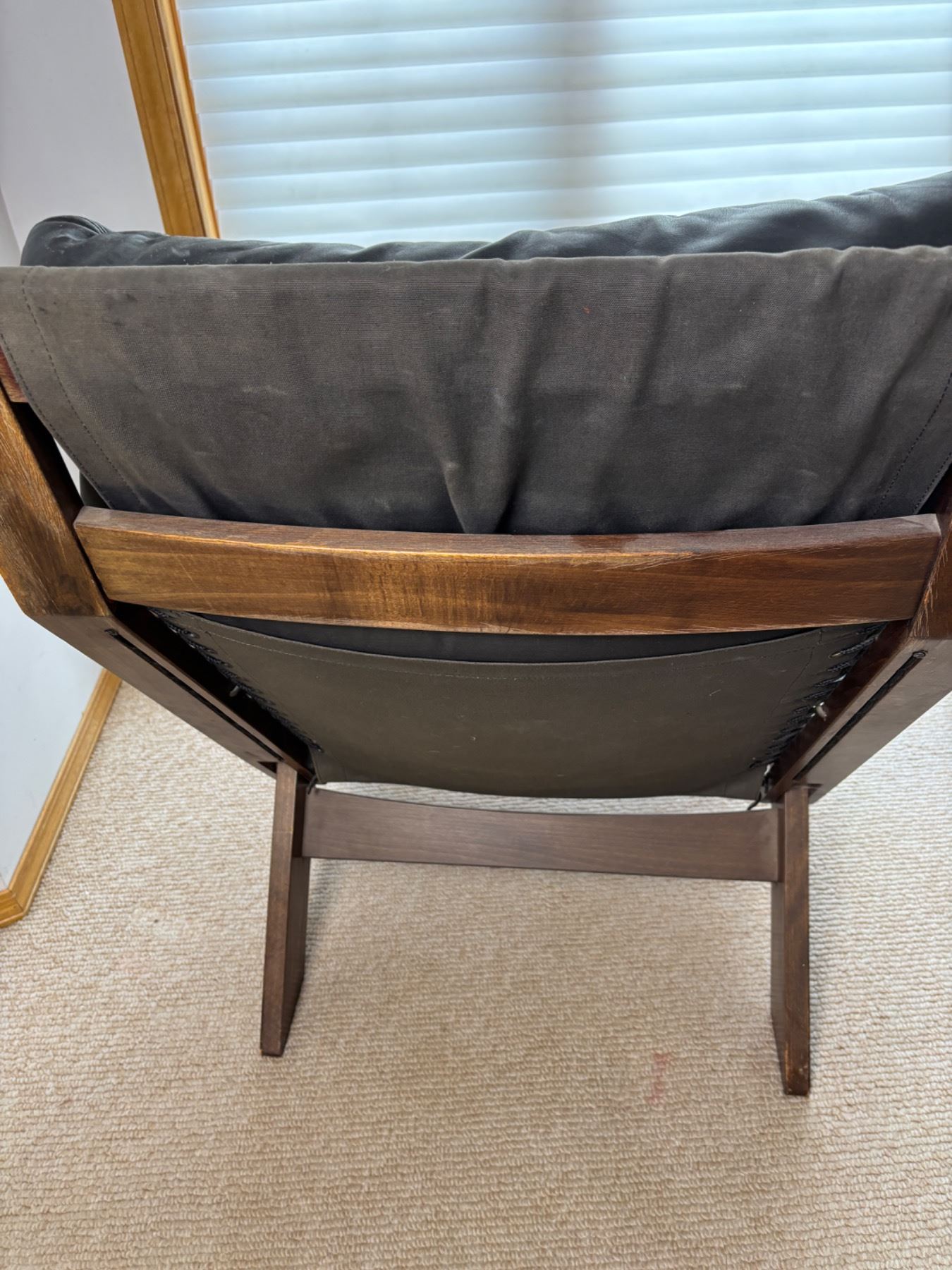The upholstery has some scratches and wear, Arms on the chair are adjustable,