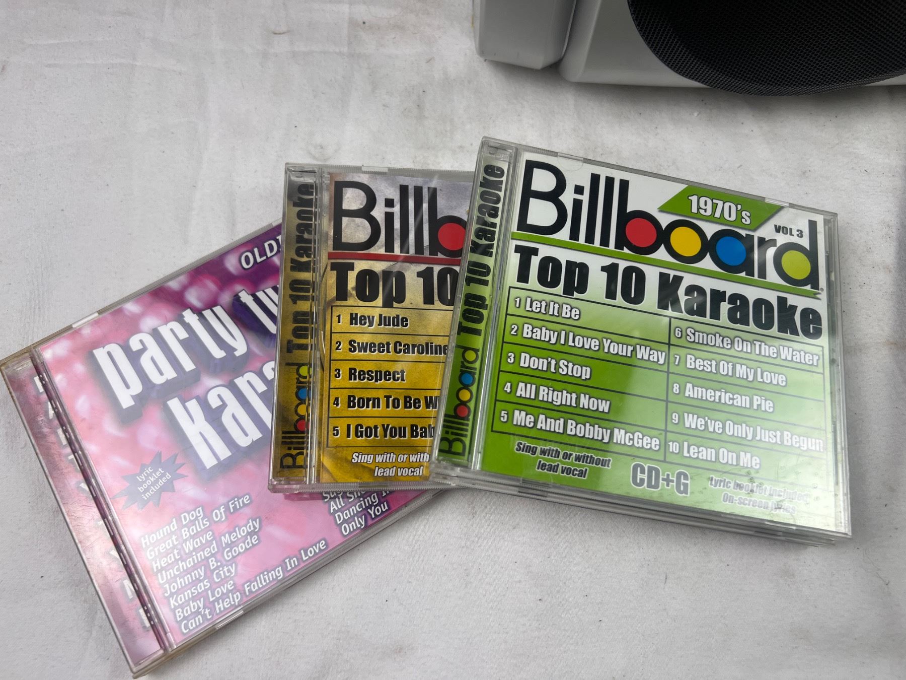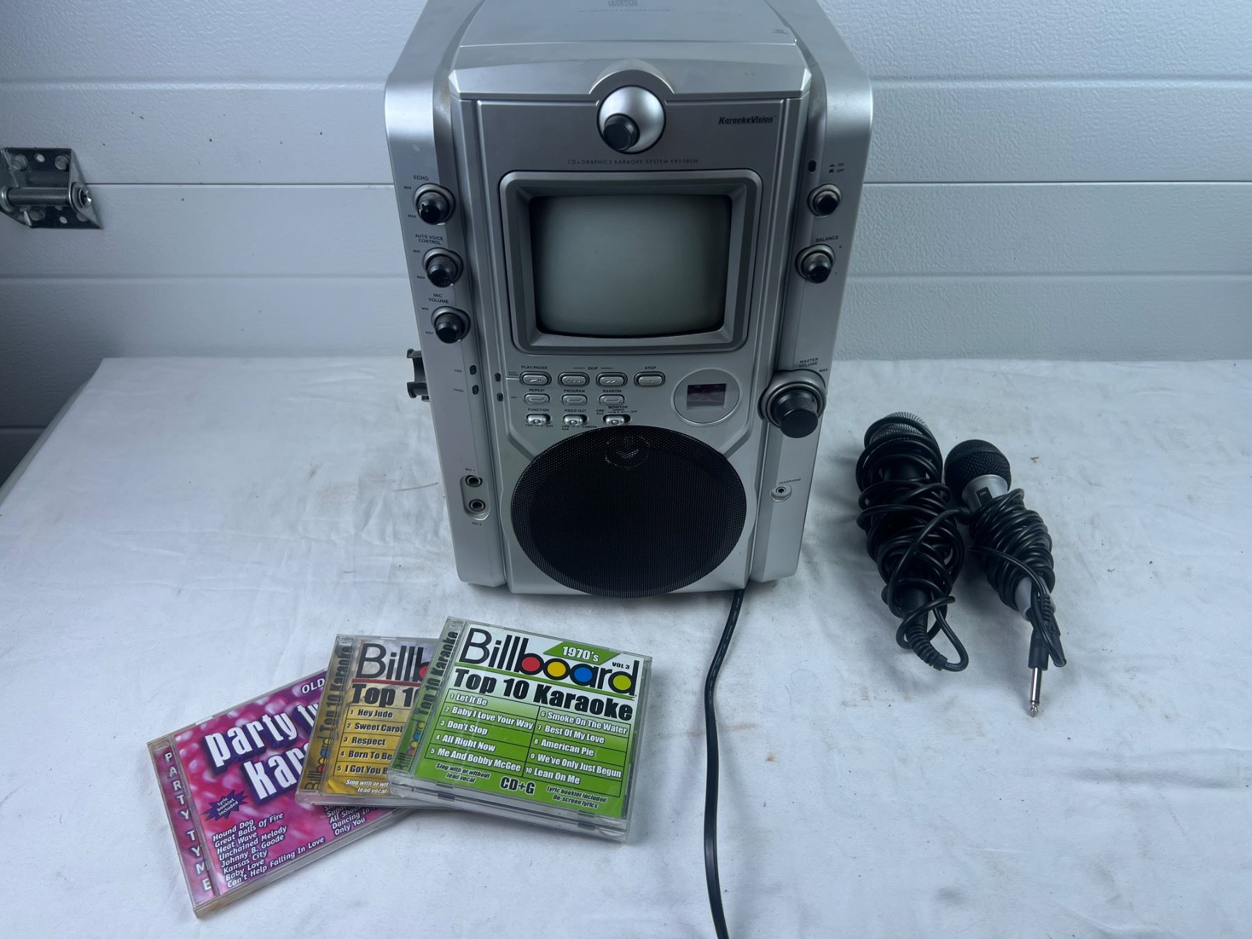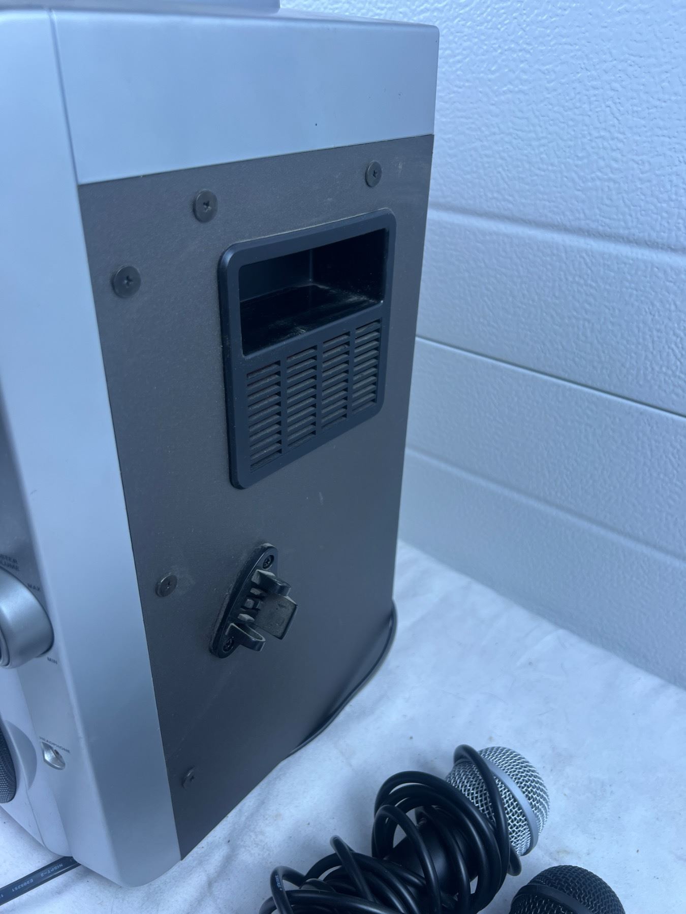 Includes two microphones (not tested), CD+ Graphics Karaoke System KR5580M (turns on)