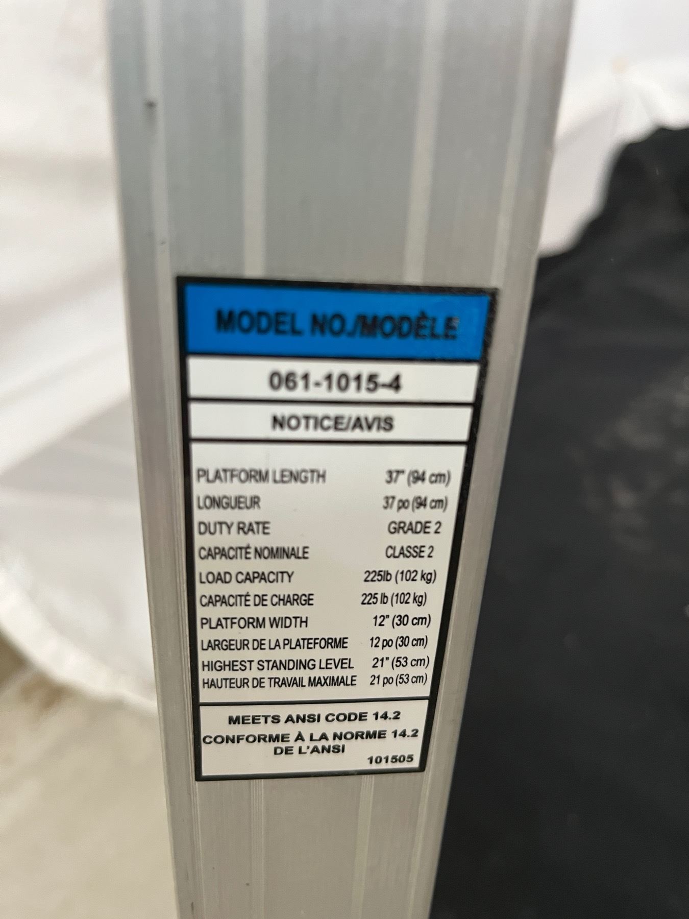 Platform length 37" - width 12" - height 21" tall - load capacity 225lbs