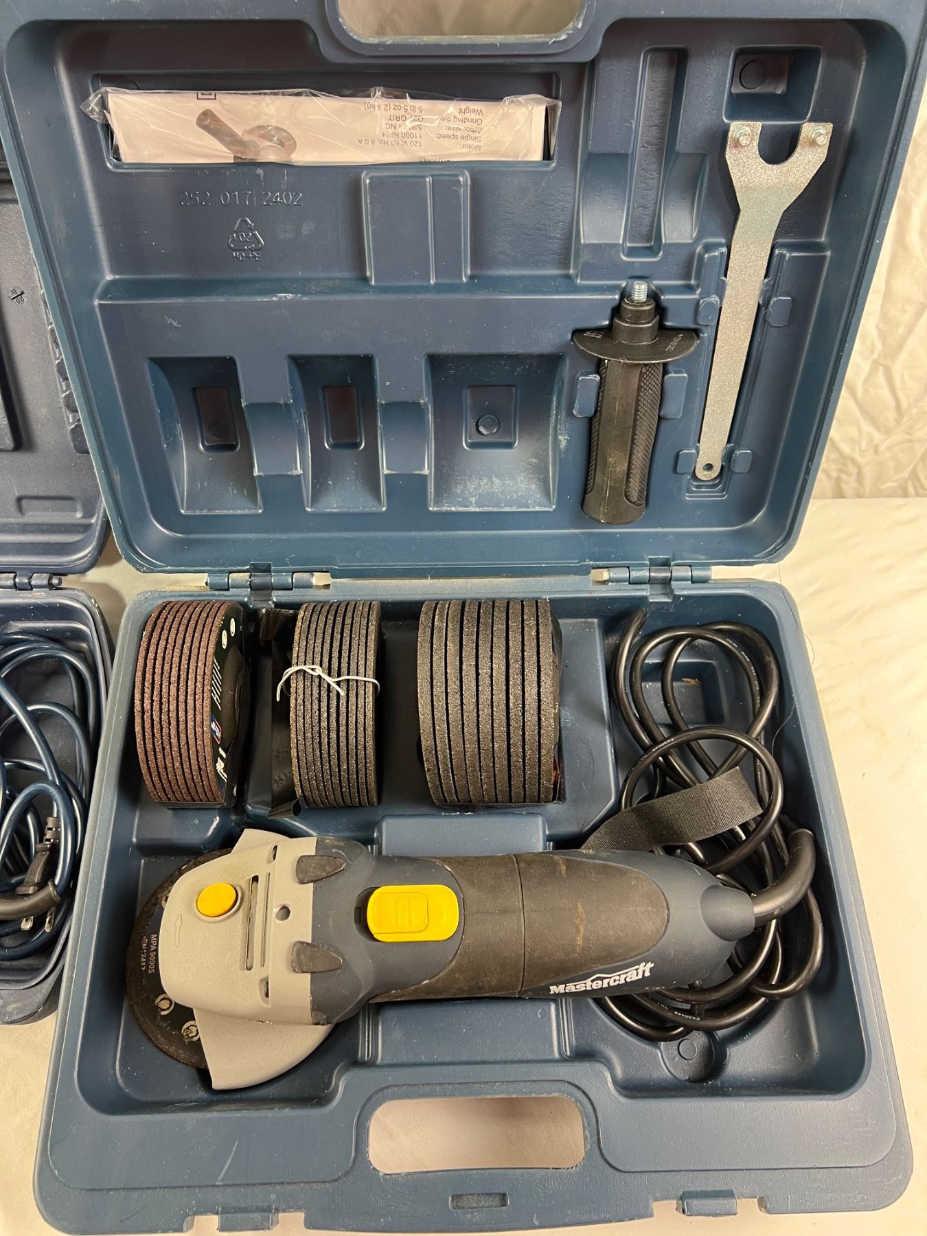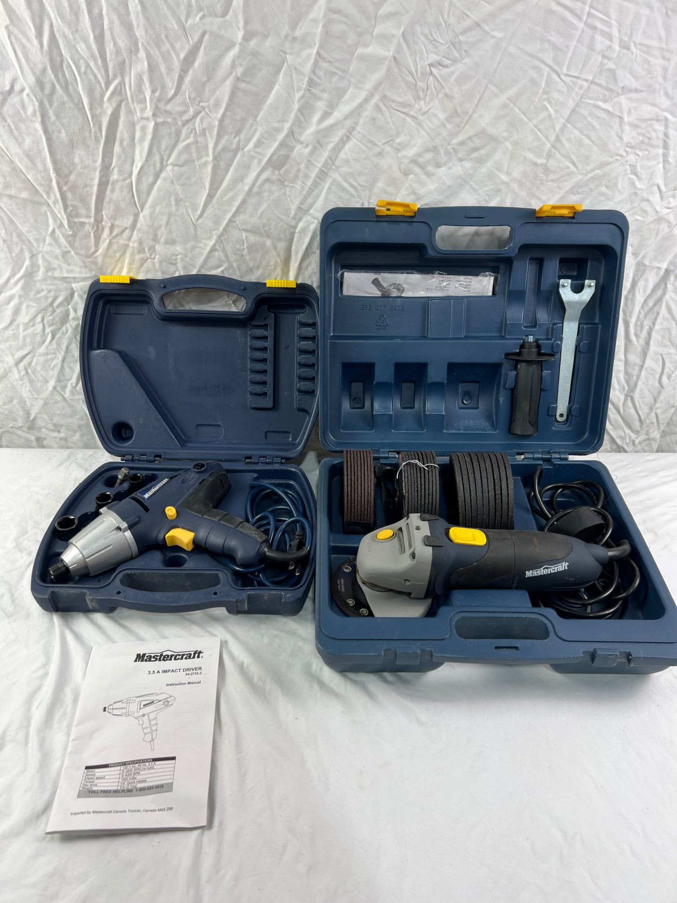 Working impact driver and working angle grinder. Grinder has some grease leakage from front of housing.