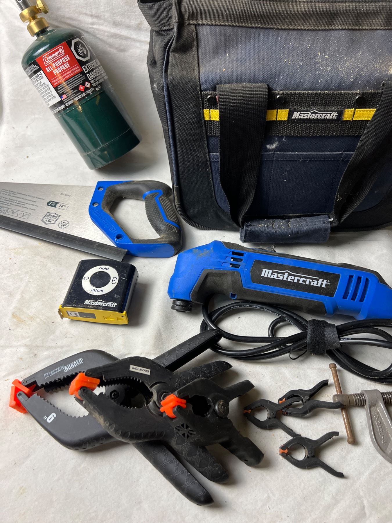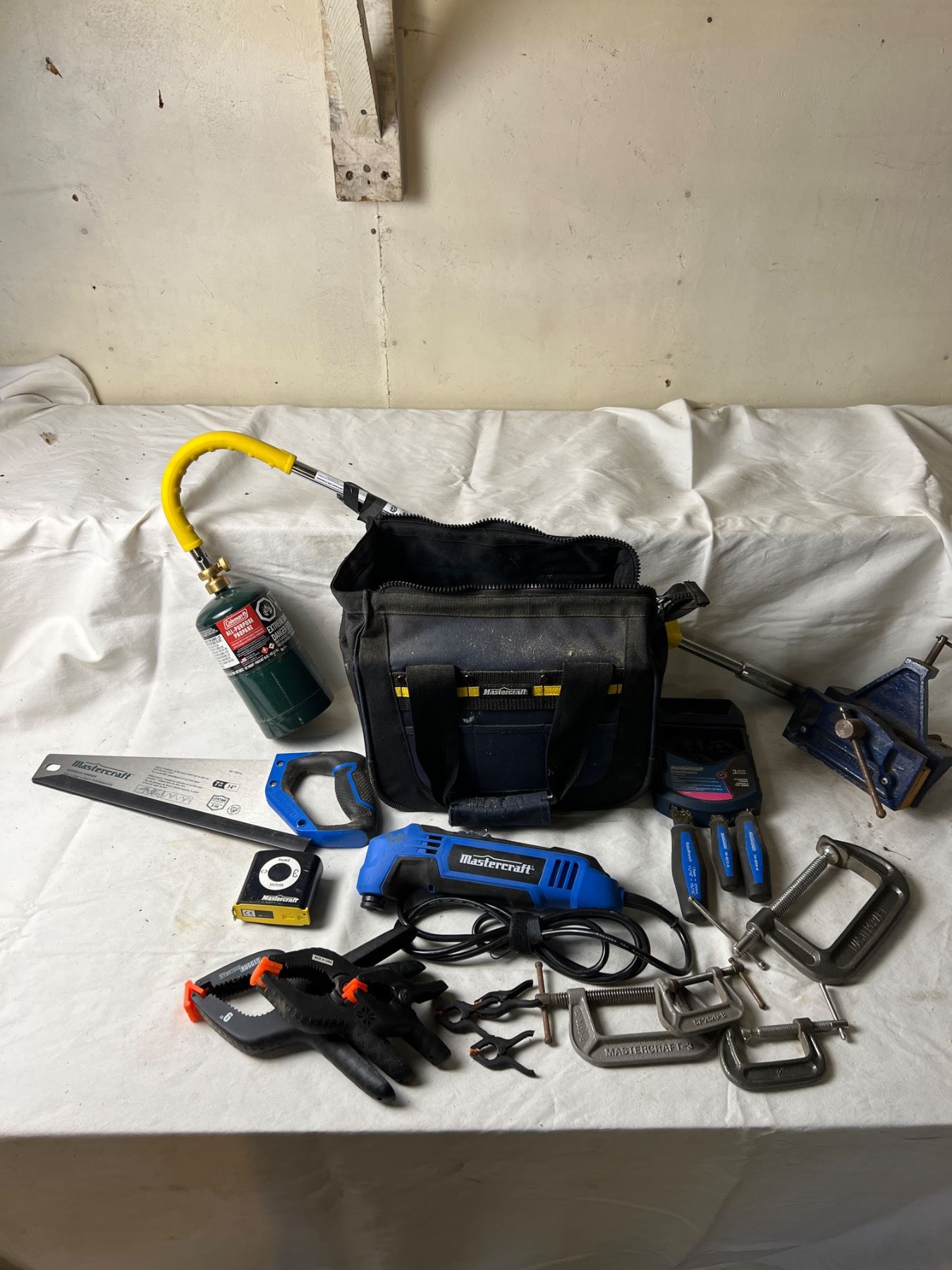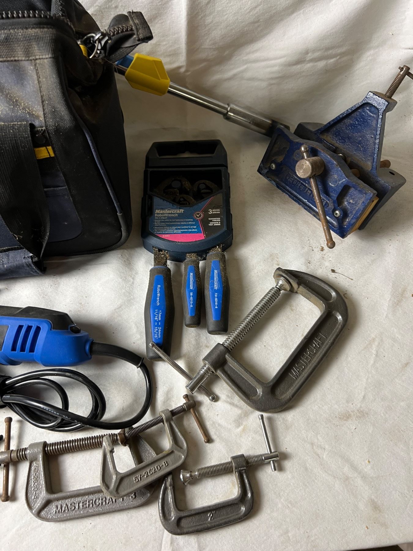 Various master craft branded pieces, all metal clamps are master craft branded. Grinder powers on.