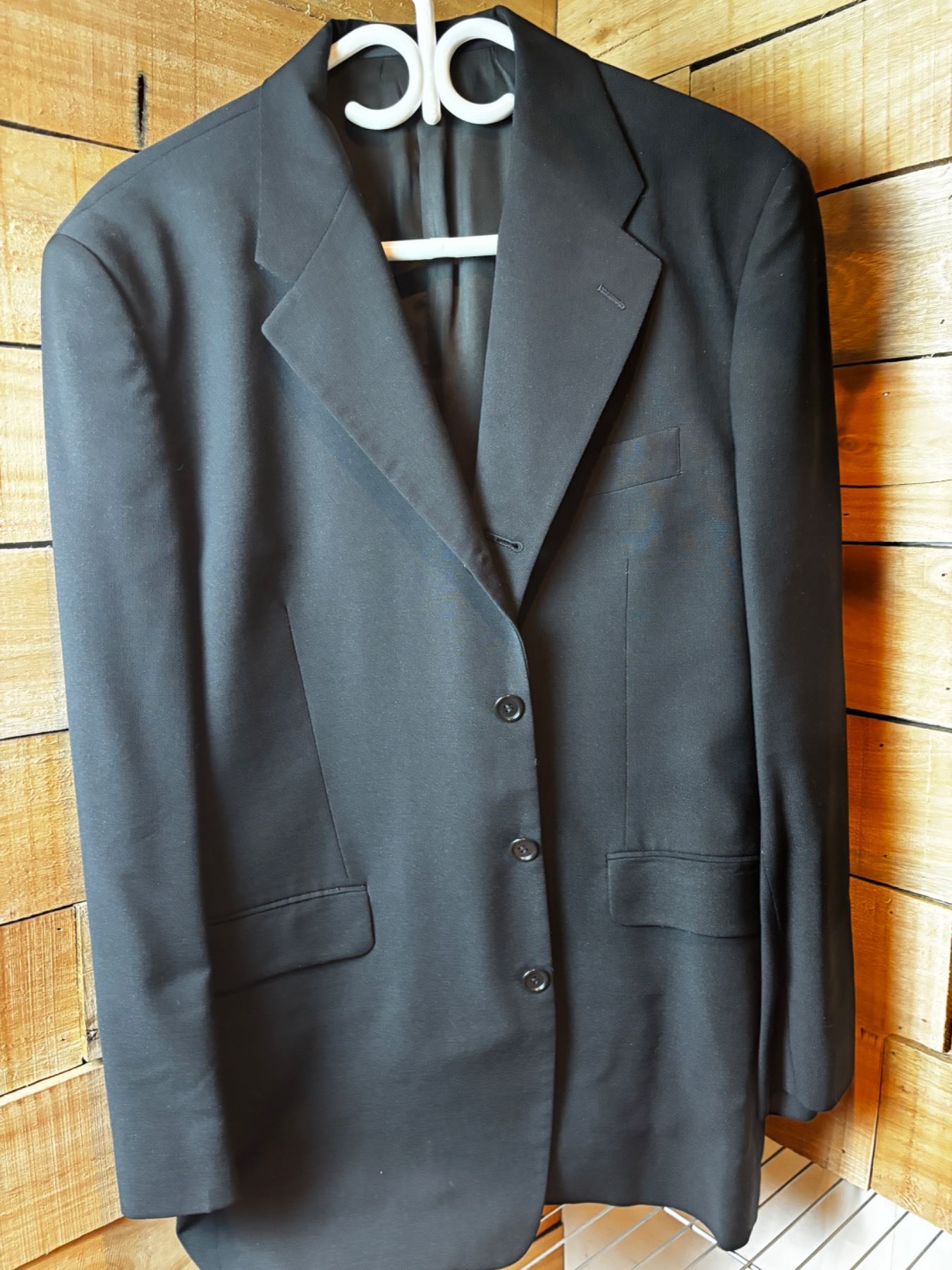 Includes Kenneth Cole unknown size, Le Chateau Lg, Kenneth Cole 38R, some wear, one liner pocket has a ripped seam