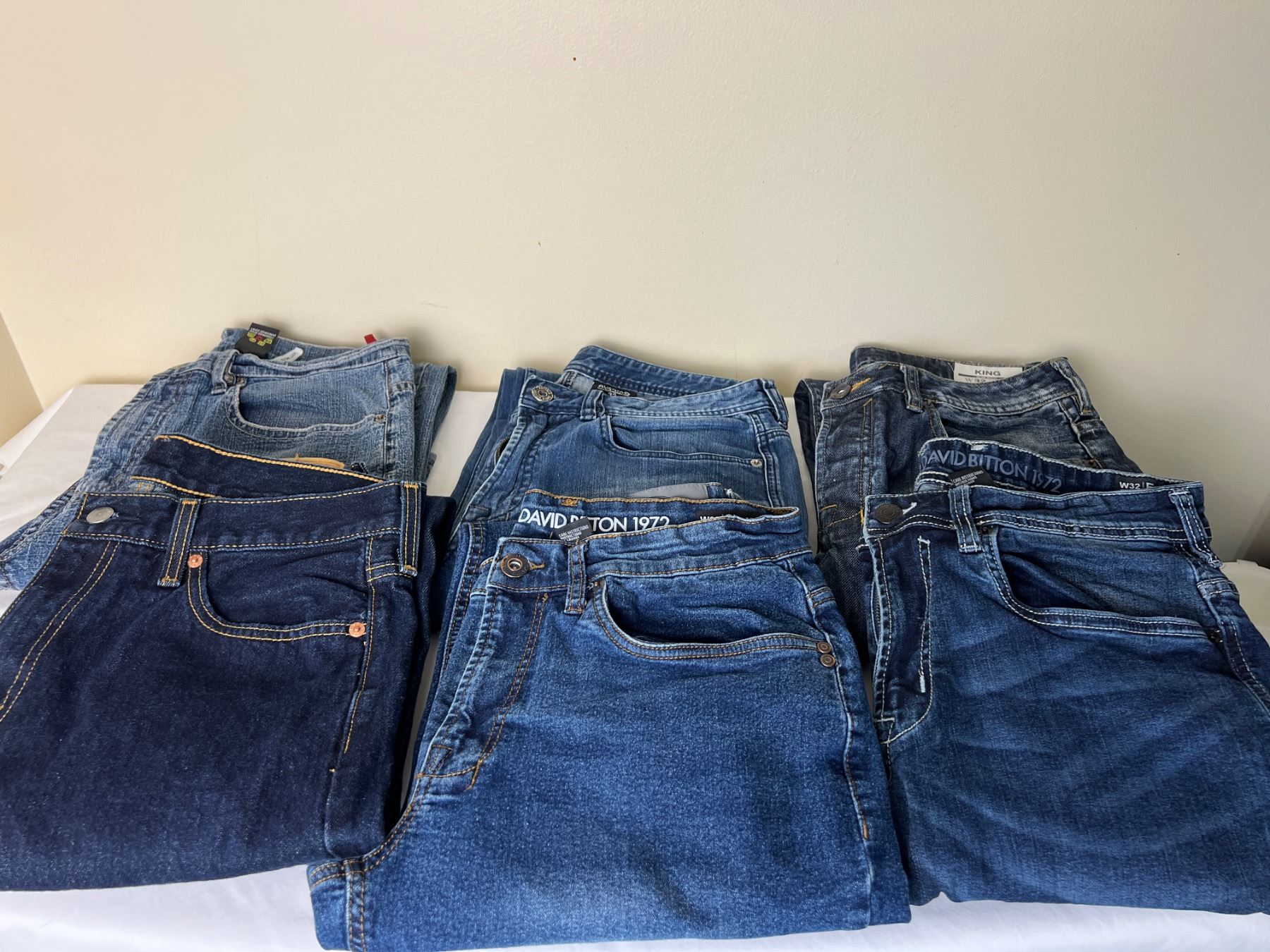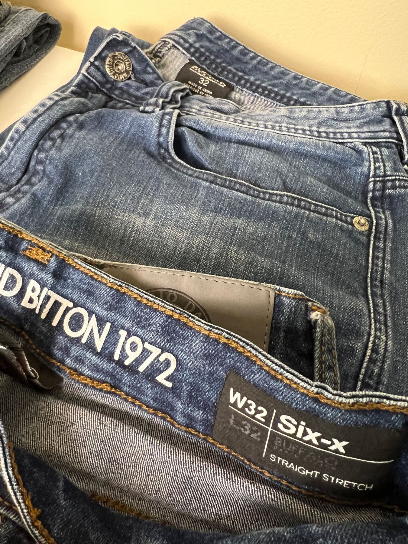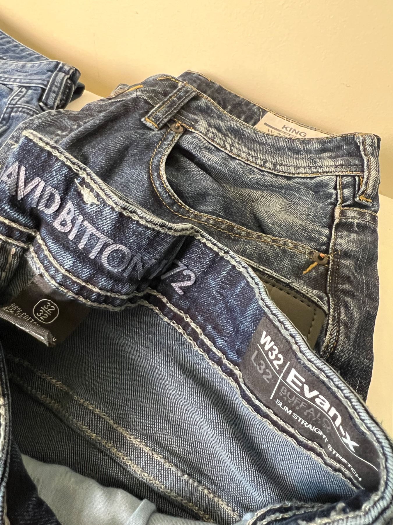 Includes, Levi Strauss 32x32, Buffalo 32x32, and more,