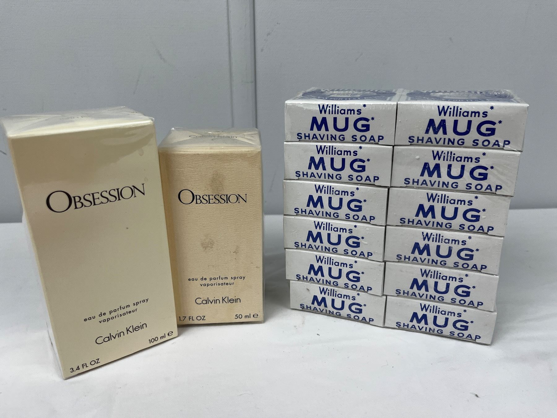 Includes, new Williams shaving soap, new Calvin Klein Obsession
