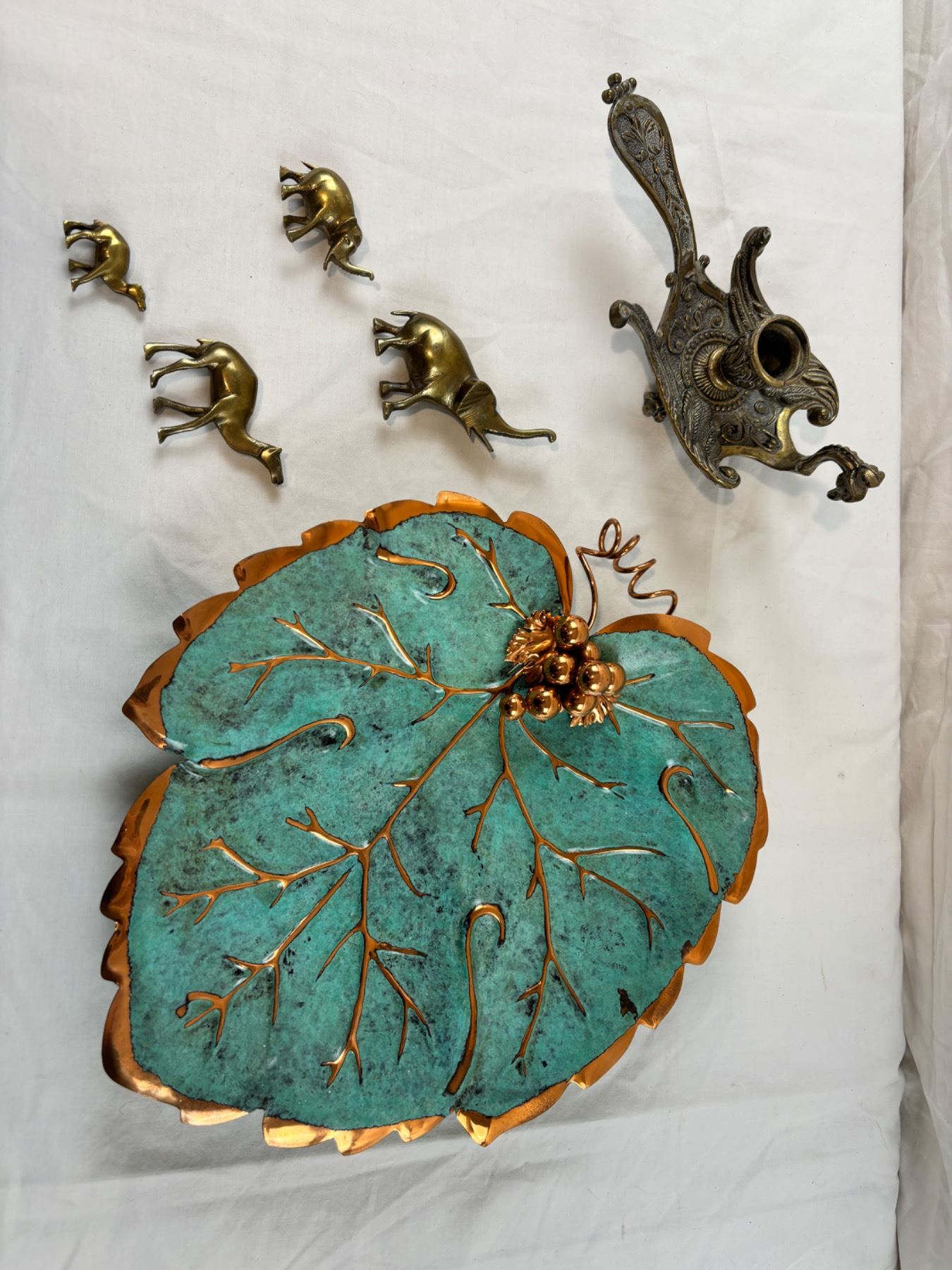 Includes, Brass animal figures, copper like decorative tray, etc.