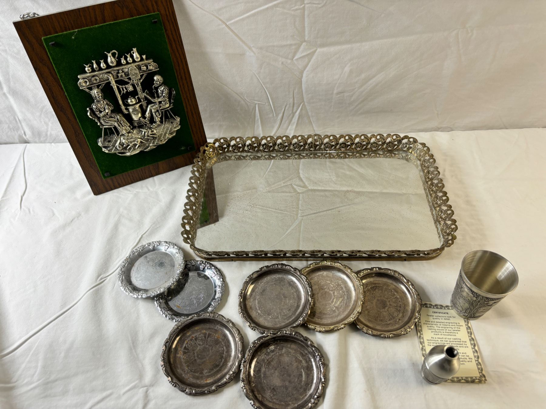 Includes, 6 Silver Plate E.P on Steel Coasters, Pewter