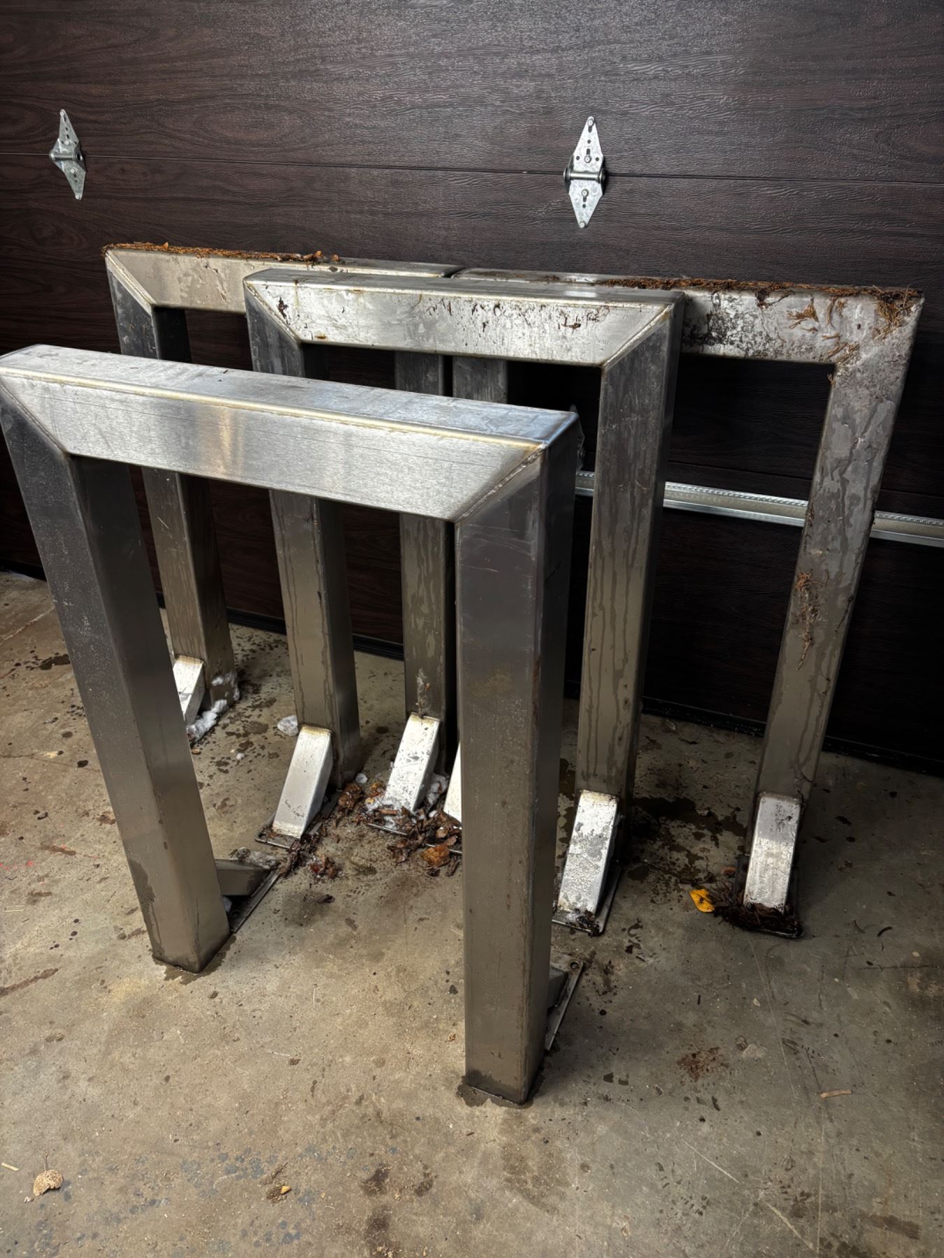28"L x 11"W x 42"H, 4 total, the metal legs are hollow