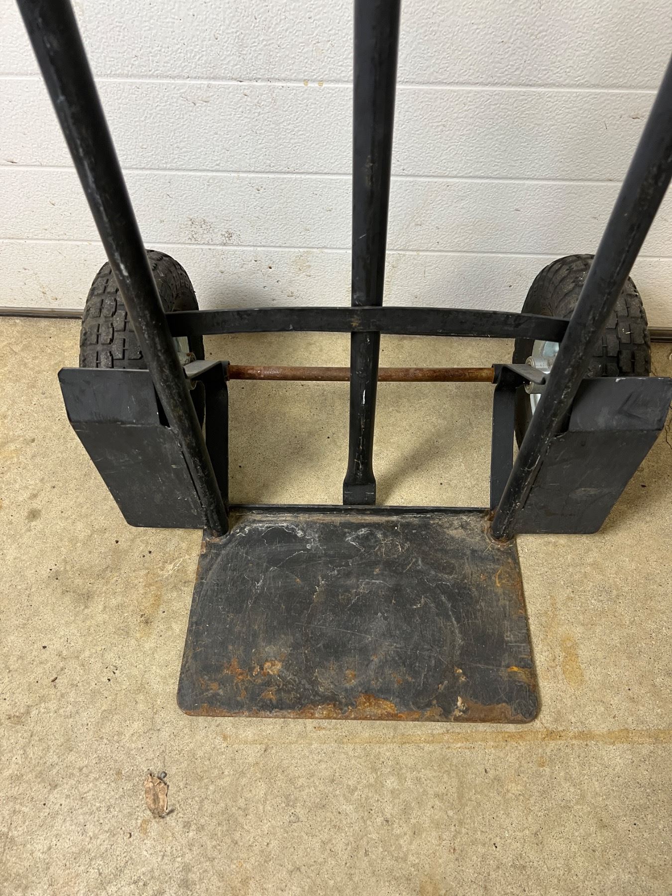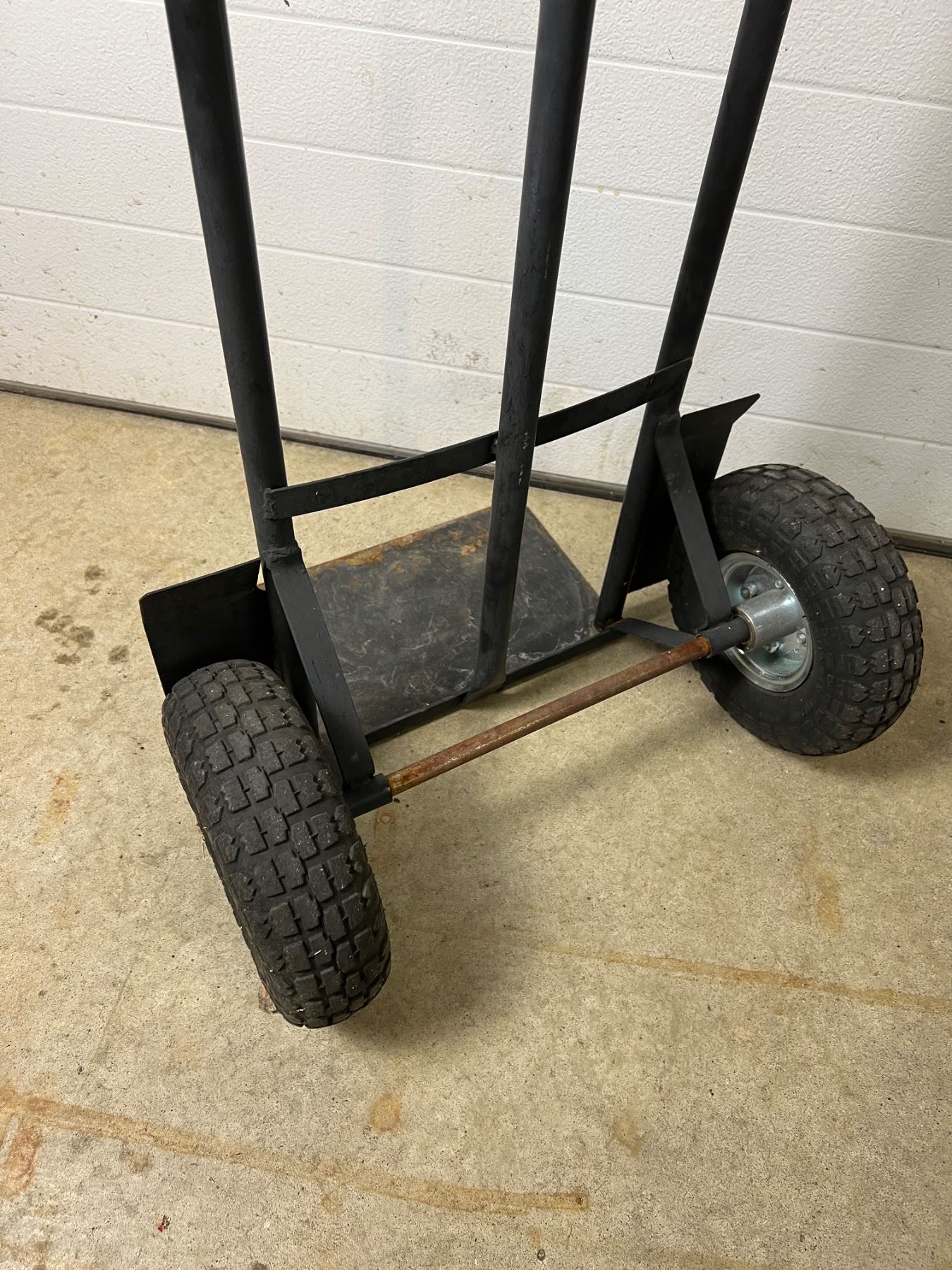 Rust and wear to base. Wheels are both low on air. Stands 52" tall.