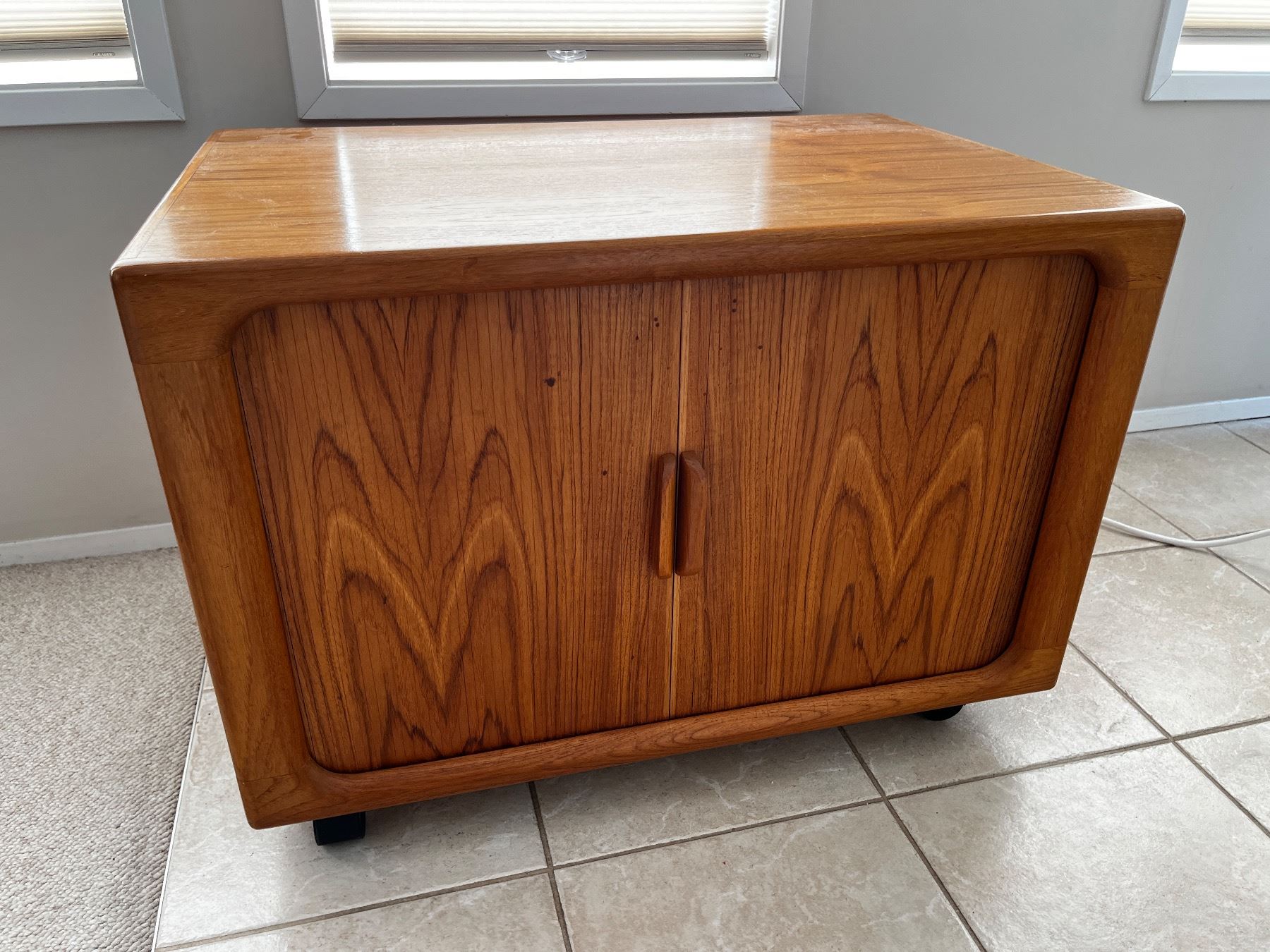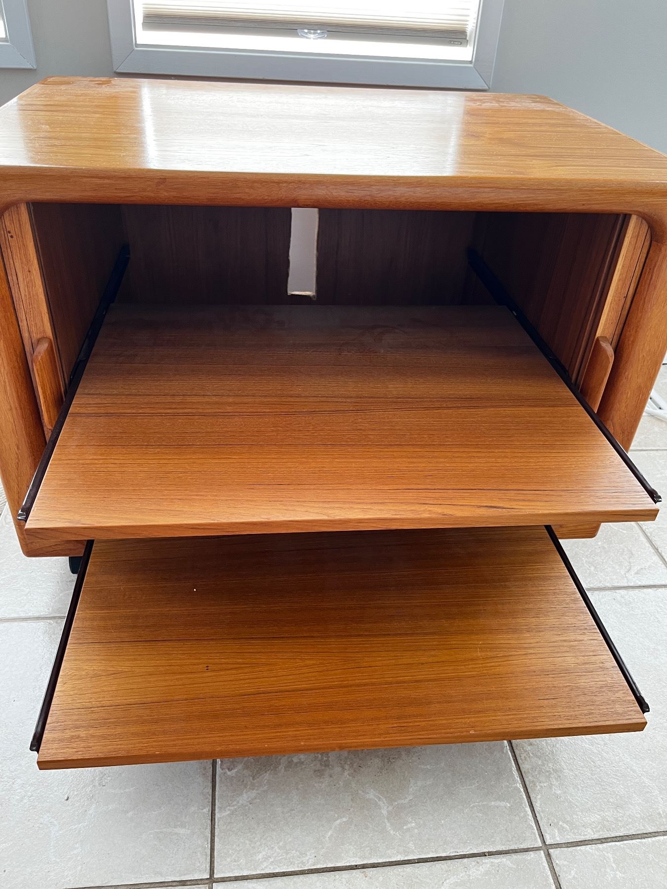 In good condition, hole has been cut on the back, slide out drawers, 32"L x 21"W x 22"H