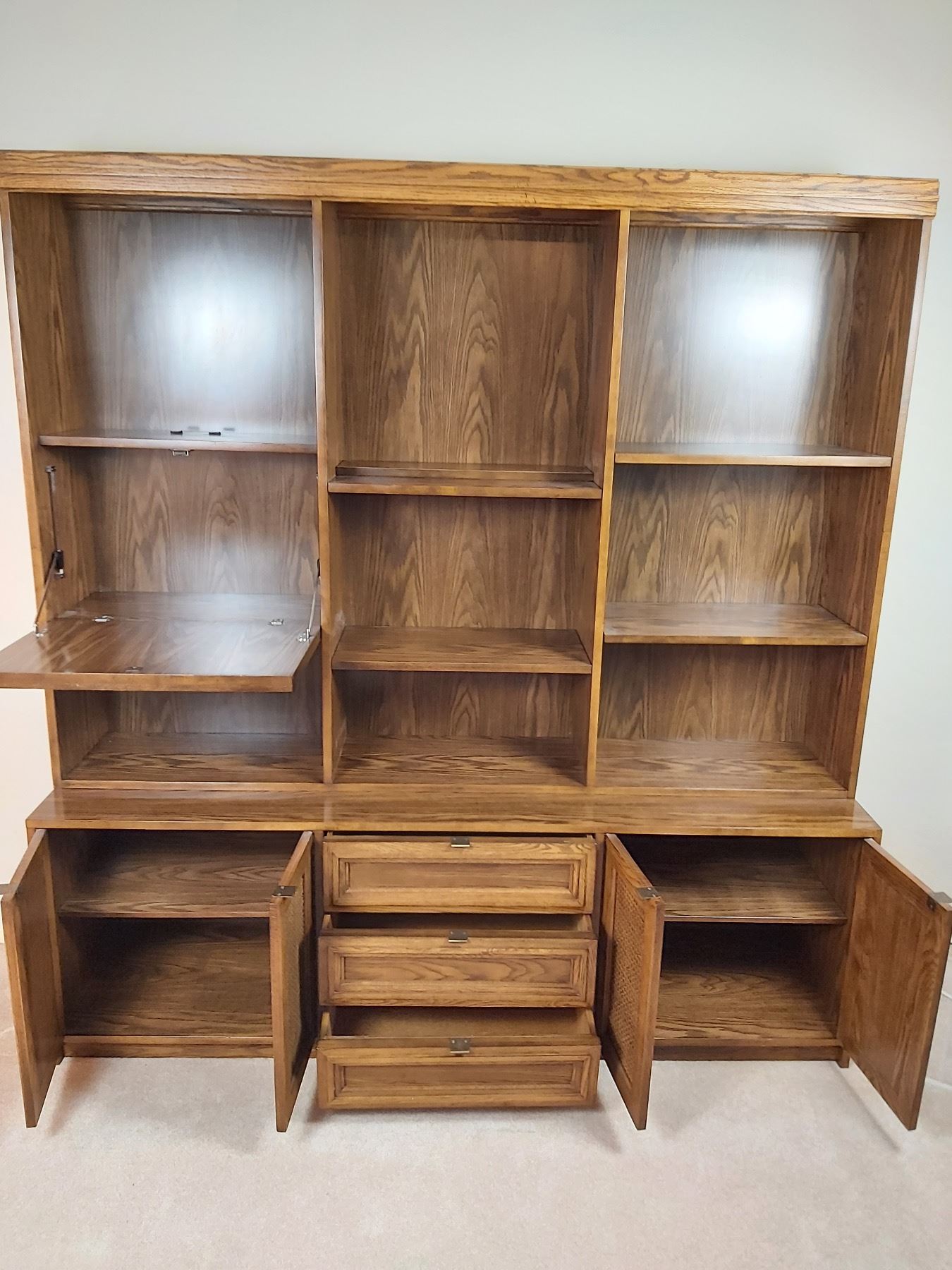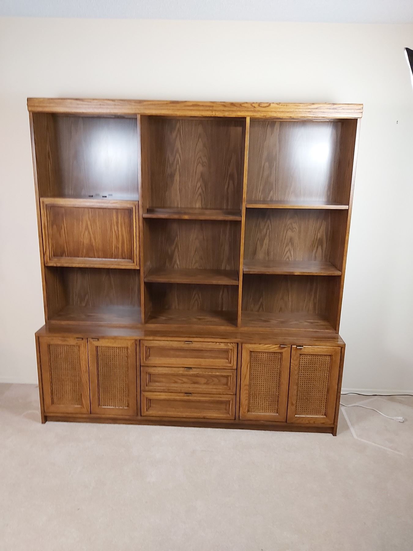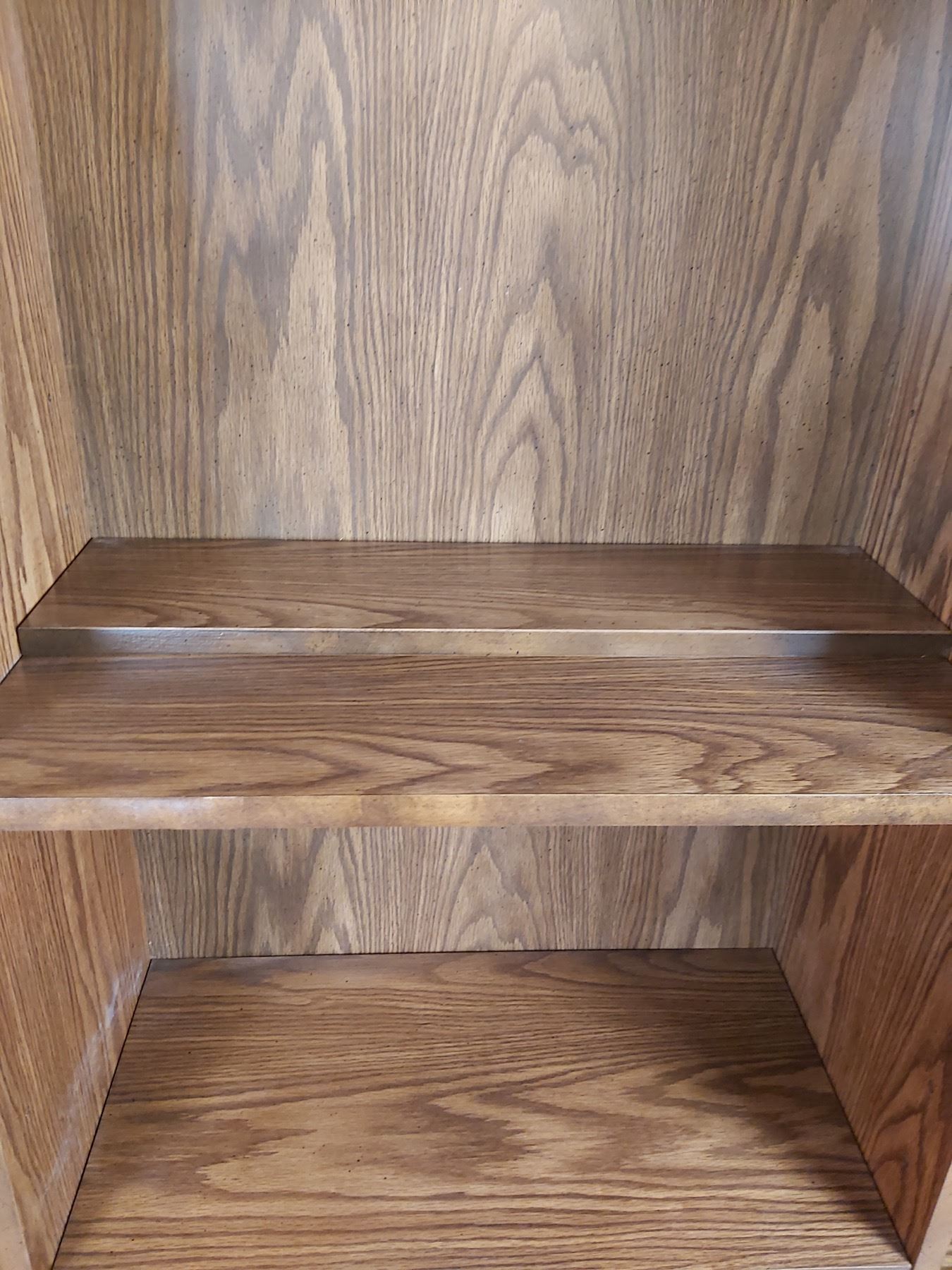 2 Pieces, Includes a spare small half shelf (needs pegs), Total height (72"L x 18"W x 76"H), Bottom(24"H) Top(52"H)