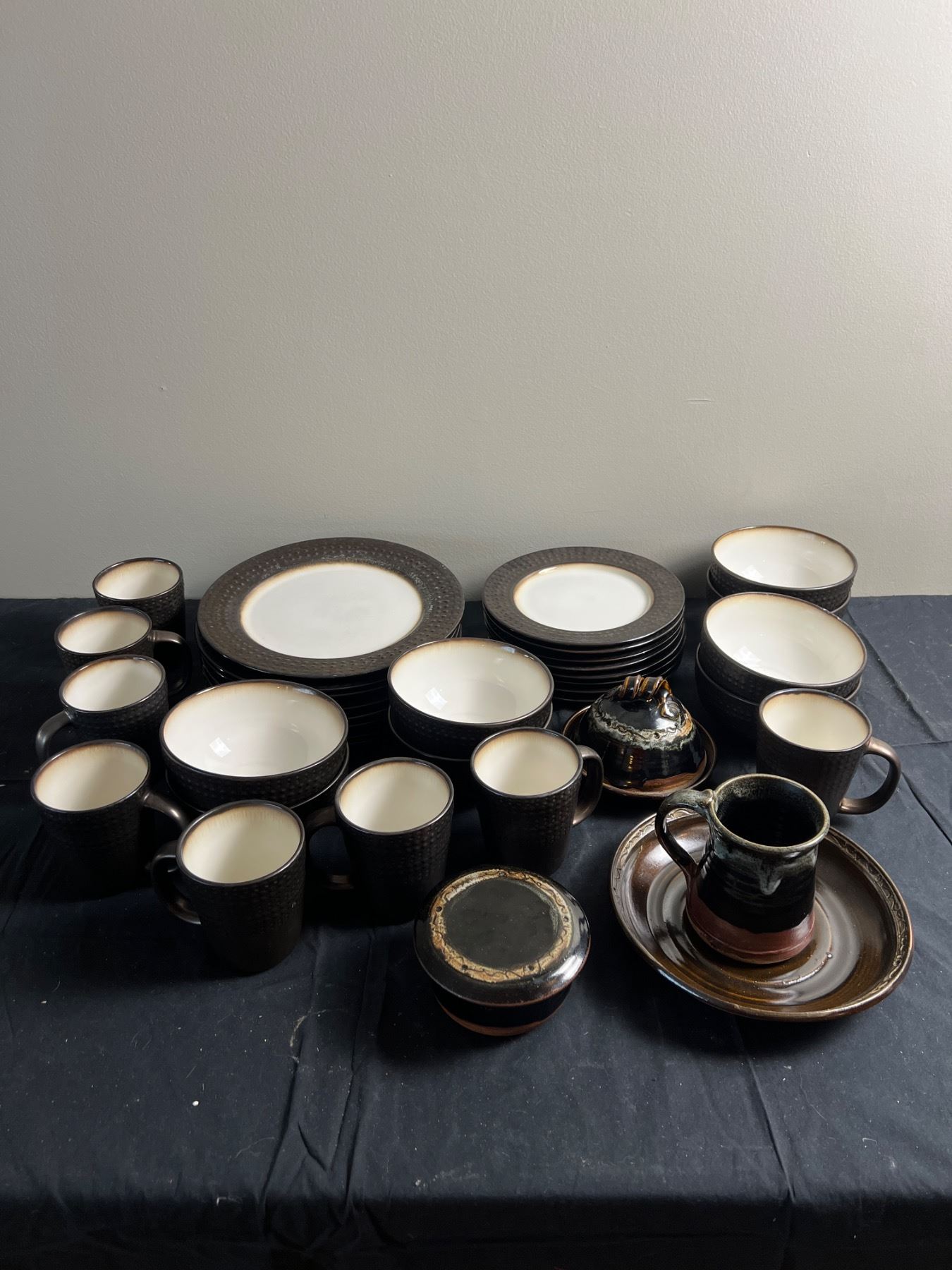 Large plates are 12" diameter. Includes 4 pieces of handmade ceramics.