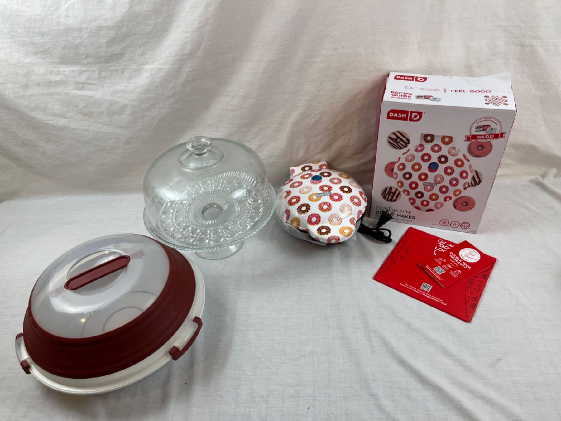 Mini Donut Maker, Glass Server with Dome & Plastic Holder