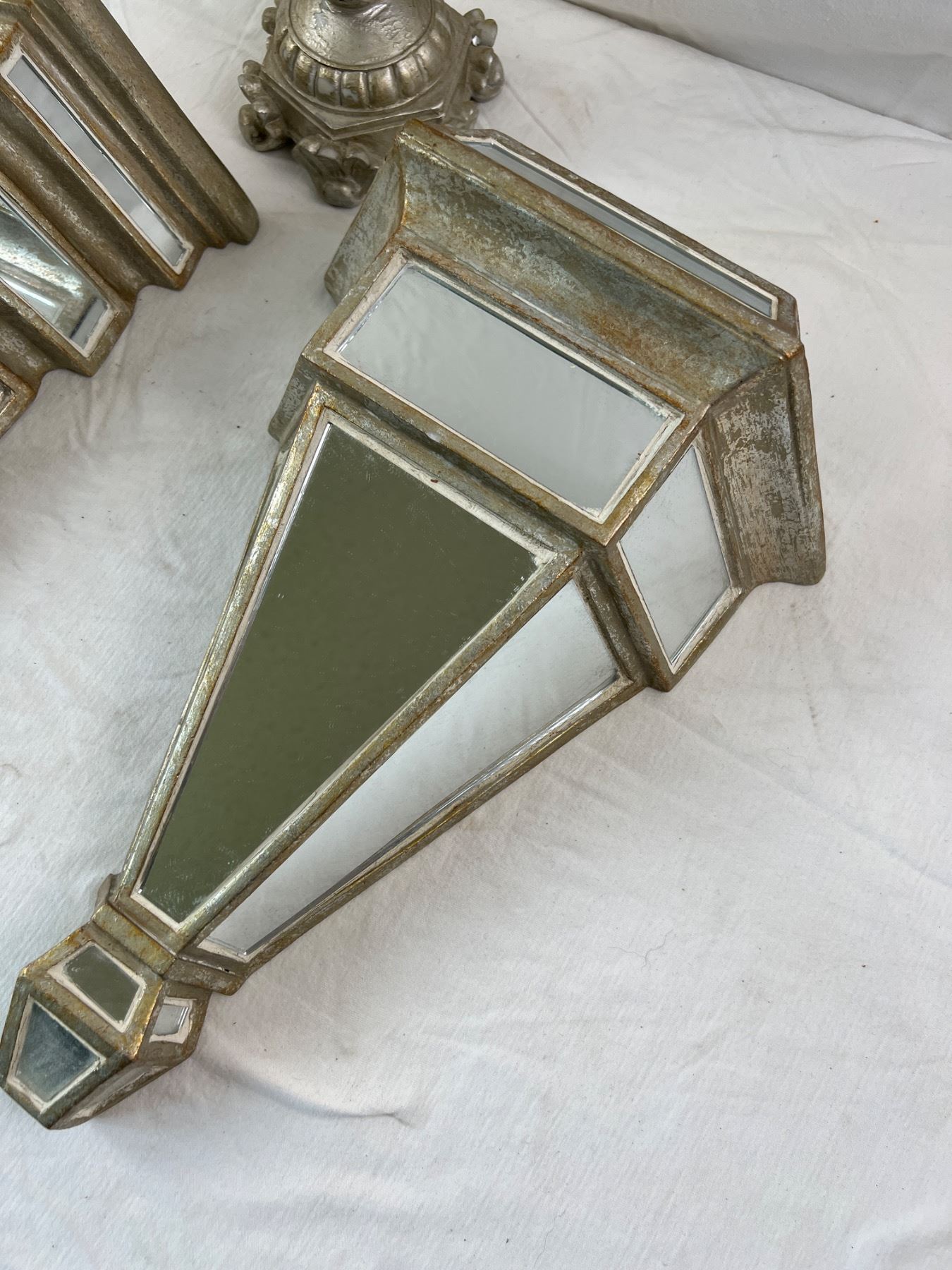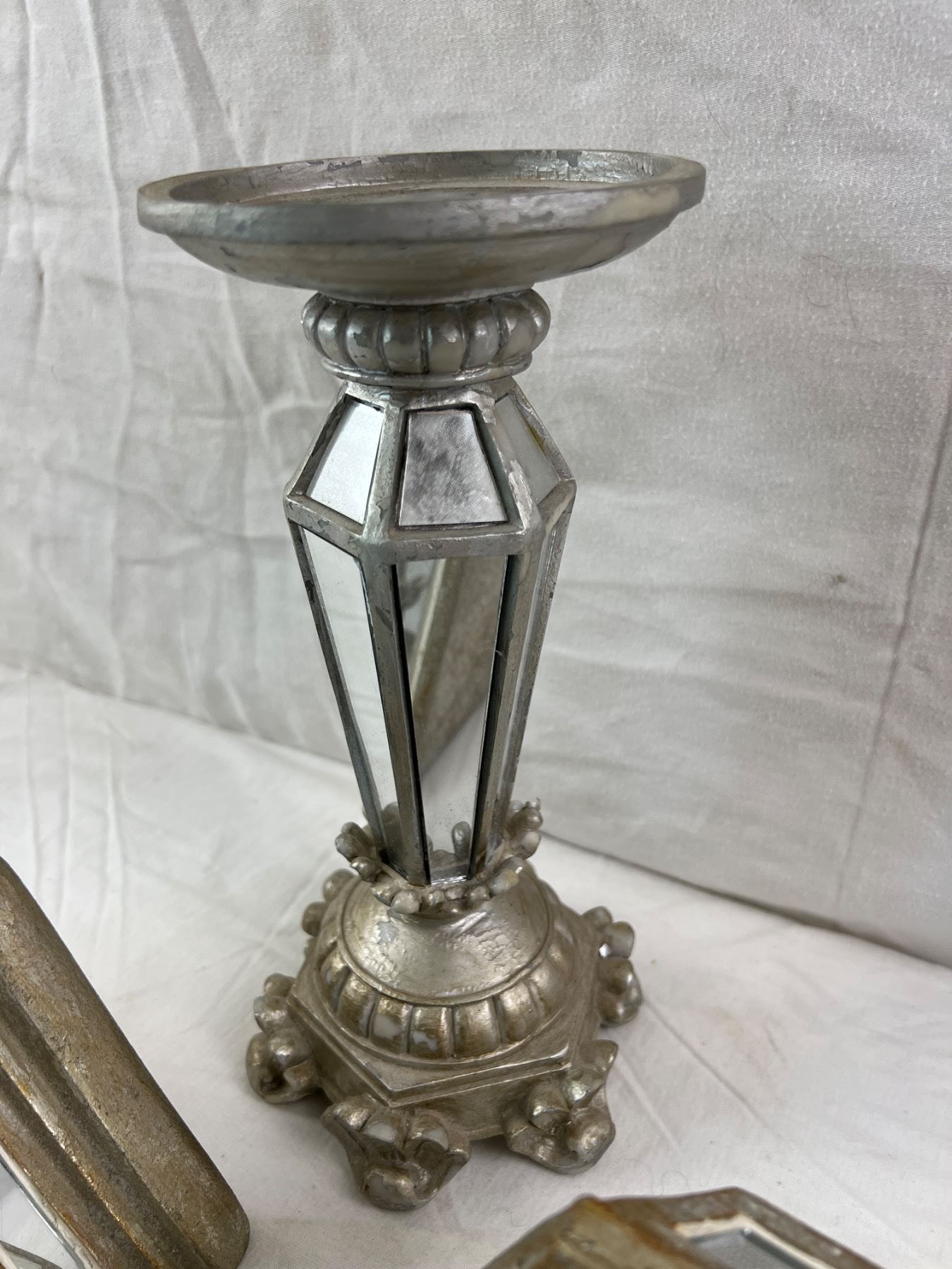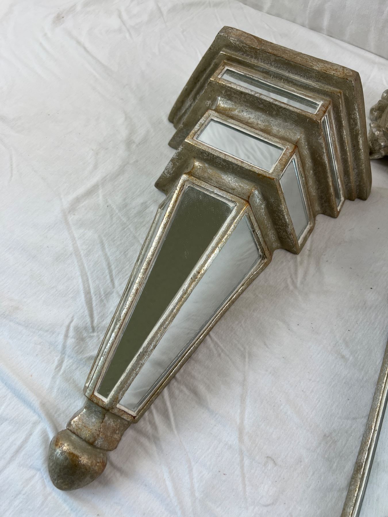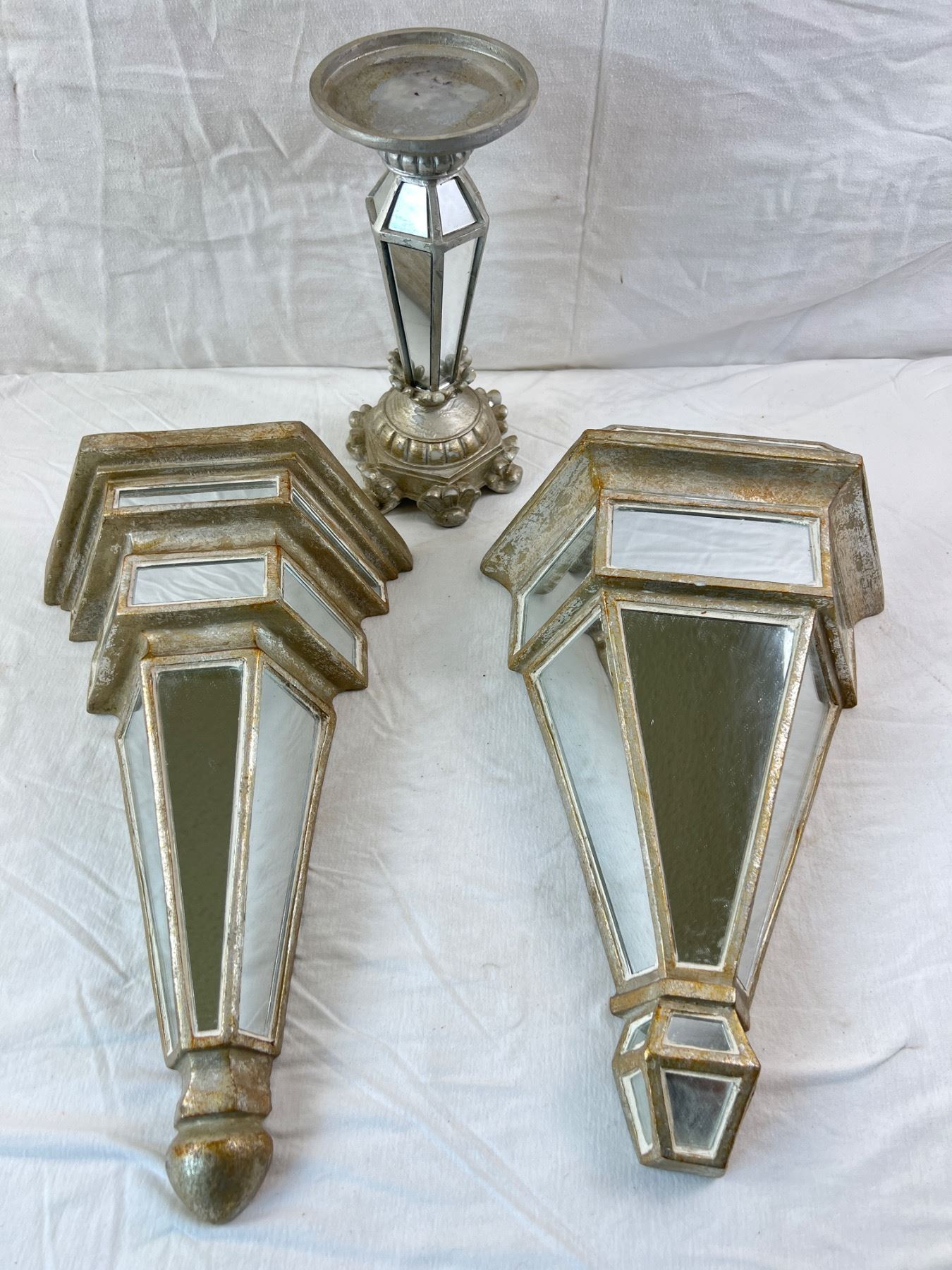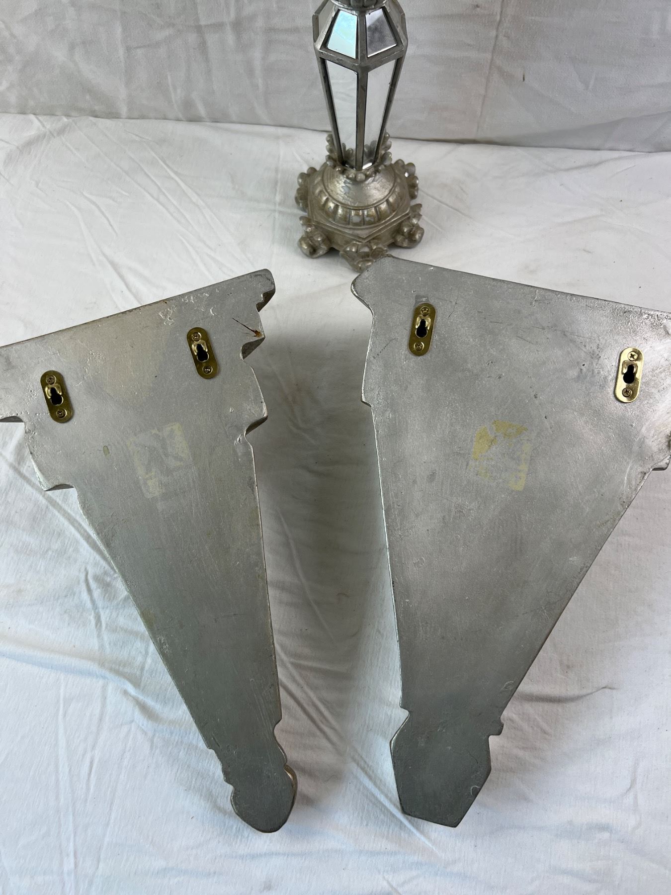 Includes two wall shelfs and a candle holder, The largest shelf is 10"L x 5.5"W x 15"H